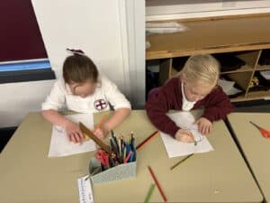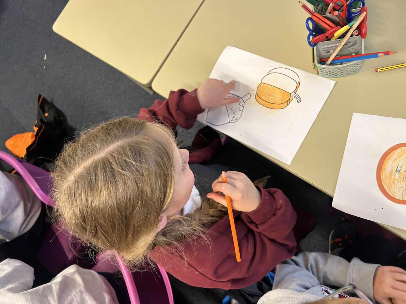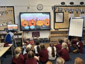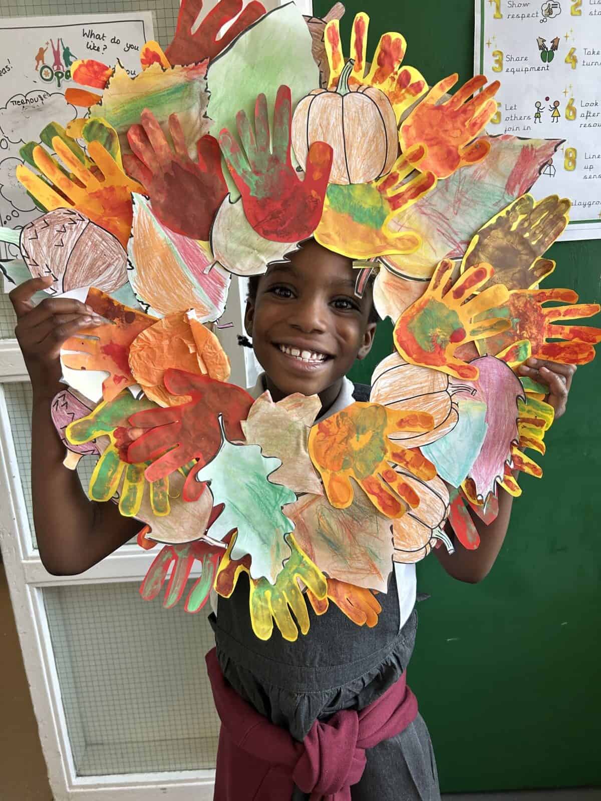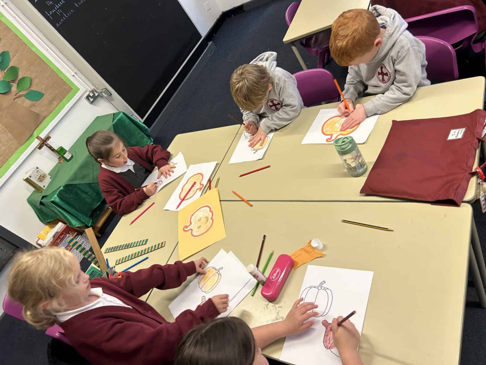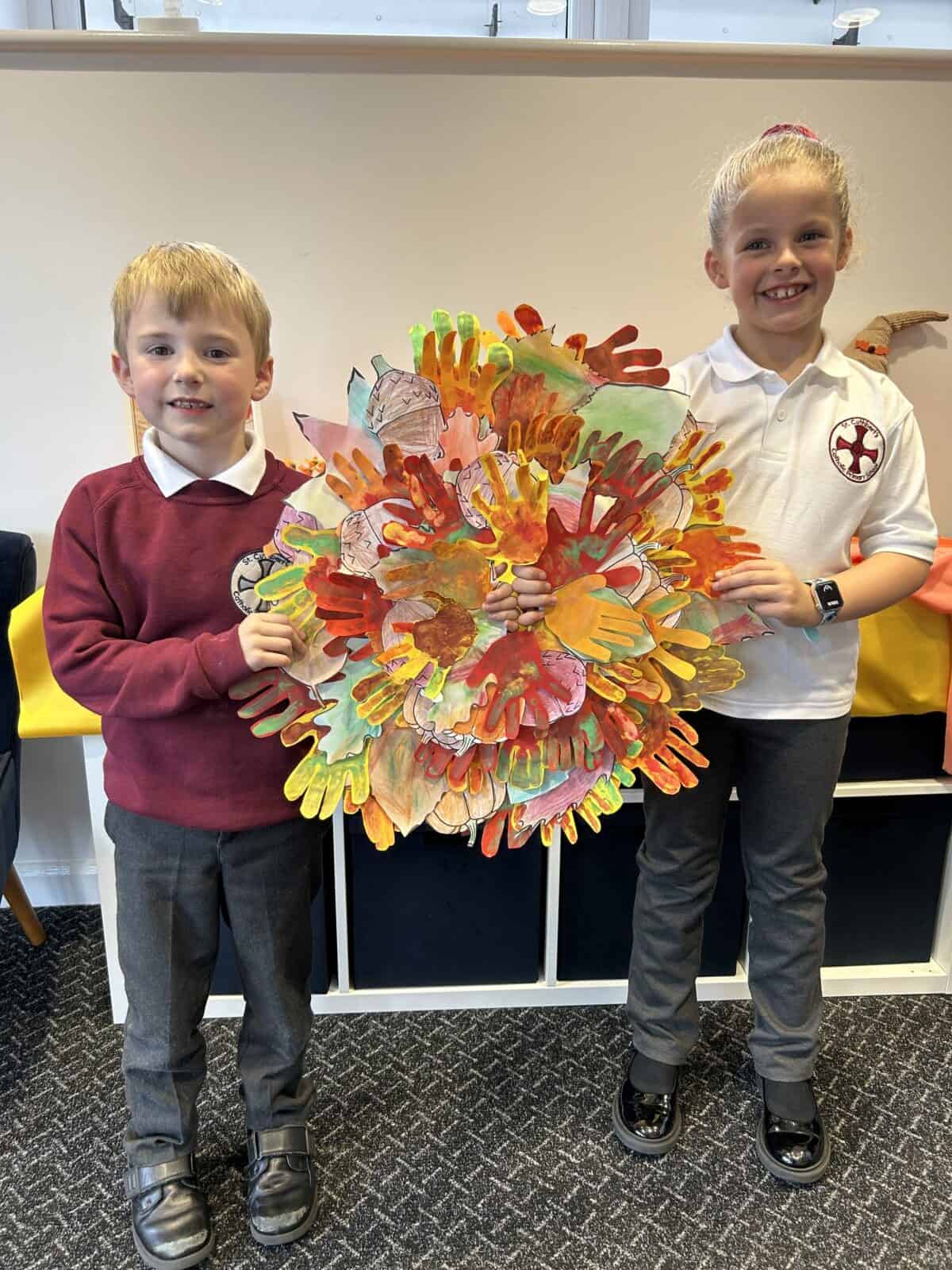 Once complete, we cut out our pumpkins and created wreaths using our artwork from the previous two weeks. The wreath is now being displayed in our main entrance.