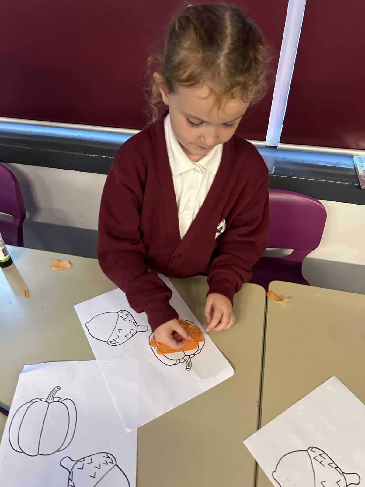 This week, year 1 and 2 listened to the story of The Happy Pumpkin then went off to create their very own pumpkin. They created one to take home and another to use on our autumnal project.