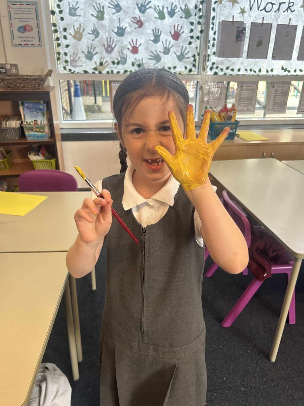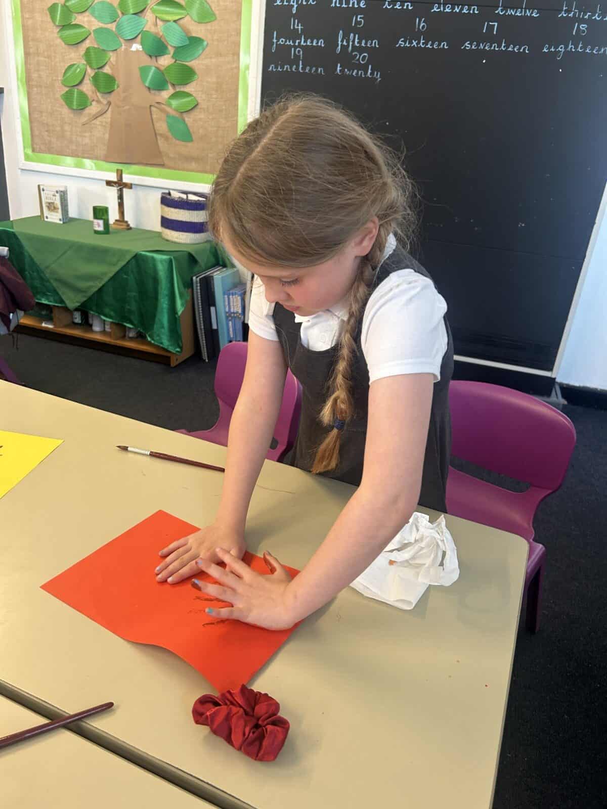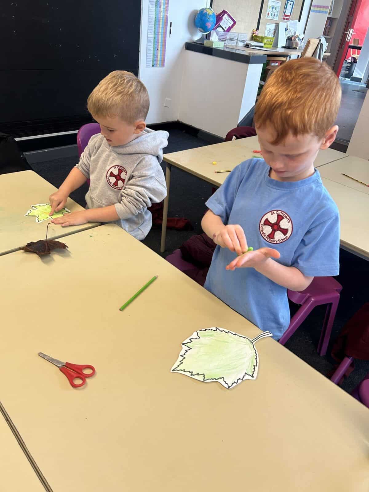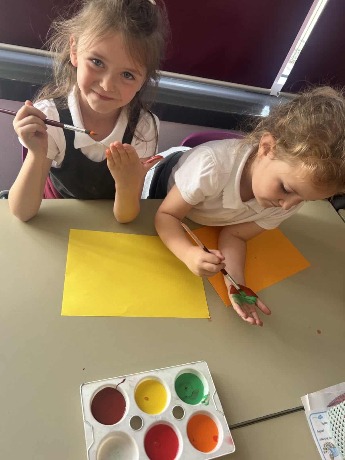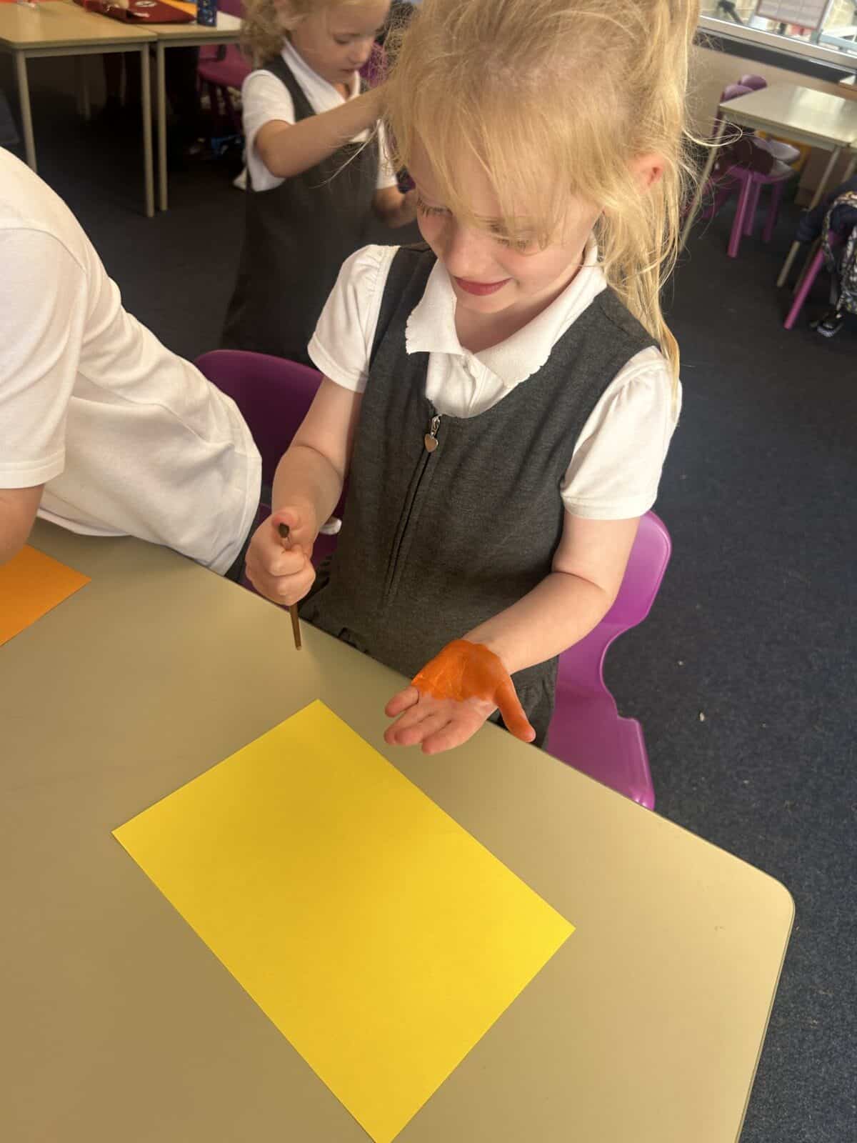 This week, children read Leaf Man and found that leaves go wherever the wind blows. Children then rolled up their sleeves and created autumn coloured hand prints which were then turned into leaves. Along with their chalk leaves, they will be joined together to create autumnal wreaths.
