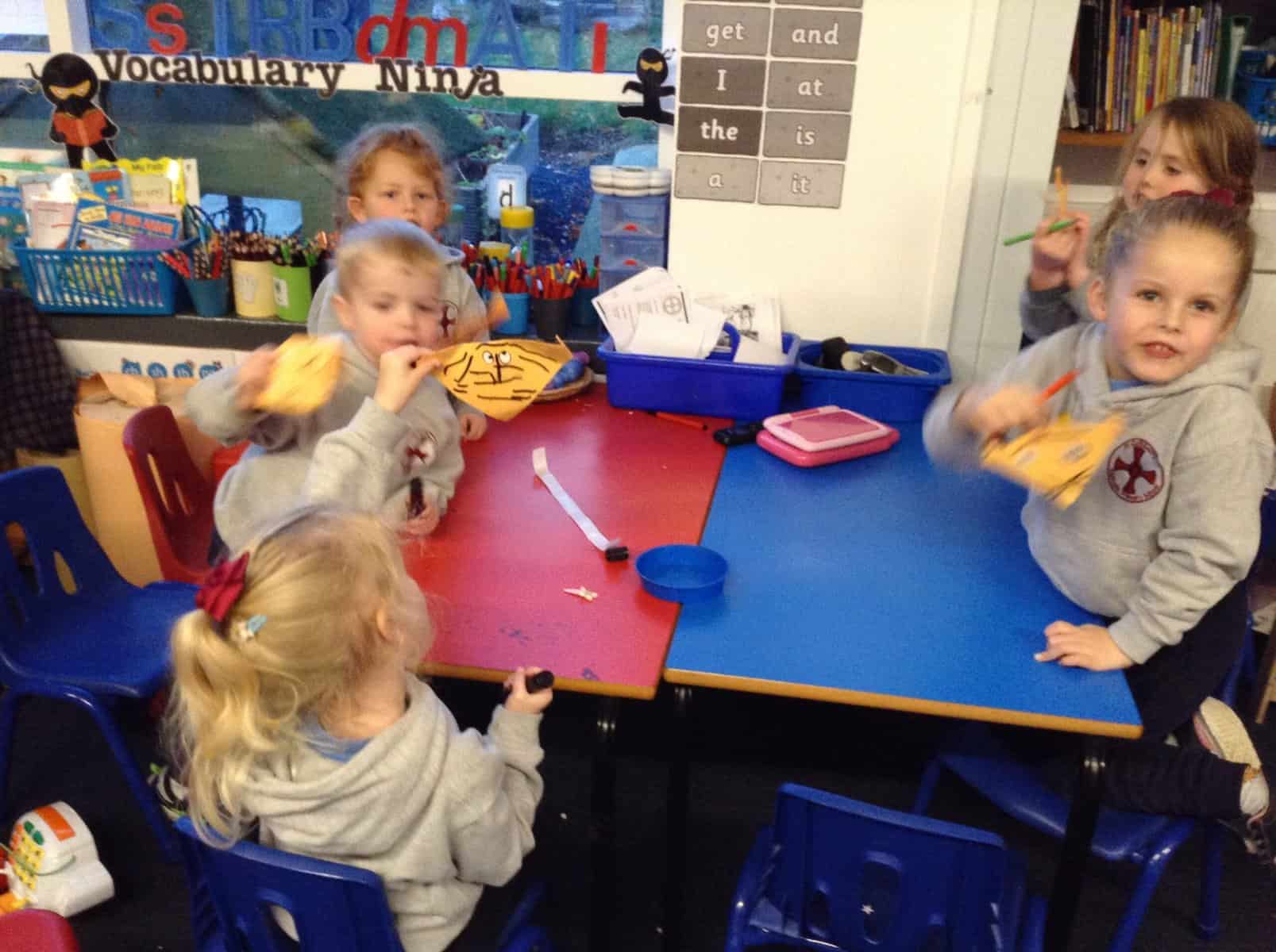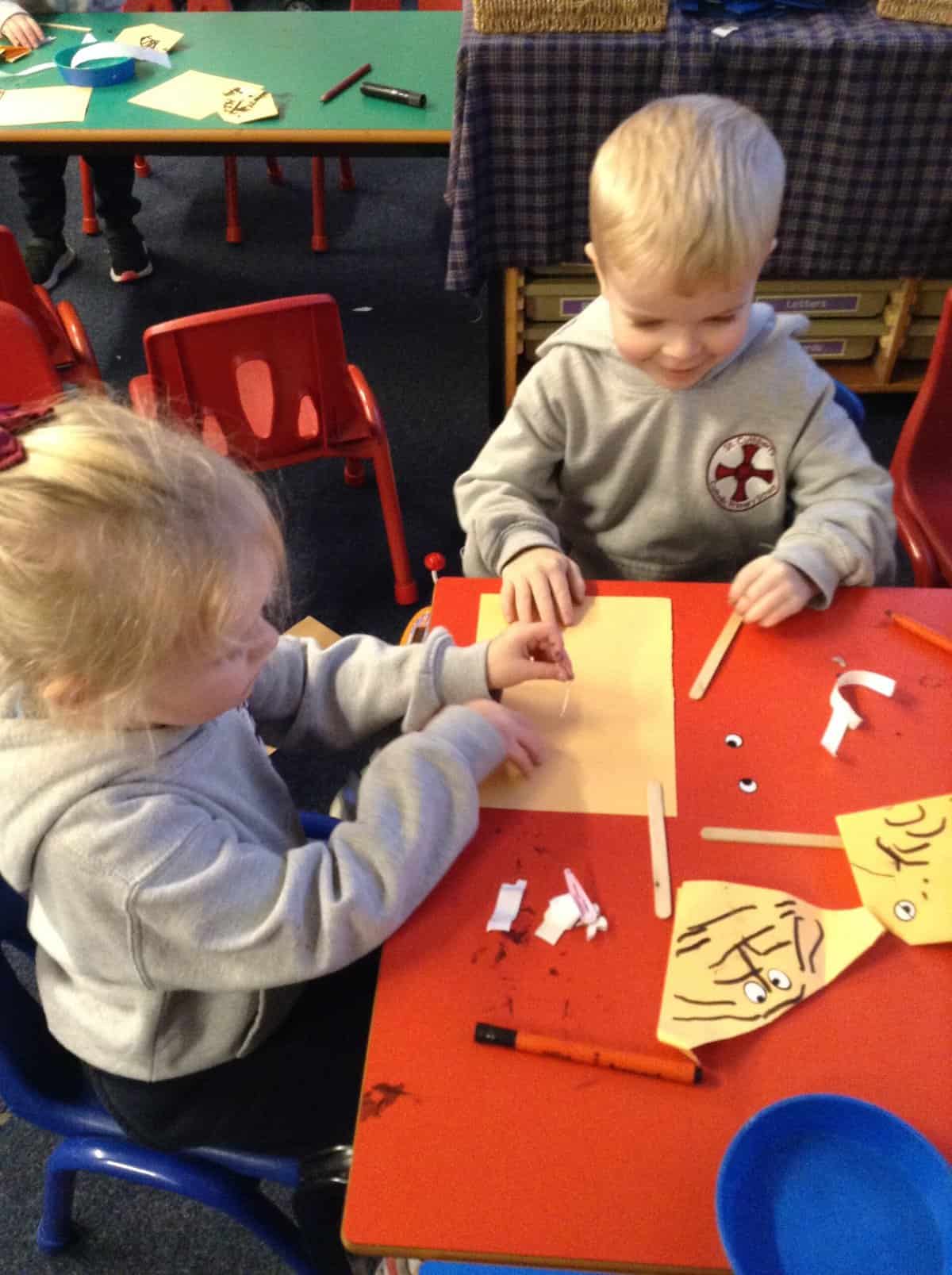 Today we read A Tiger Who Came To Tea by Judith Kerr. We had lots of fun making two different tigers.