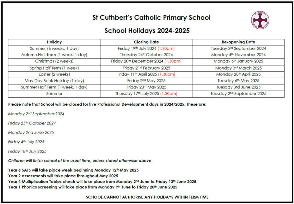 There have been changes to DfE guidance on attendance from August 2024 meaning any holidays of 5 days (10 sessions) or more will be in breach of guidance and families will receive a fixed penalty notice for each parent. Any holidays during term time will not be authorised, unless under exceptional circumstances.