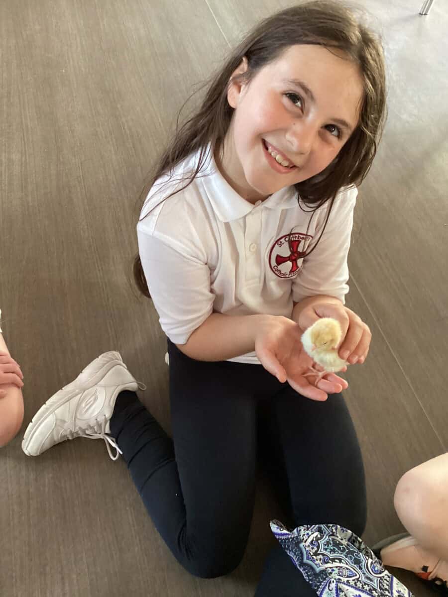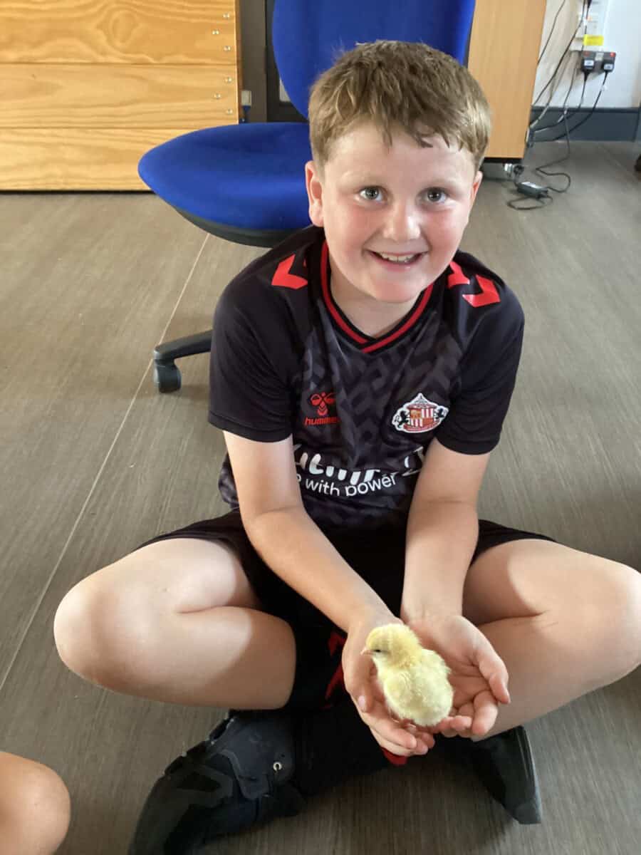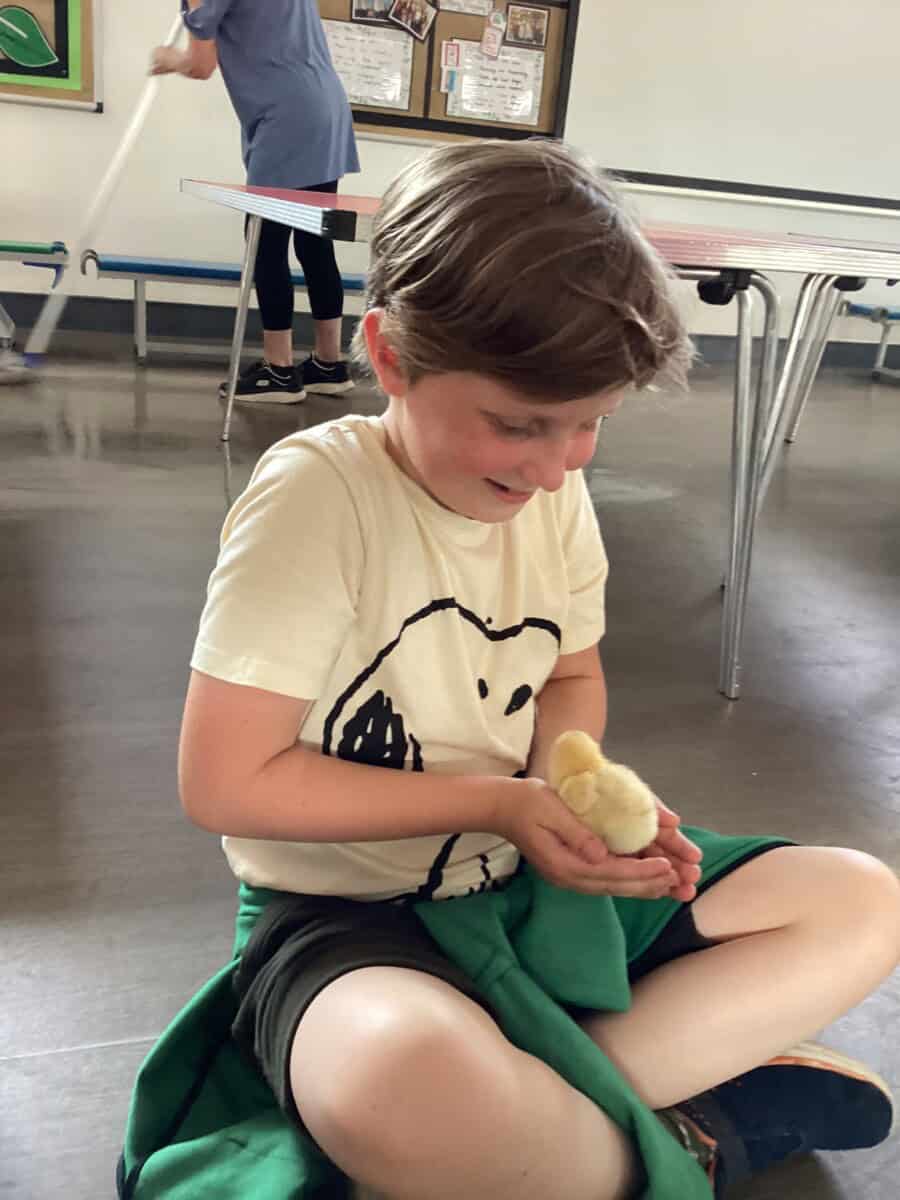 Some of Year 4 got the chance to hold the chicks today. We had to be very careful as some of them were getting very brave and trying to run away! They have really changed in such a short time and we could see their wings starting to develop.