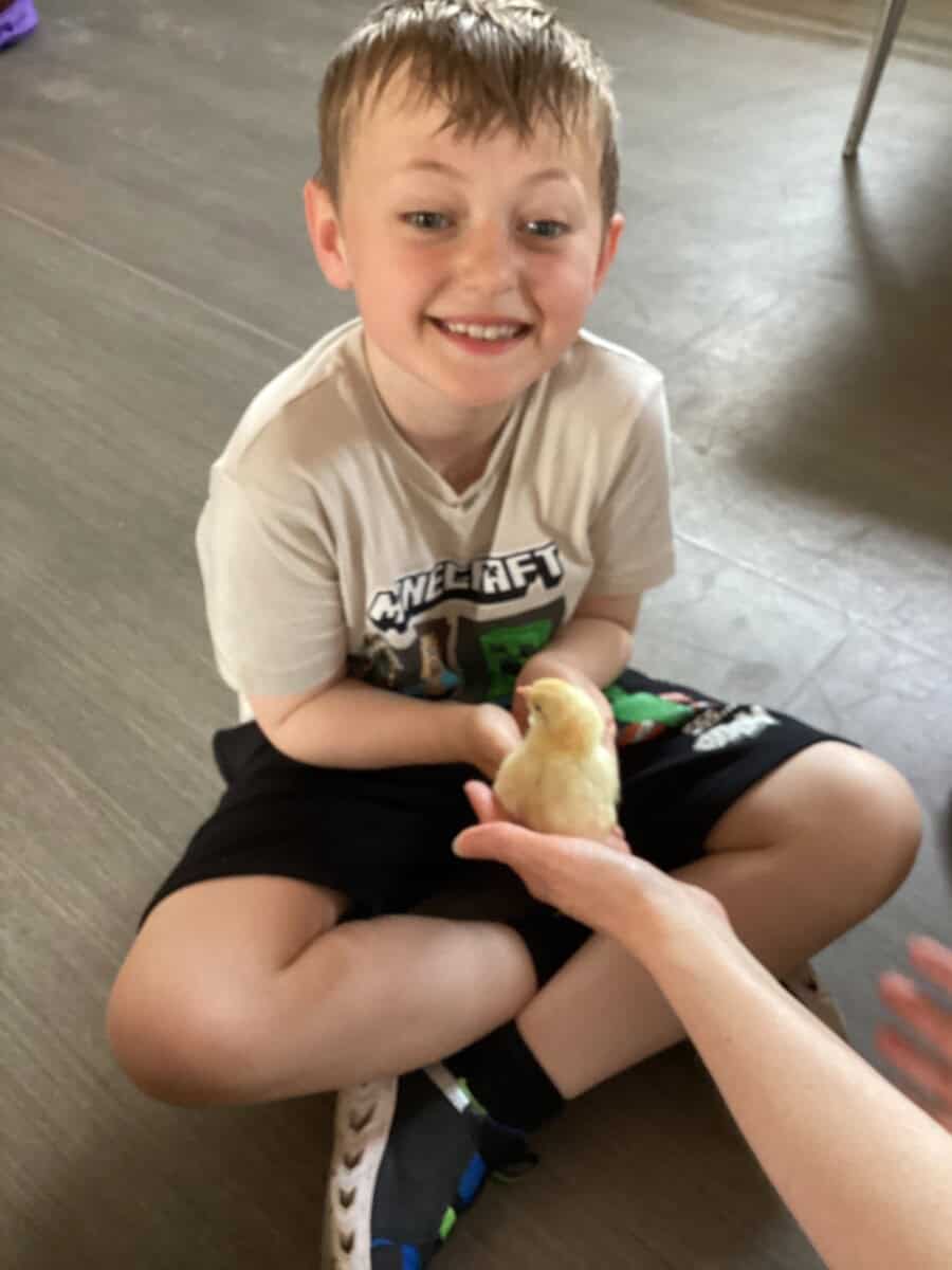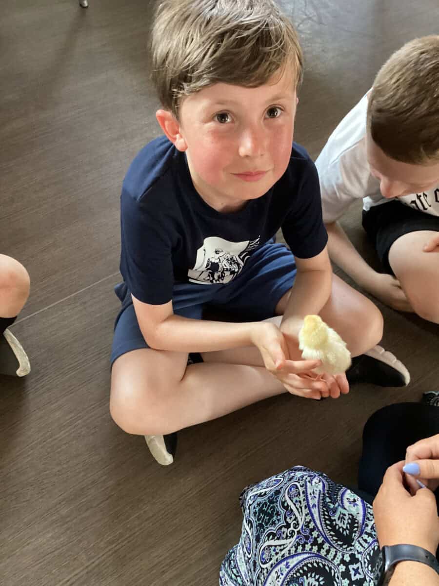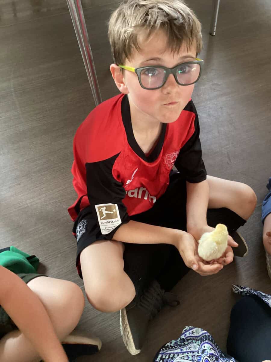Some of Year 4 got the chance to hold the chicks today. We had to be very careful as some of them were getting very brave and trying to run away! They have really changed in such a short time and we could see their wings starting to develop.