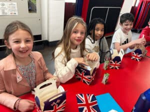 We all had a fantastic time celebrating The Coronation on Friday. We had a picnic lunch and tried lots of different crafts and art projects. Unfortunately, the weather was not brilliant but we still managed to get into the street party mood by playing some outdoor games in the afternoon.