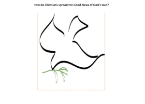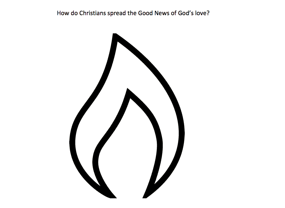 Can you learn this prayer to the Holy Spirit and design a poster showing some of the ways in which Christians spread the Good News to everyone through how they live (for example by showing kindness, sharing, helping others). I have attached a dove and a flame template template (Both symbols of the Holy Spirit.) for you to choose from to write your ideas on.