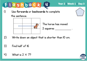 For maths today, we will be recapping 2d shapes again. Look at the shapes you recapped yesterday. Can you go on a shape hunt around the house and garden. How many different shapes can you find? I have also attached today’s flashback 4.
