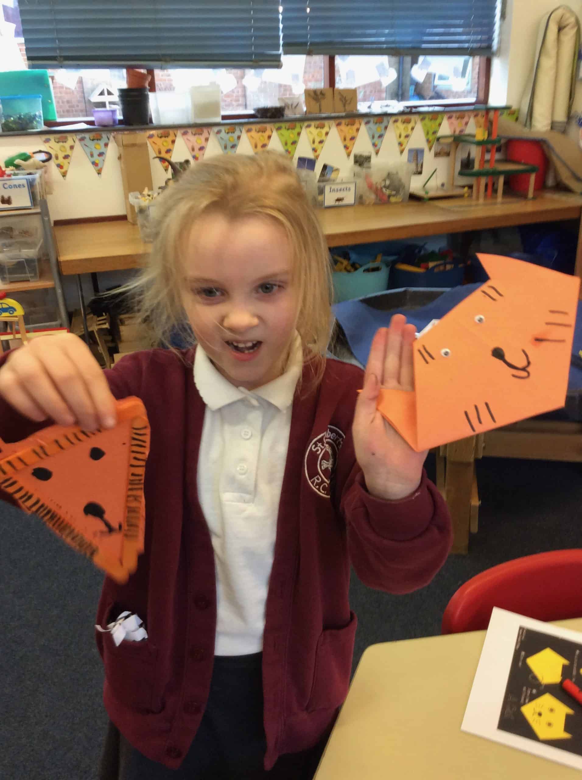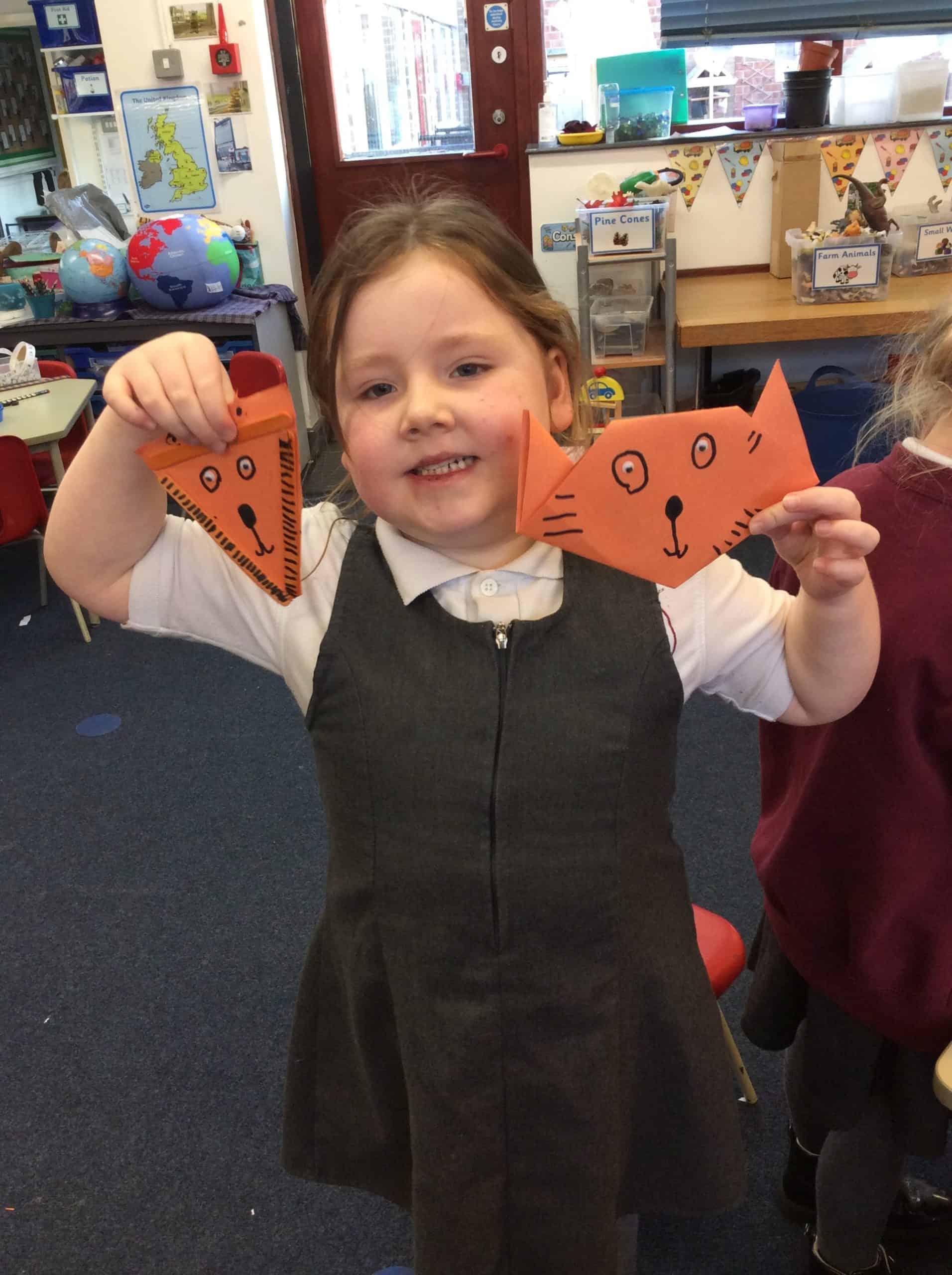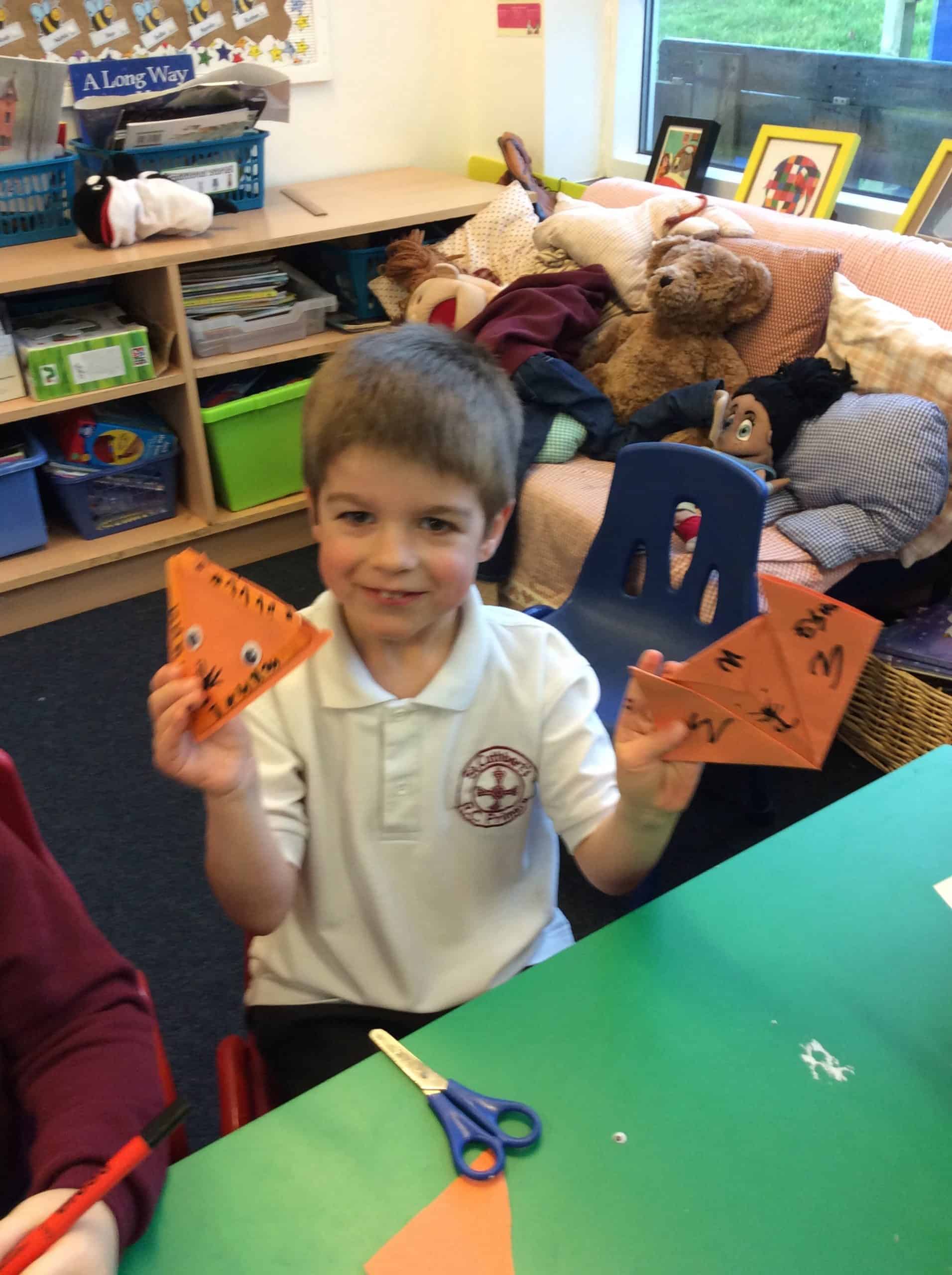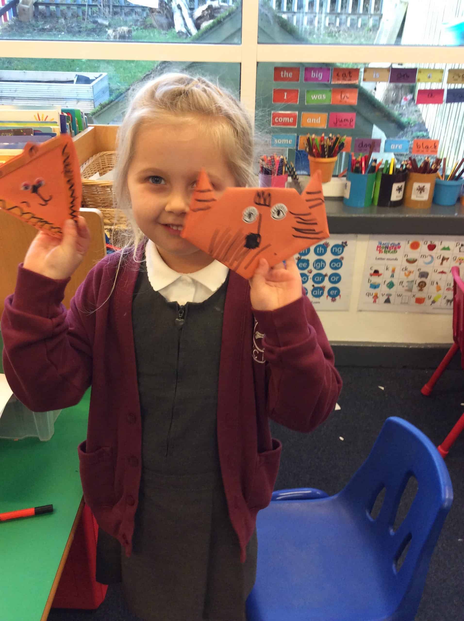 This week is Chinese New Year. Since it is the year of the tiger we looked at the story of The Tiger Who came for tea by Judith Kerr. We made 2 tigers, one using art sticks and for the other we followed instruction to make an origami tiger. We hope you like them.