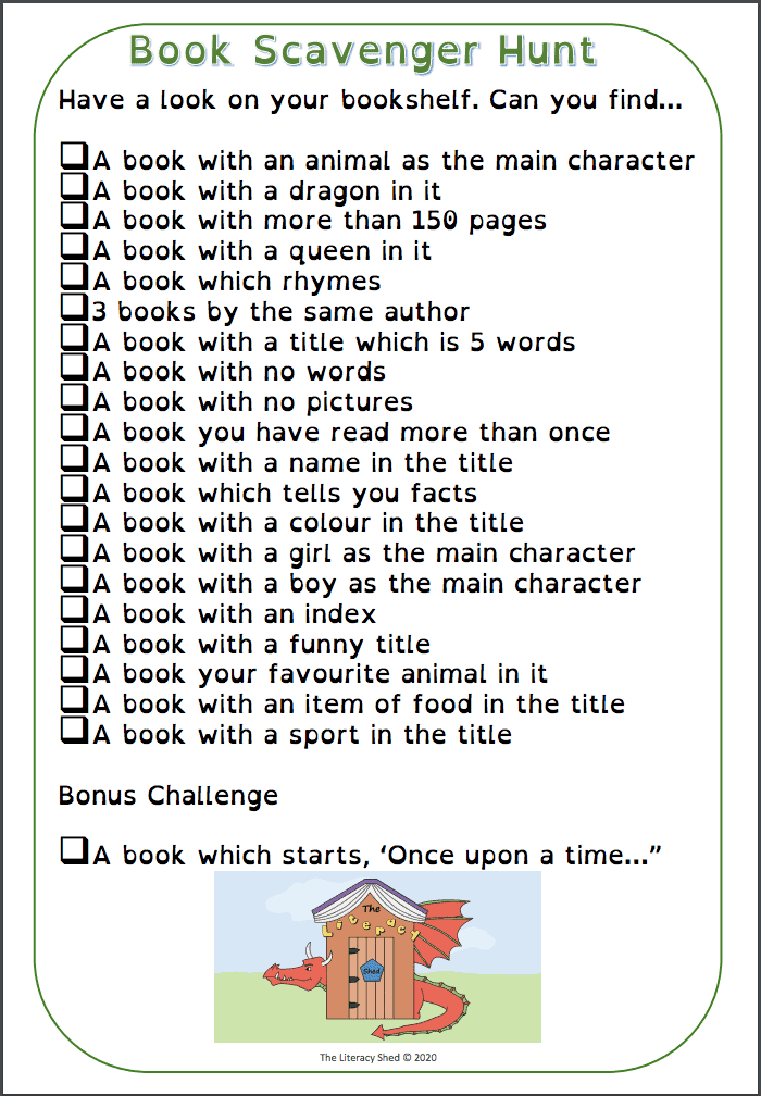 Today I am setting you a book scavenger hunt. Maybe you will find some books that you have forgotten about and will be inspired to read them.