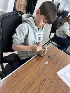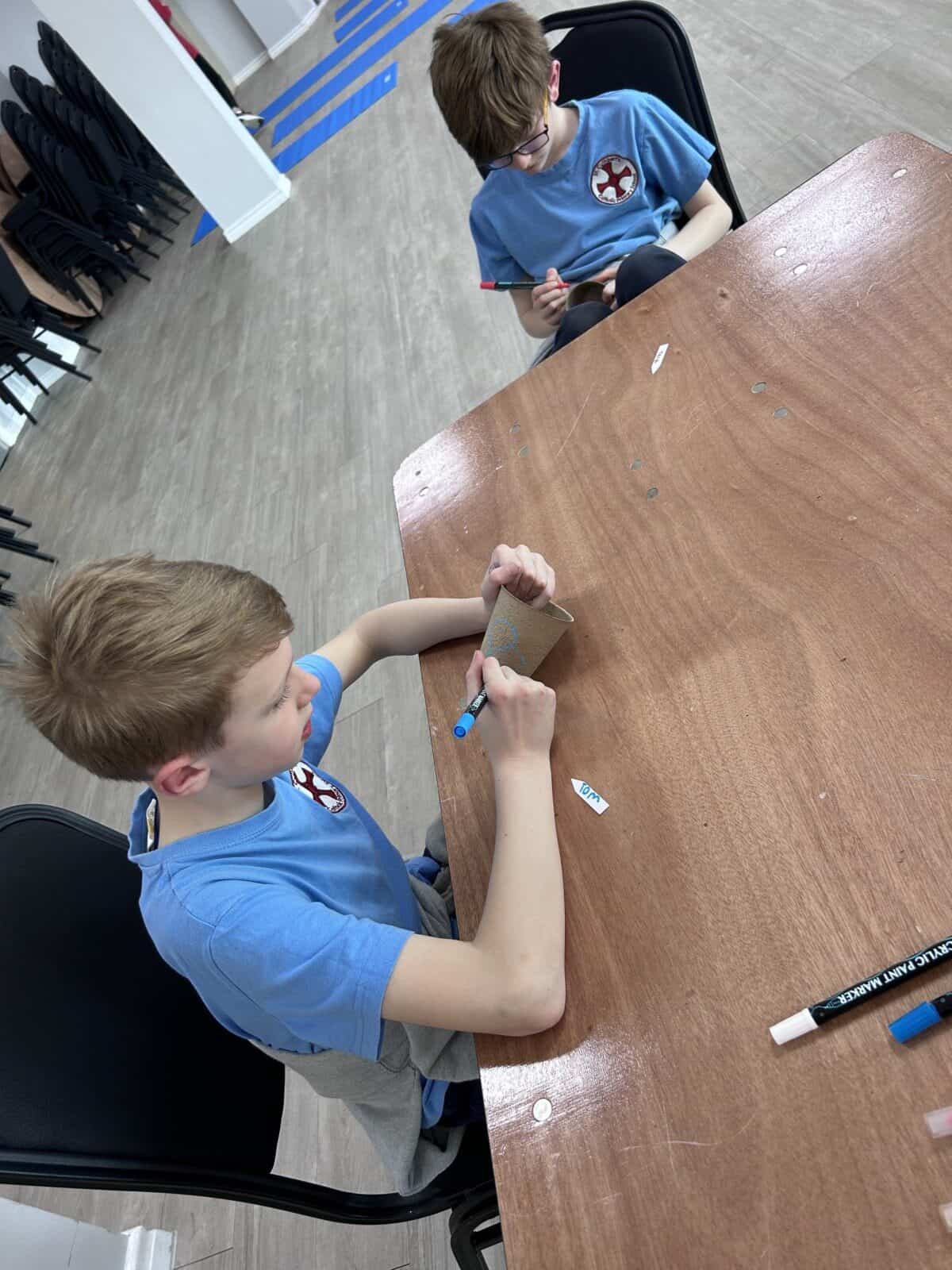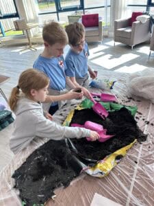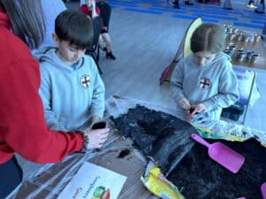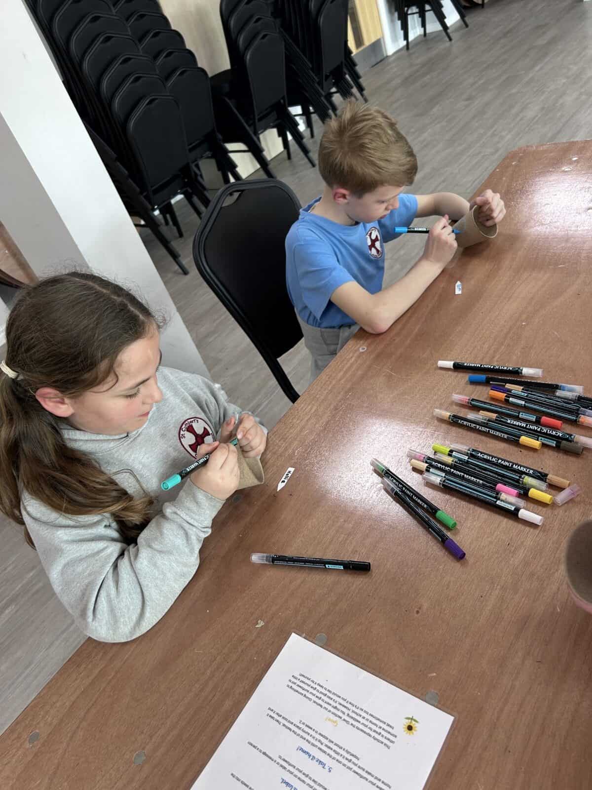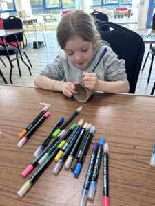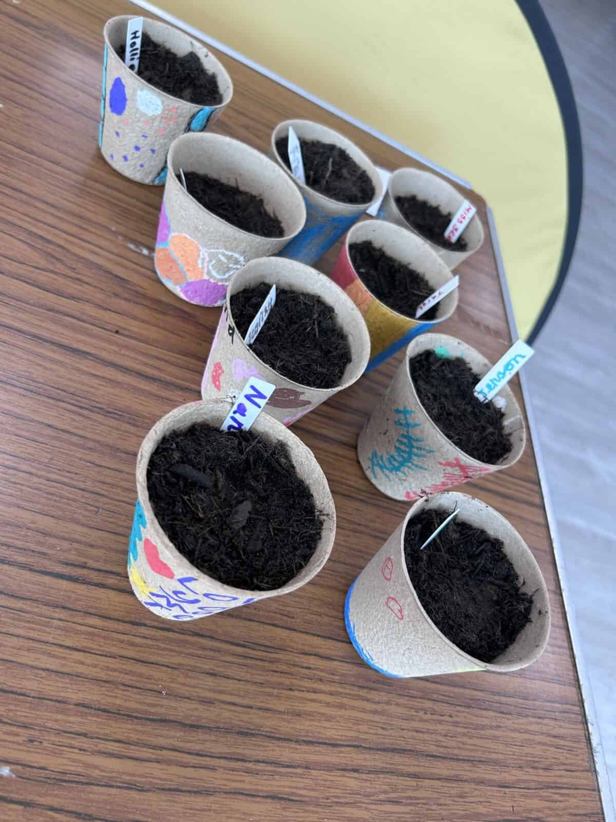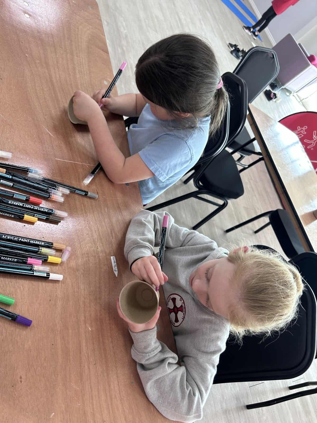 The children moved around to their third station where they needed to decision their own plant pot before planting a sunflower to take home.