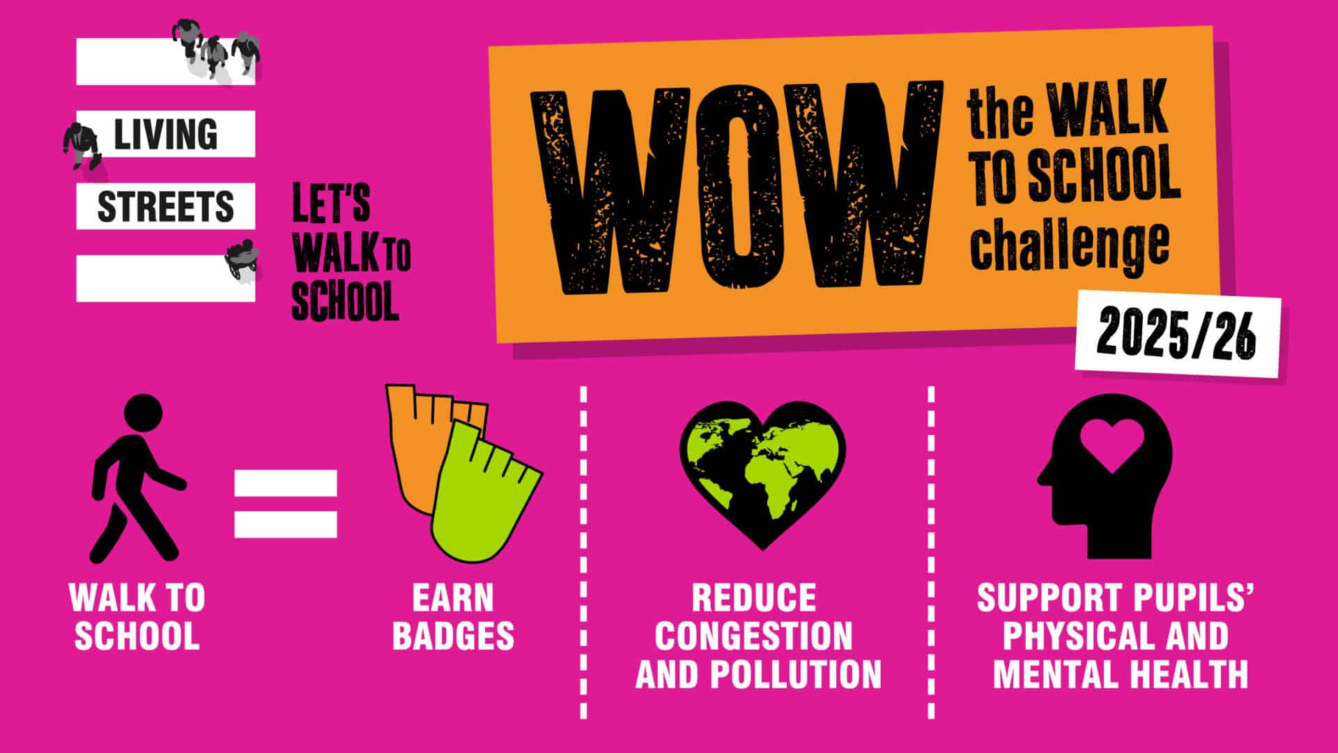 We’re excited to share that our school is joining WOW – the walk to school challenge, an inspiring national initiative delivered by Living Streets, the UK charity for everyday walking. This project aims to help more children and families enjoy the benefits of walking or wheeling to school.