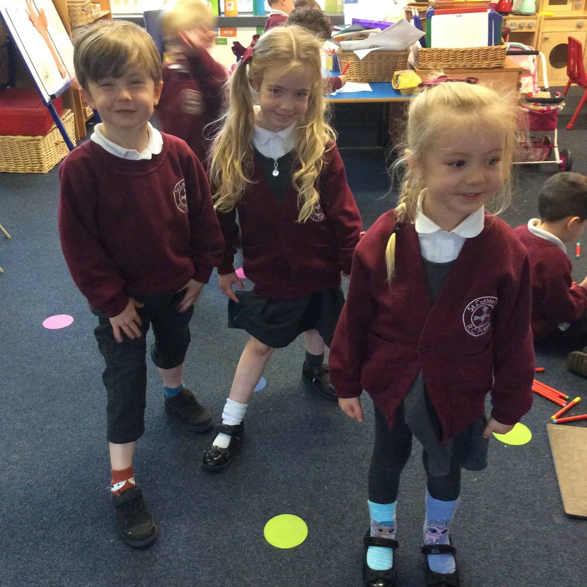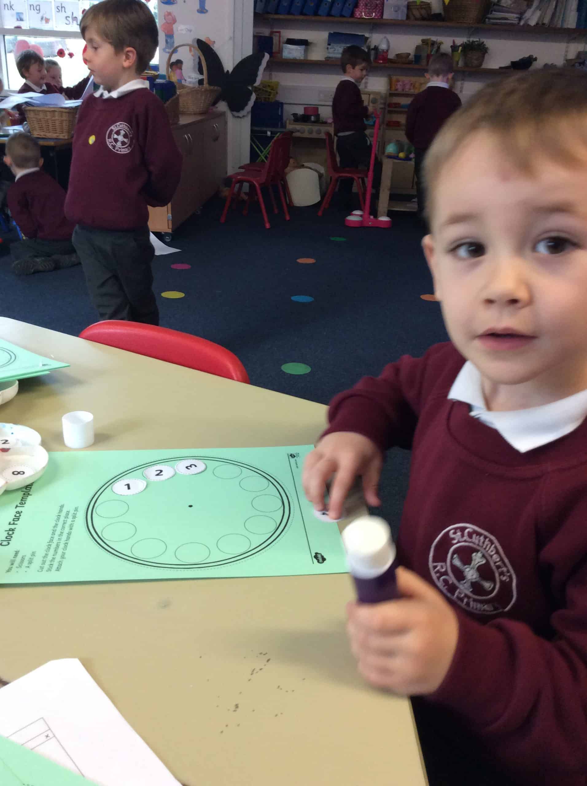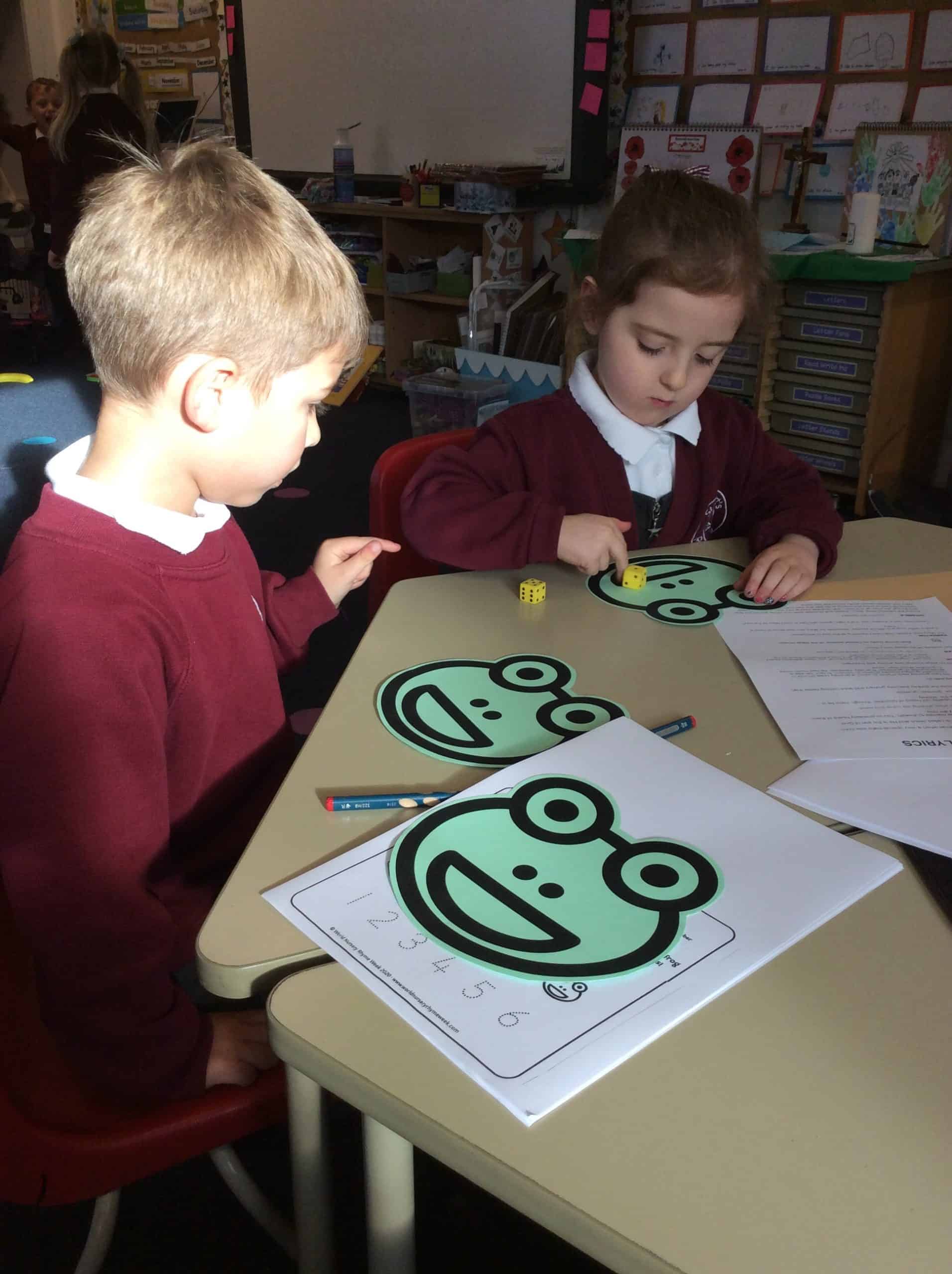 We have been very busy this week in Reception Class. We have been taking part in Anti -Bullying week where we have come to school in odd socks to show we are all different and that is fine. We also made a huge heart full of our hand prints to show together we can stop bullying. We have also taken part in World Nursery Rhyme Week. Each day we have listened to and learnt a new nursery rhyme. Our work that day has been based on the nursery rhyme of that day. We have made clocks by sequencing numbers correctly on the clock face on Hickory Dickory Dock Day. On the day we sang 5 Little Speckled Frogs we played frog maths games.