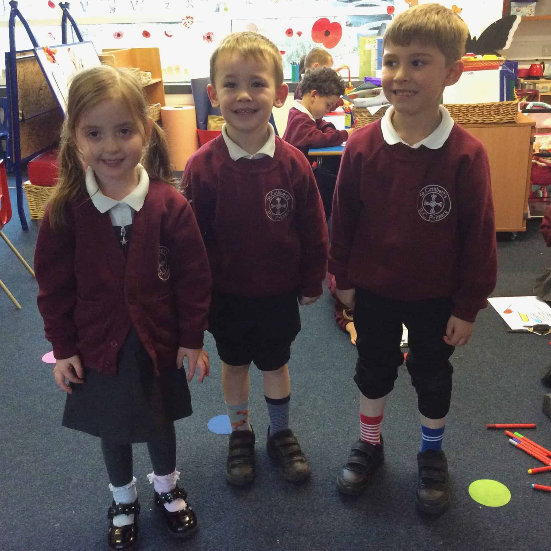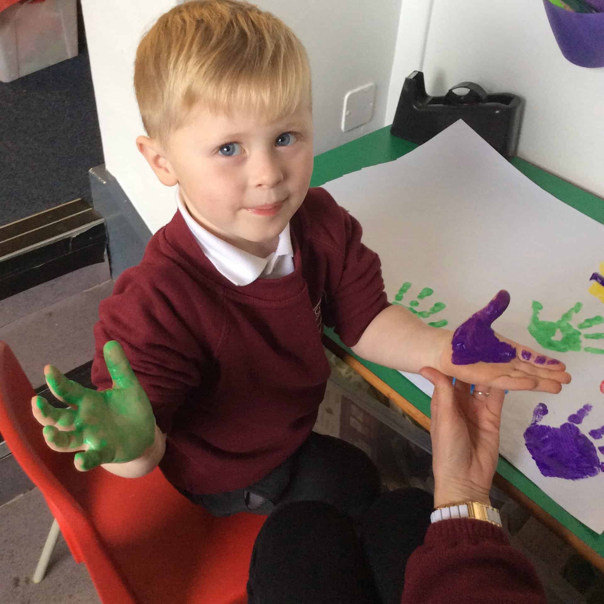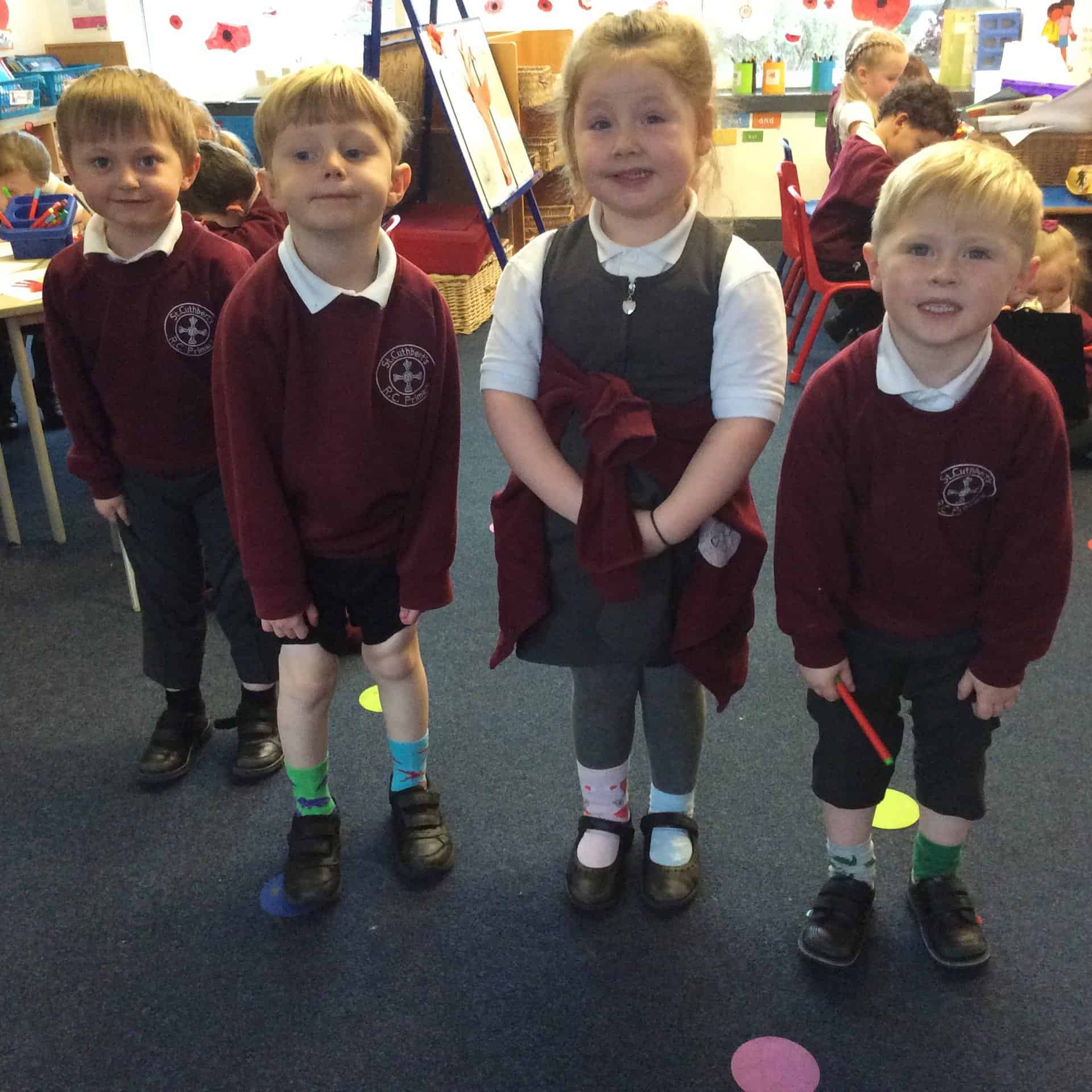 We have been very busy this week in Reception Class. We have been taking part in Anti -Bullying week where we have come to school in odd socks to show we are all different and that is fine. We also made a huge heart full of our hand prints to show together we can stop bullying. We have also taken part in World Nursery Rhyme Week. Each day we have listened to and learnt a new nursery rhyme. Our work that day has been based on the nursery rhyme of that day. We have made clocks by sequencing numbers correctly on the clock face on Hickory Dickory Dock Day. On the day we sang 5 Little Speckled Frogs we played frog maths games.