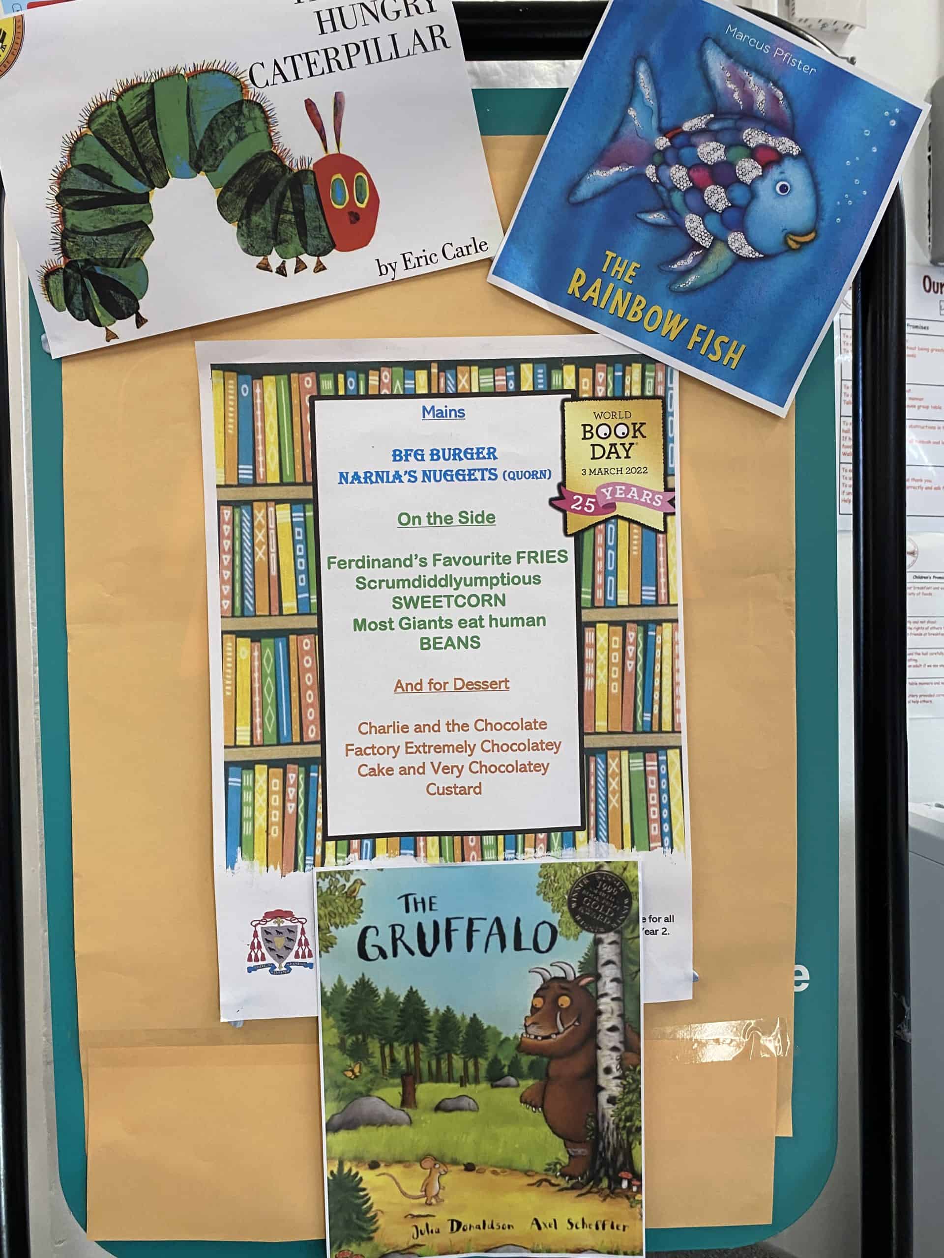 Preparations are underway for the special World Book Day school dinner available on Thursday. Our lovely cook, Jan, has decorated the serving area to help us celebrate our love of reading. The children are looking forward to eating their special treats and admiring the excellent decorations.