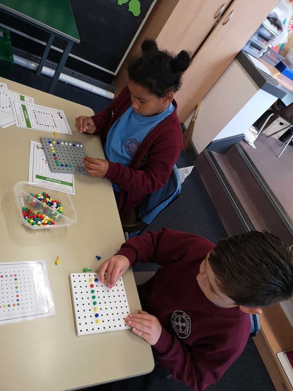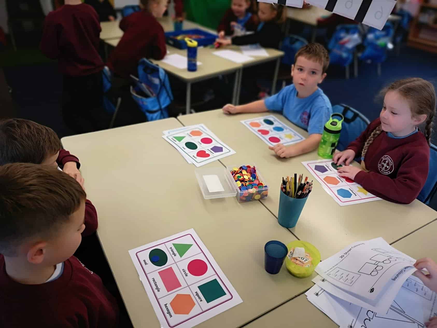 We had a fun maths lesson today all about 2d shapes. We played bingo, dominoes, made shapes with the peg boards, had a feely bag and lots of other activities too. We had lots of fun whilst consolidating our 2d shapes.