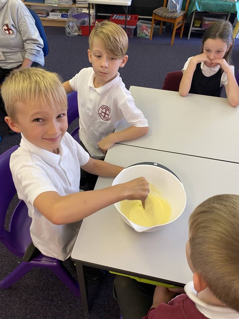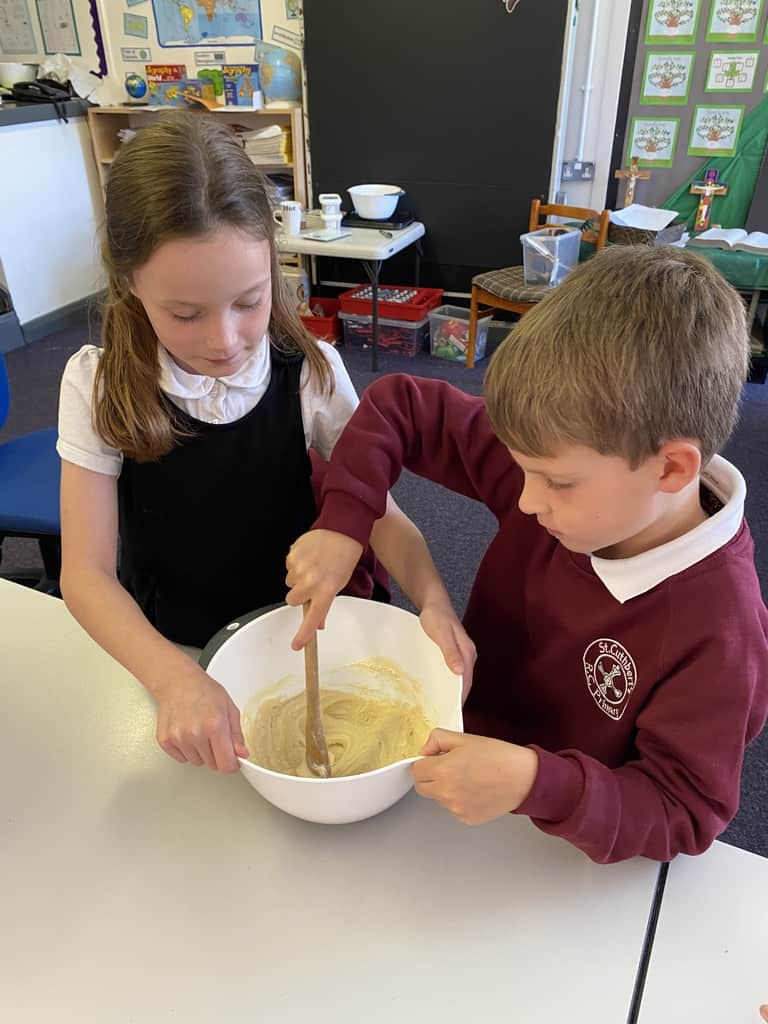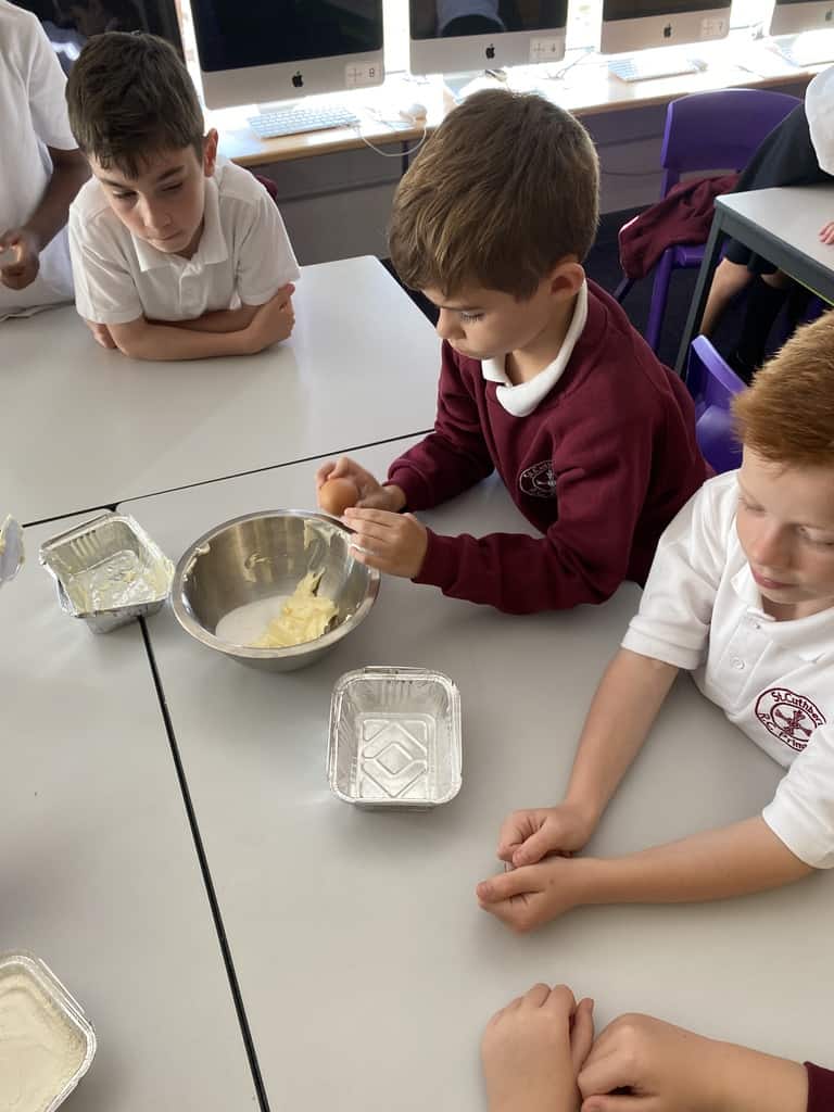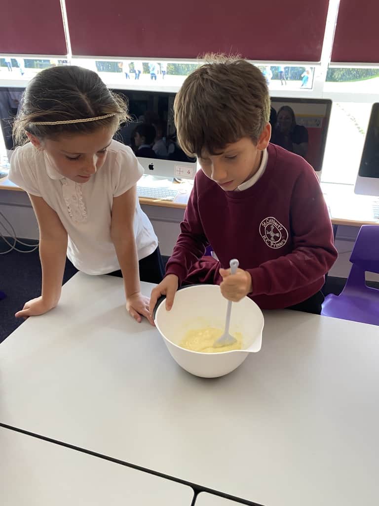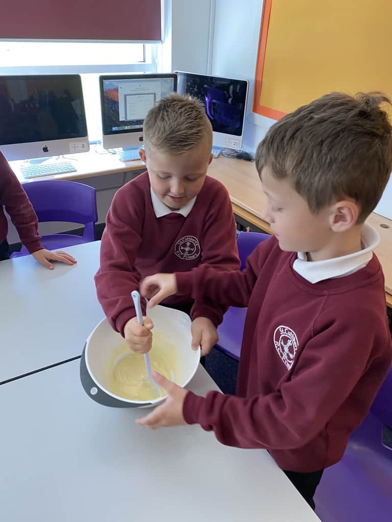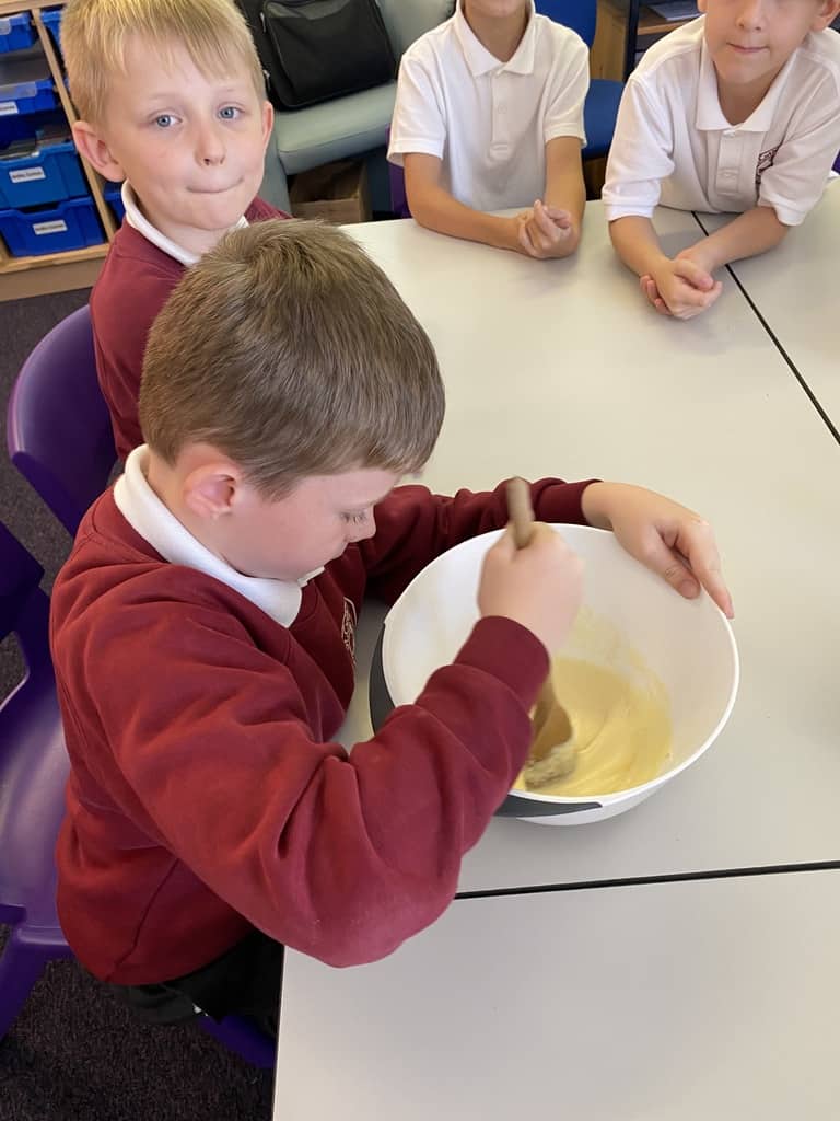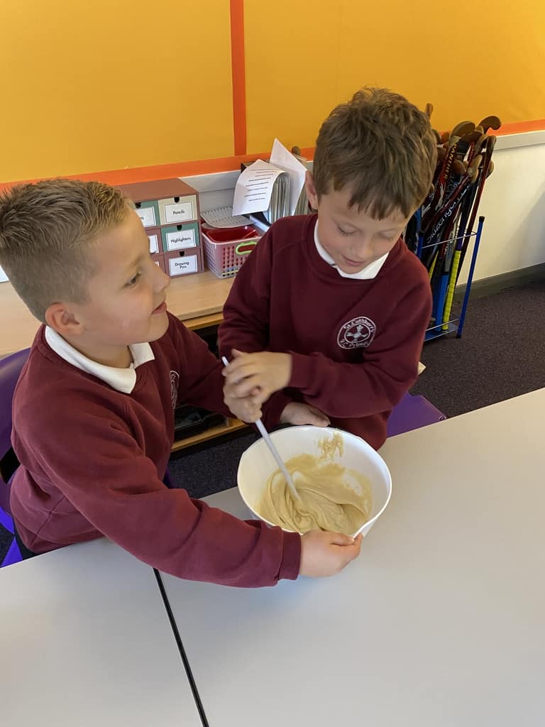 Our Y4 children have been baking biscuits again this afternoon. They were able to weigh out ingredients, prepare and roll out the dough and then cut and shape their biscuits. They added some delicious chocolate chips to the mixture too. The biscuits smelled beautiful while they were baking and will be cooled and wrapped for the children to collect in the morning.