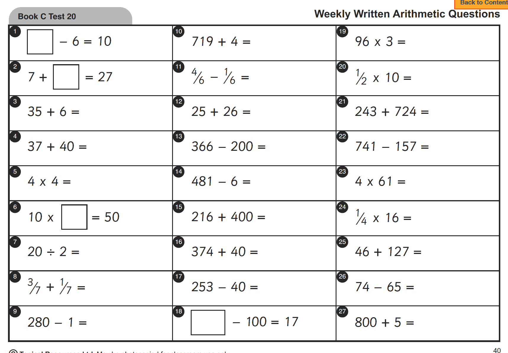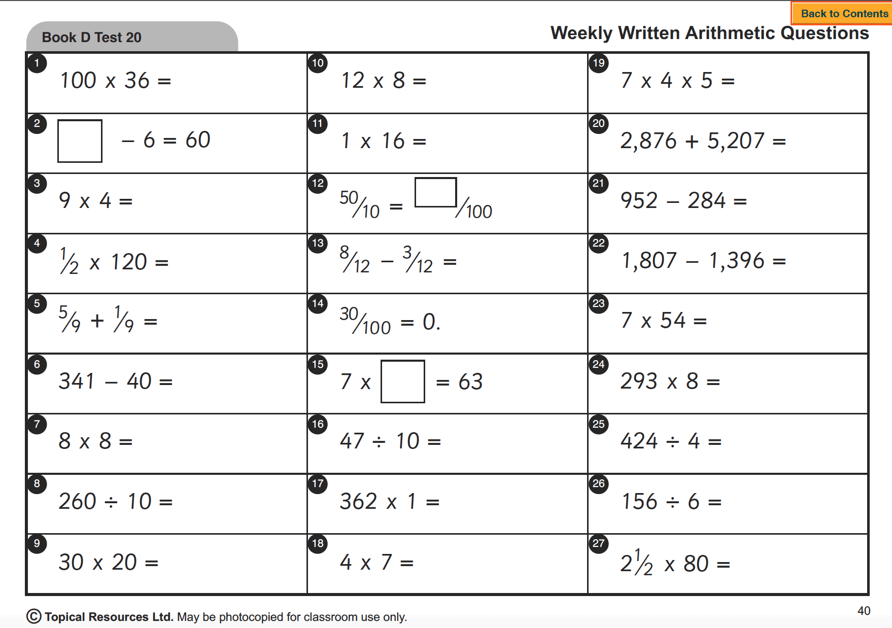 I’m posting four Arithmetic Tests today here and in Google Classroom. There’re two sheets for Book B, one for Book C and Book D which is what most of you do. Do one or do them all – it’ll be good arithmetic revision!