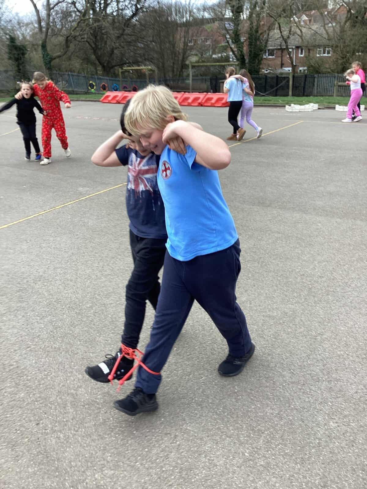 Y5 had lots of fun today. We enjoyed completing some puzzles, dressing in our funny and bright clothing and completing some funny team games as part of PE.