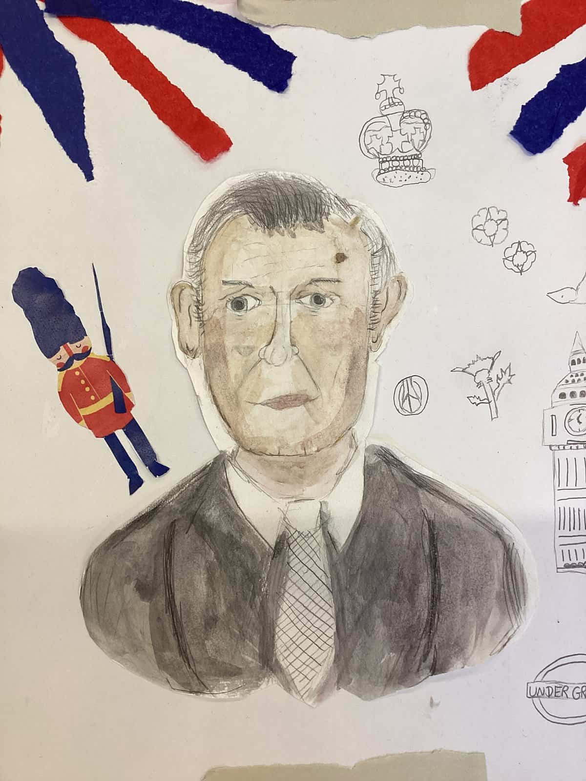 Using all of our knowledge, we found images of King Charles we liked and set about making our own mixed media portraits to celebrate the coronation. They are still a work in progress but when they are finished, there will be hidden and hard to find meanings and symbols throughout.
