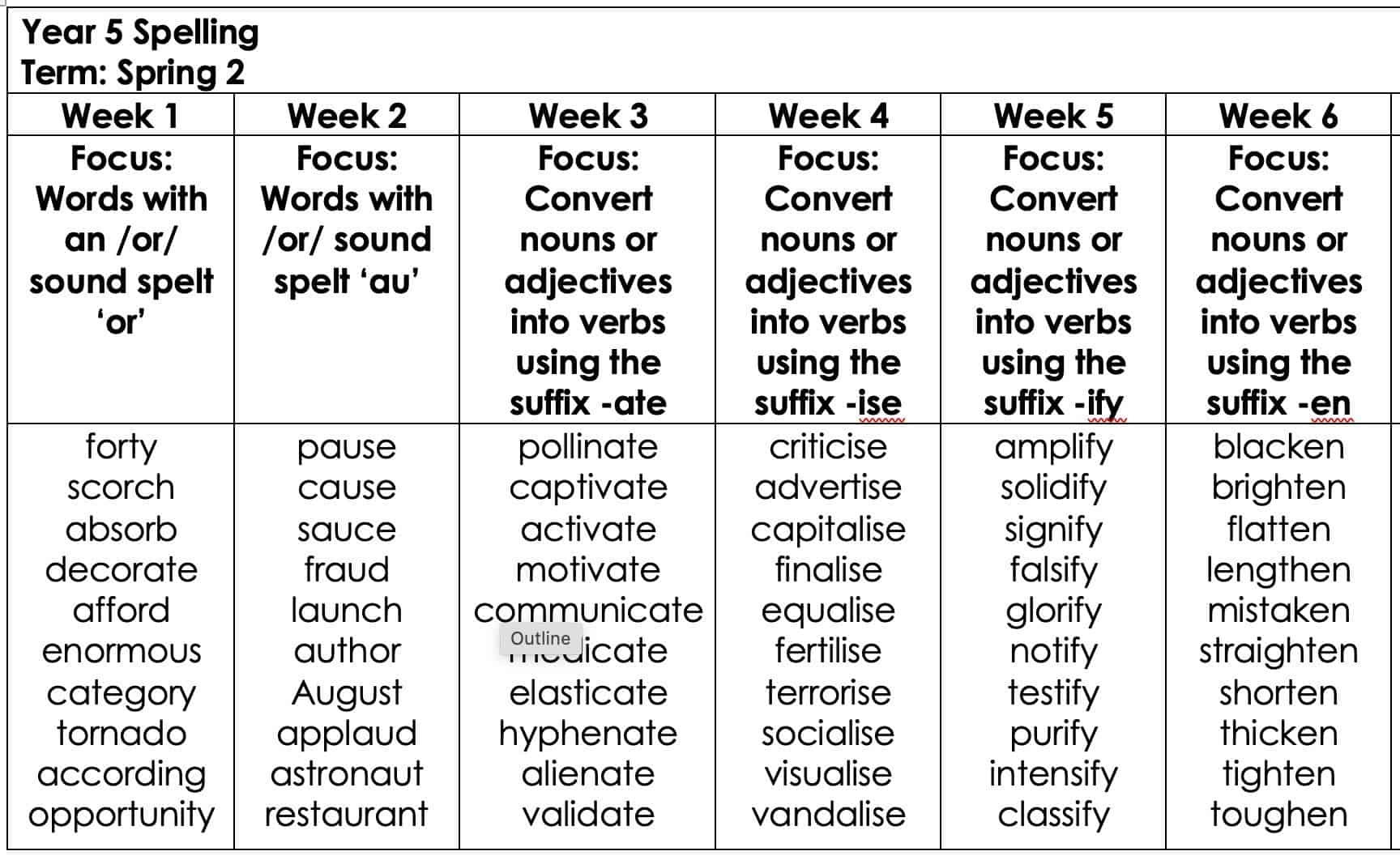 Please see below for the complete spelling lists for Y5 this half term. Children will work on a different spelling pattern each week and complete a spelling test on a Friday. Children have all been given a paper copy of the spellings and a copy has been text out to parents.