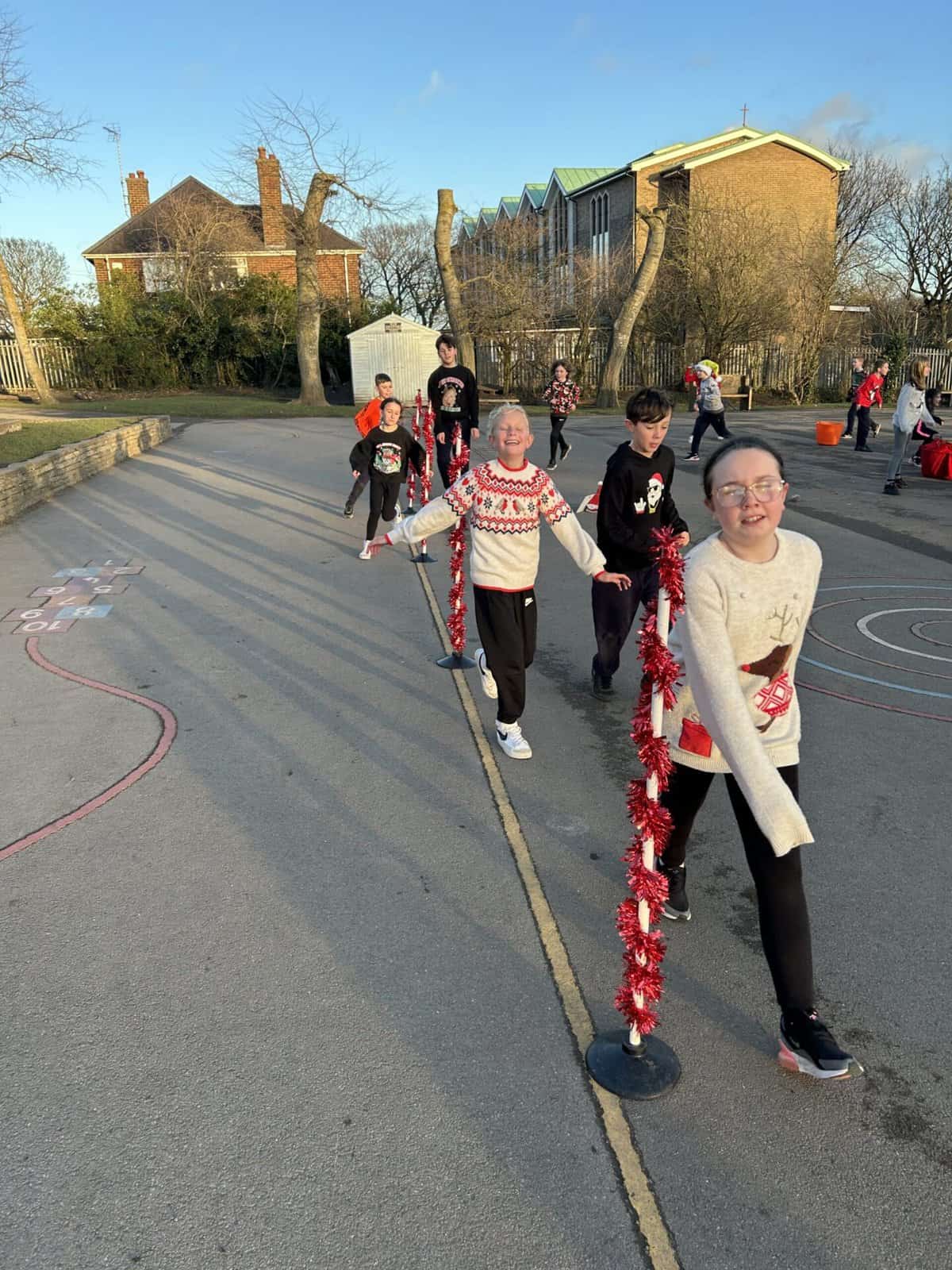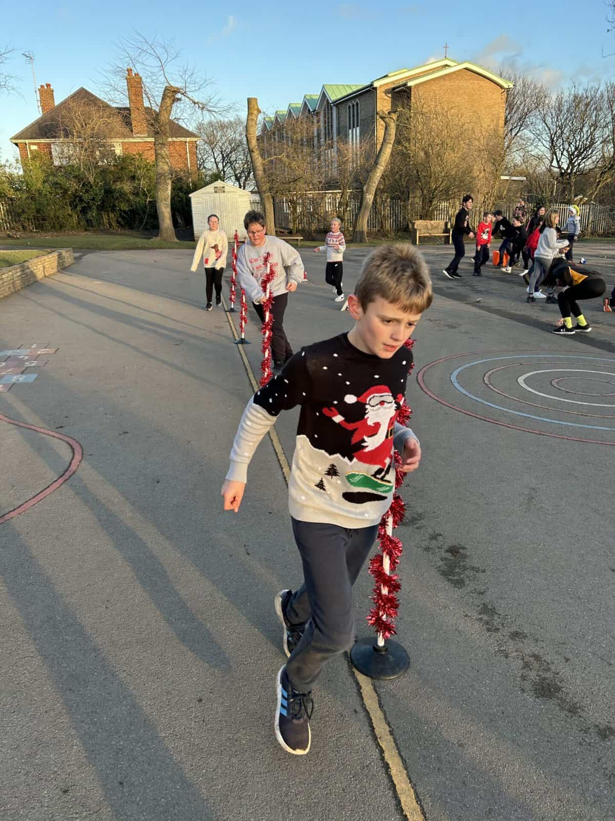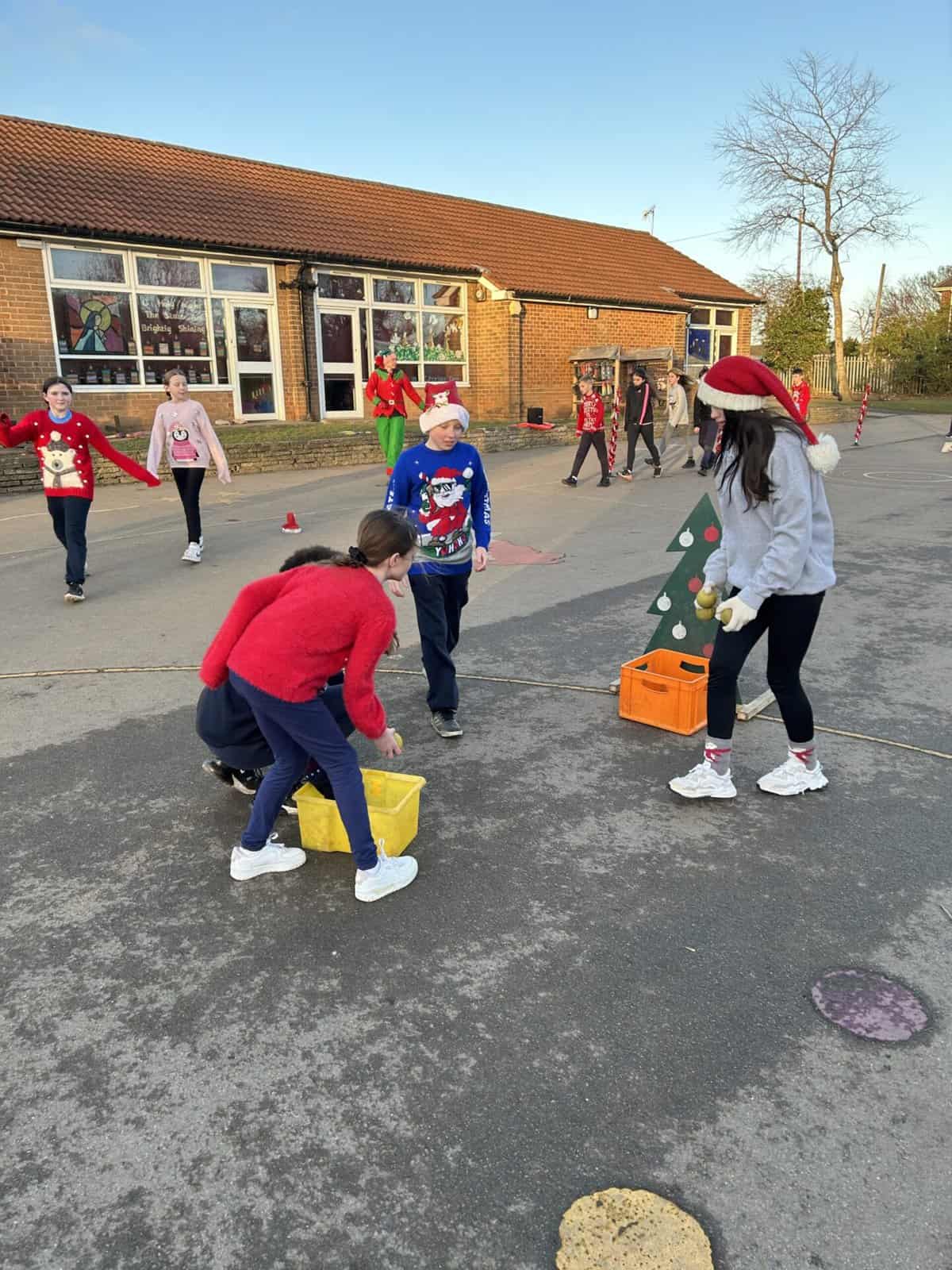 Year 6 had a wonderful time doing the Santa Dash. They dodged in and out of candy canes, decorated trees and even had a snowball fight. A great time was had by all.