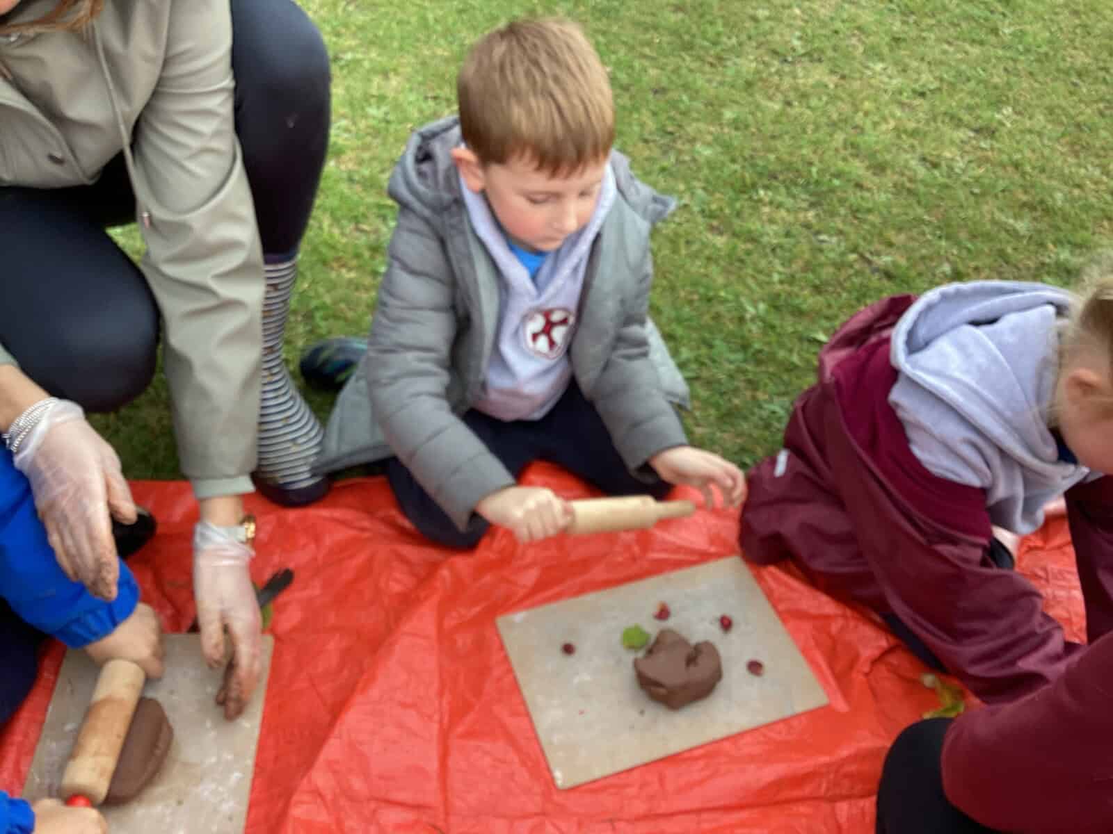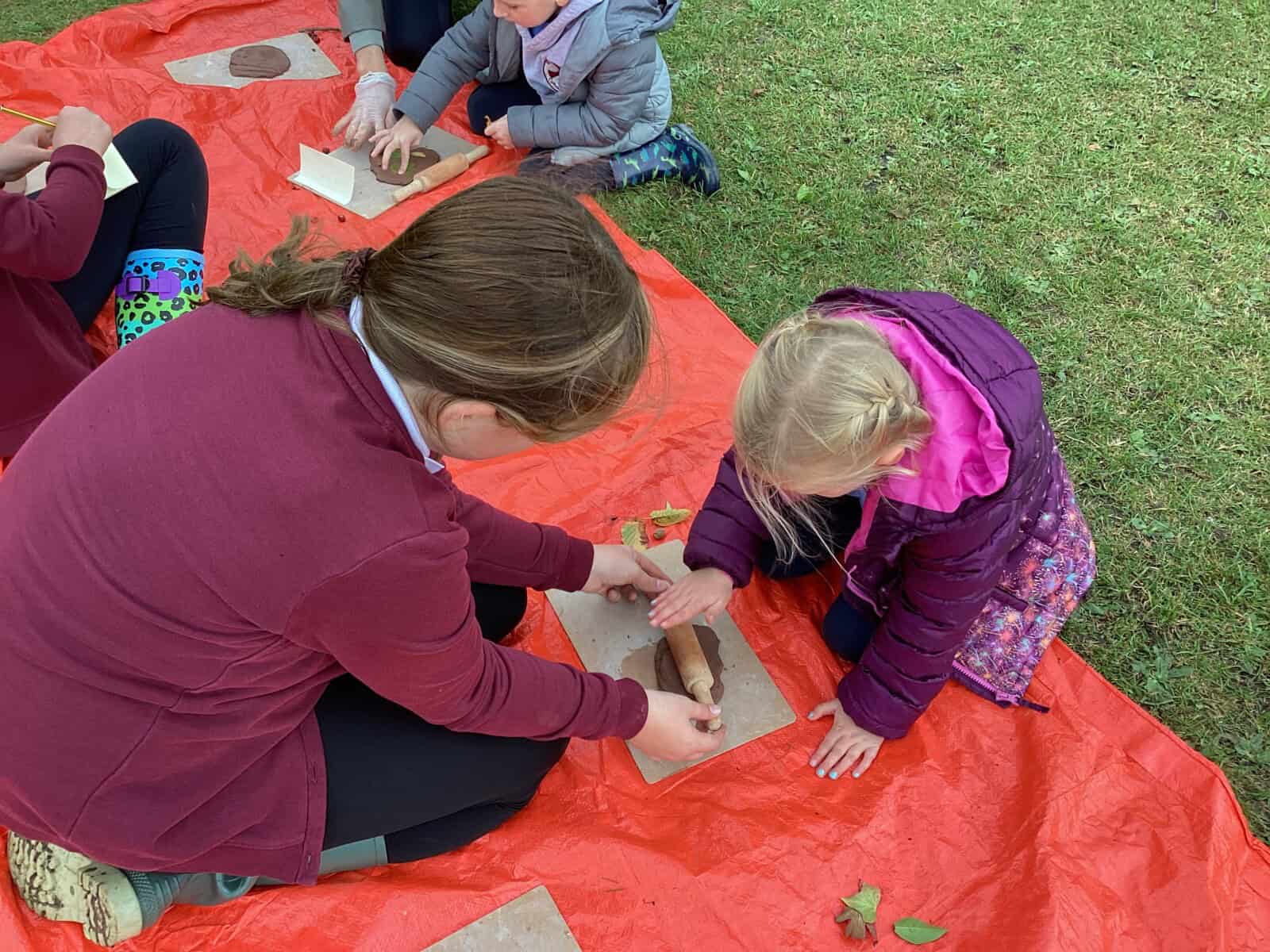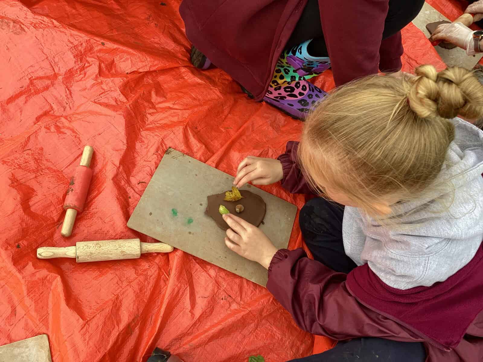 Last night, the children went on a nature hunt and then enjoyed using their treasures to make clay prints. They then enjoyed making fairy and troll homes. Once their creations are dry, the children will bring them home to hang.