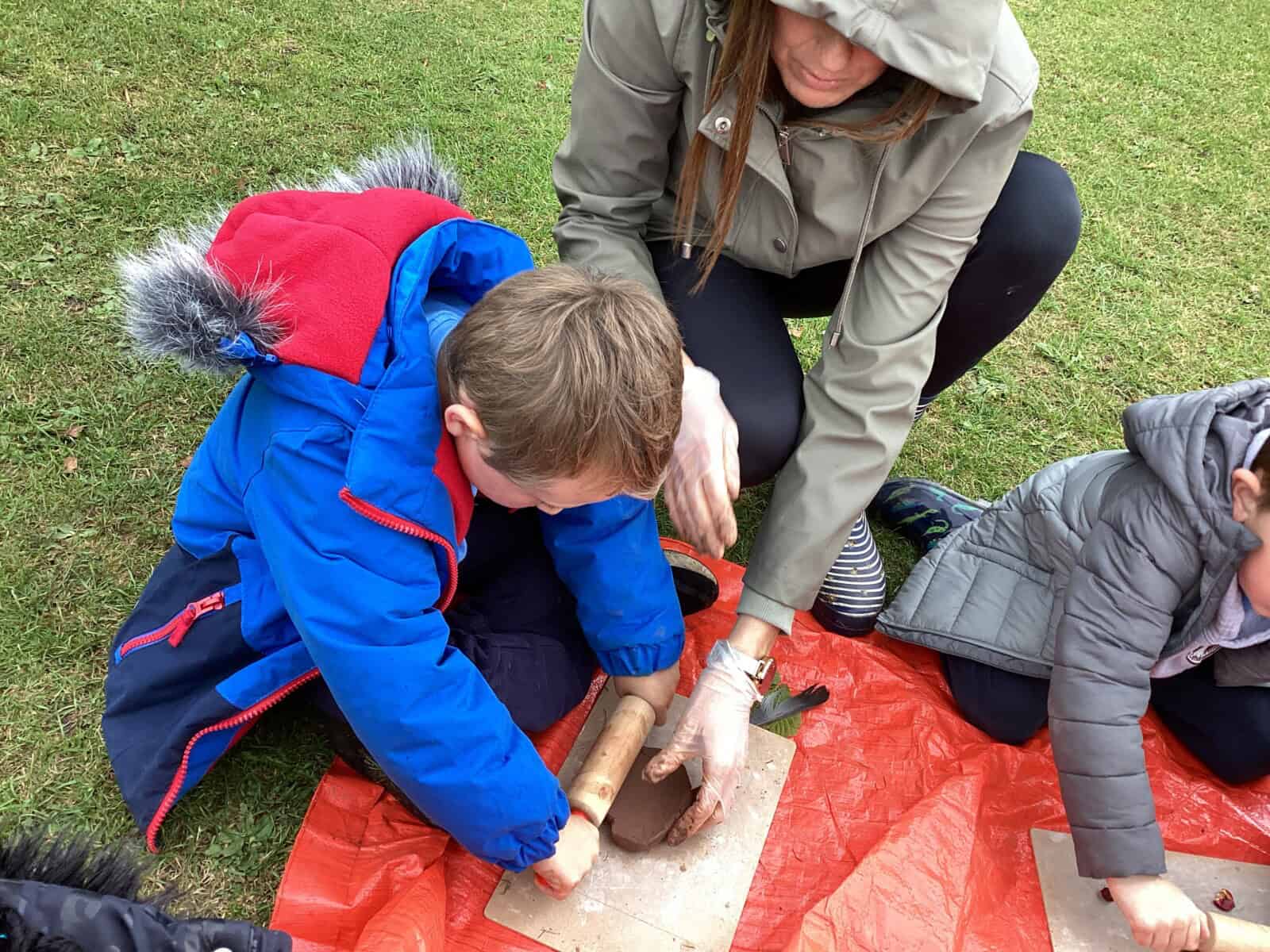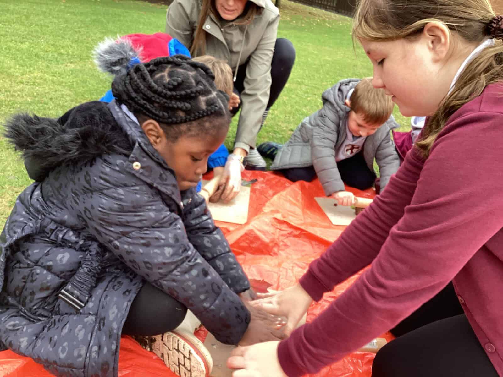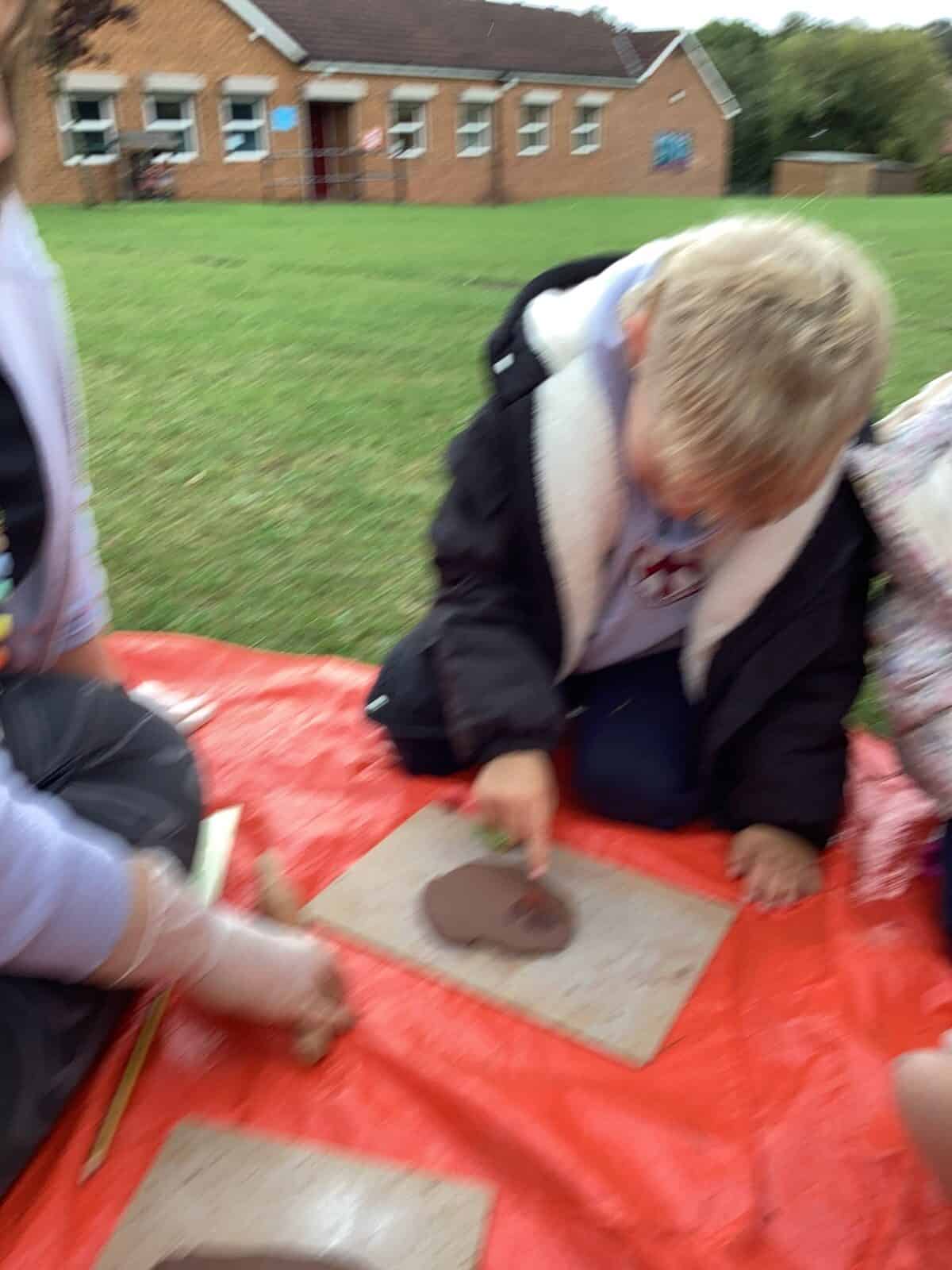 Last night, the children went on a nature hunt and then enjoyed using their treasures to make clay prints. They then enjoyed making fairy and troll homes. Once their creations are dry, the children will bring them home to hang.
