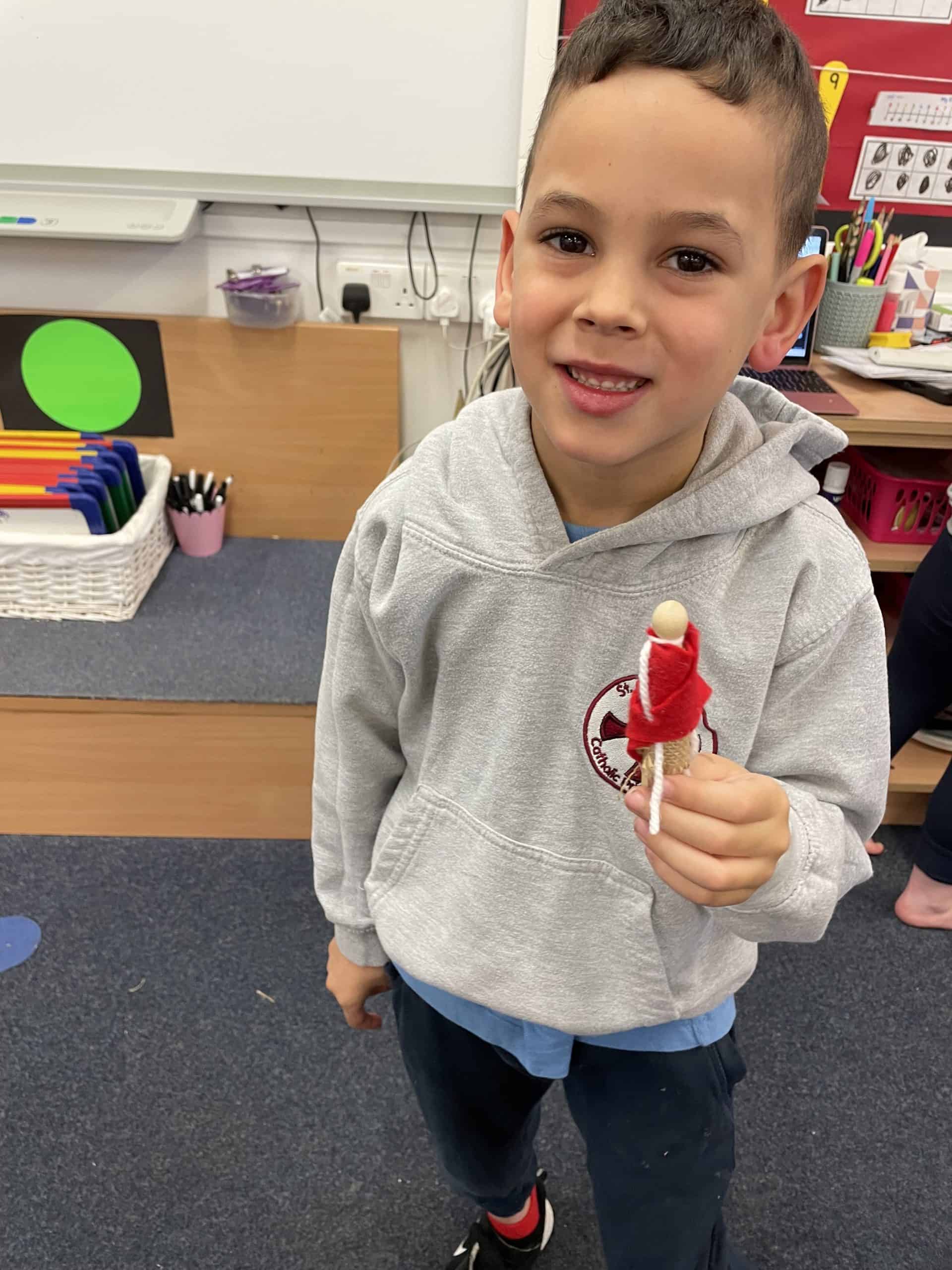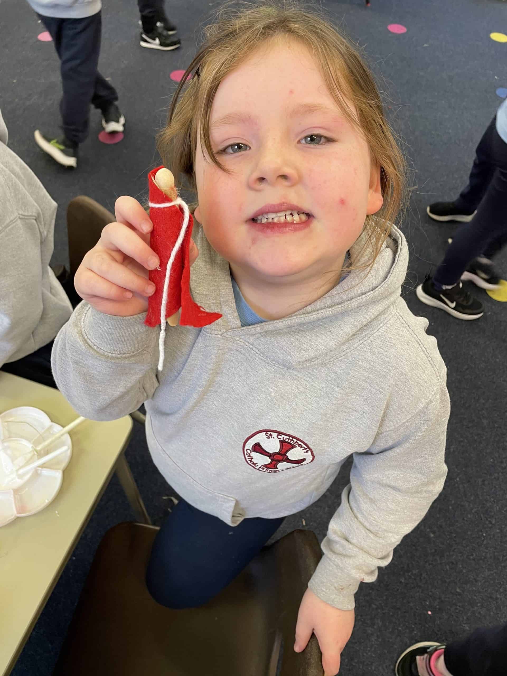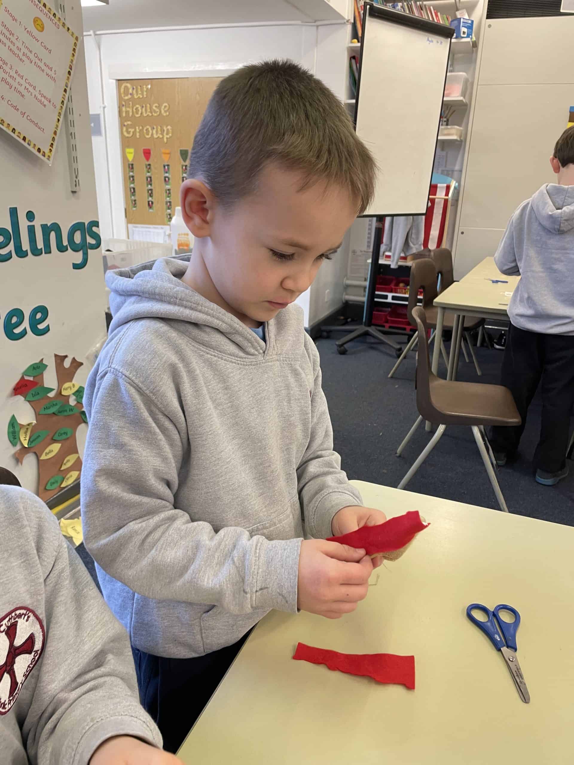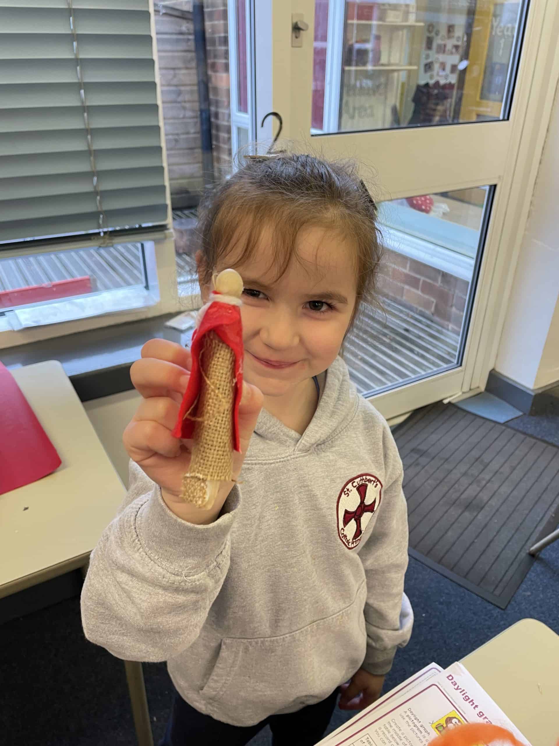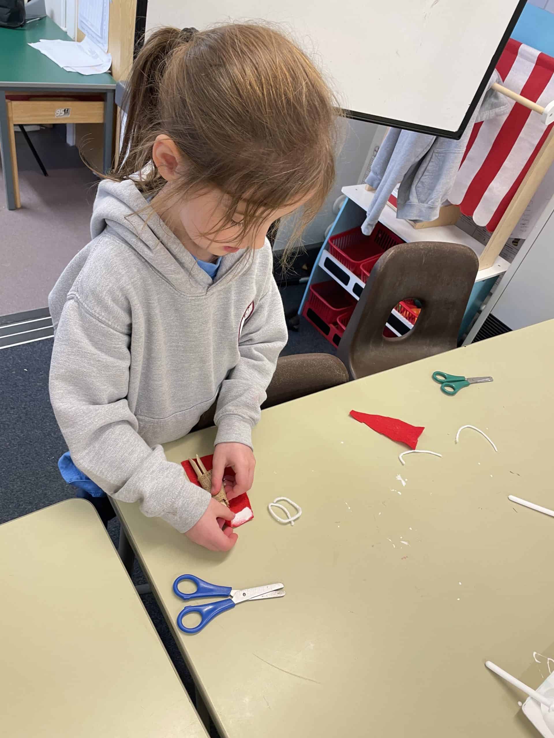 During Art, we made peg dolls to add to our forest setting. We explored fabrics such as satin, cotton, hessian and fur and then we chose the most appropriate fabric for our Little Red Riding Hood peg doll.