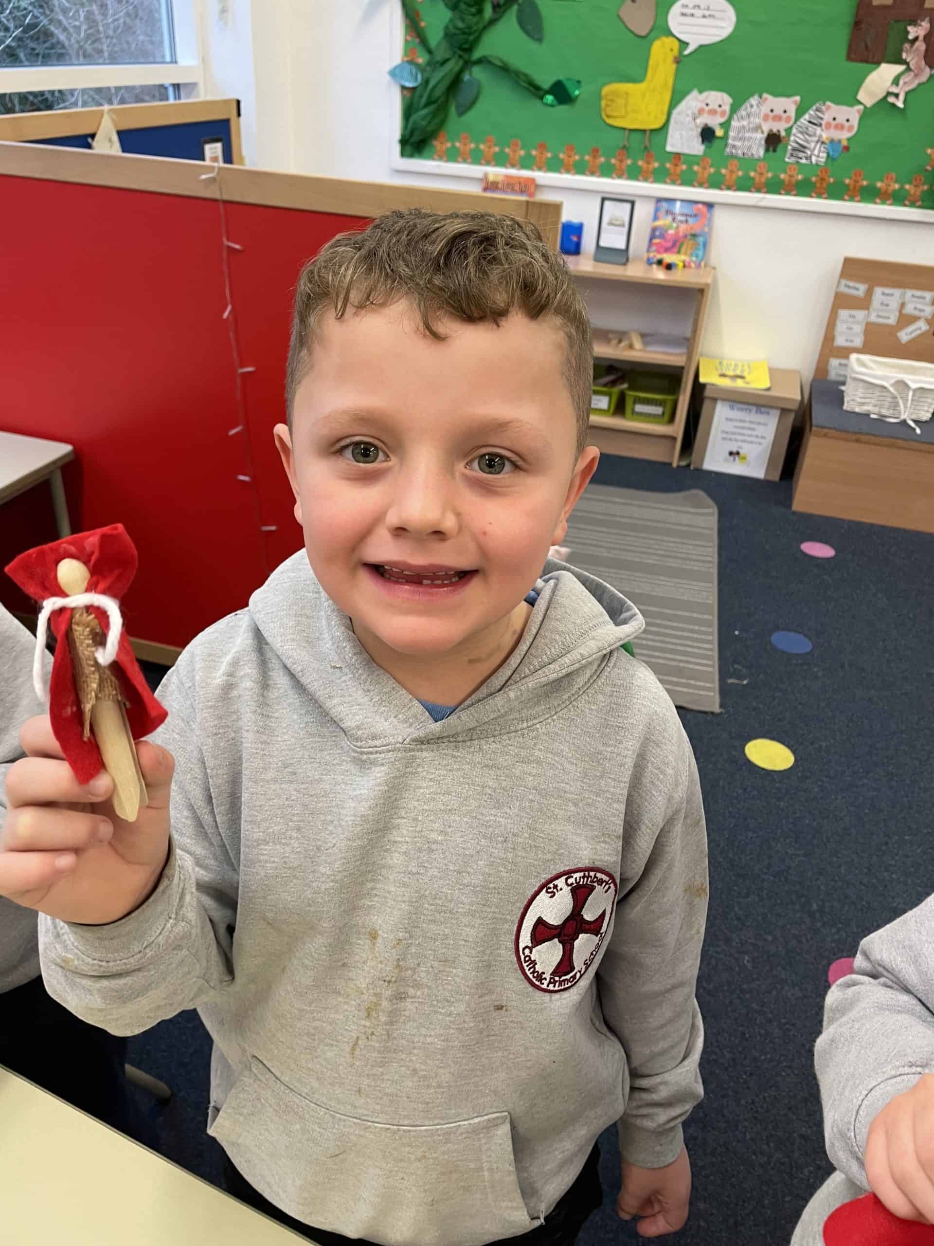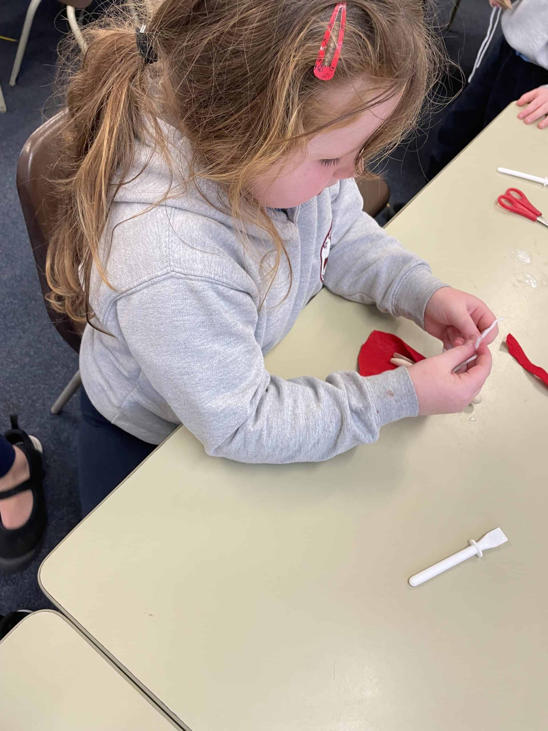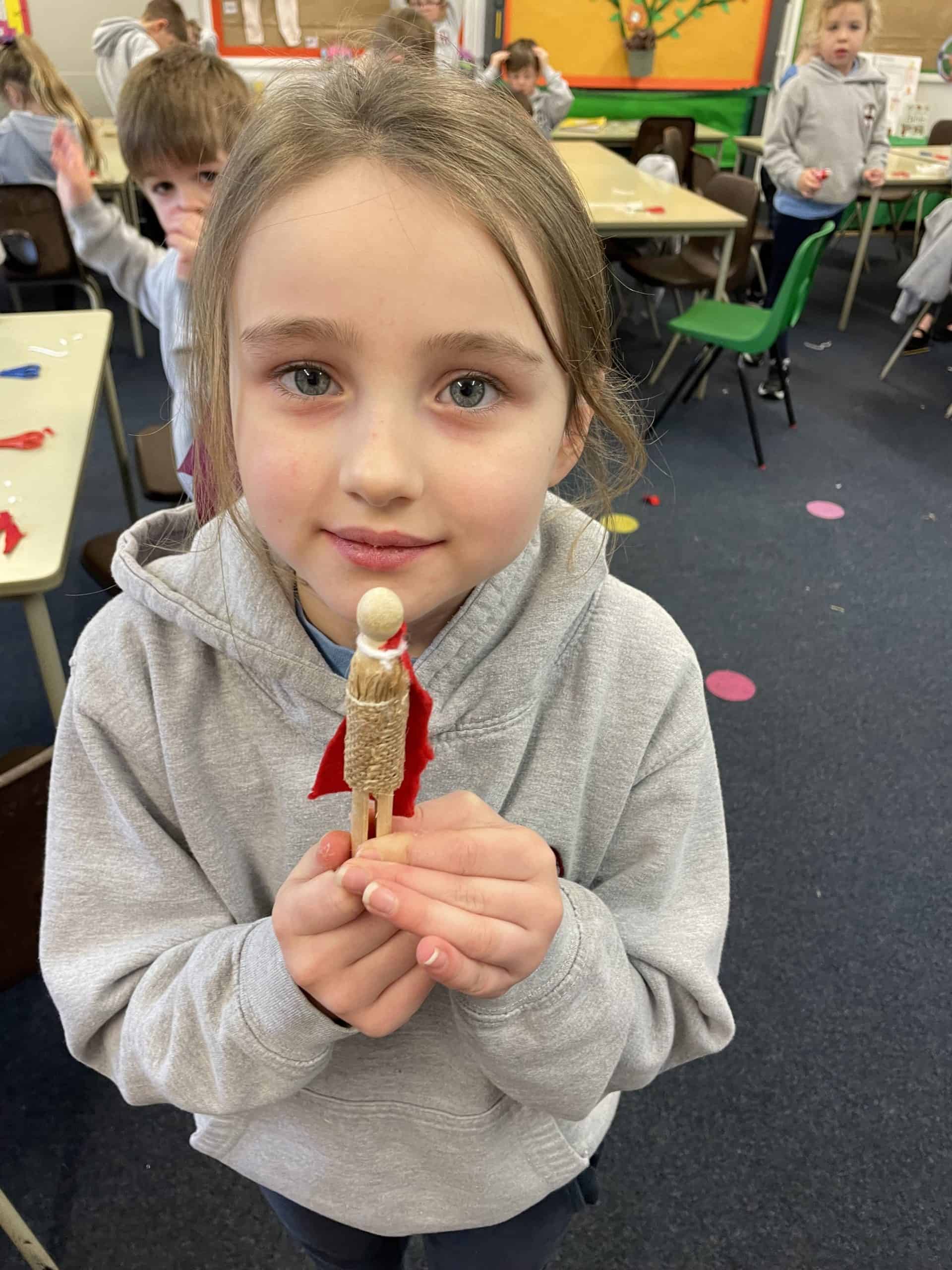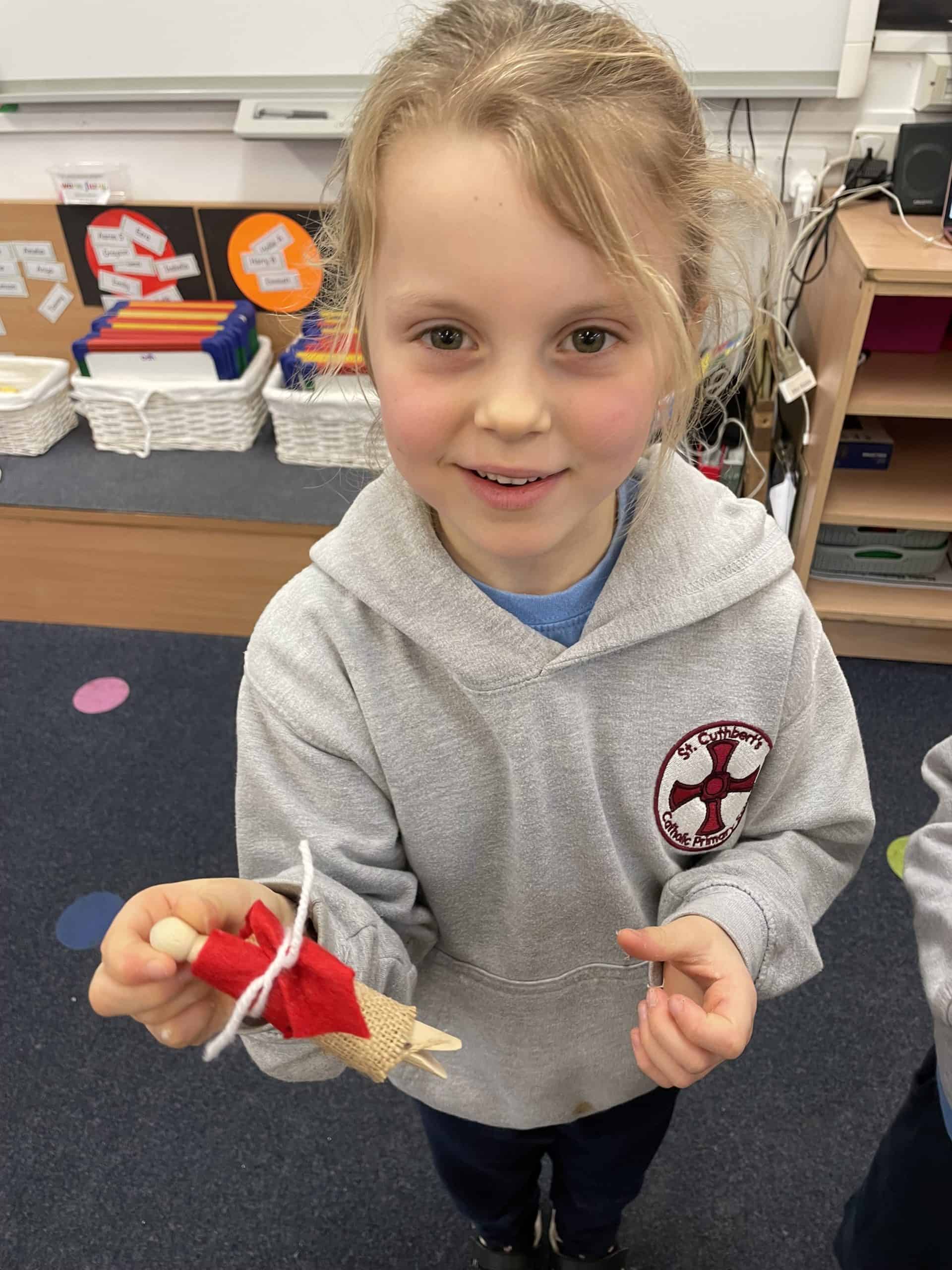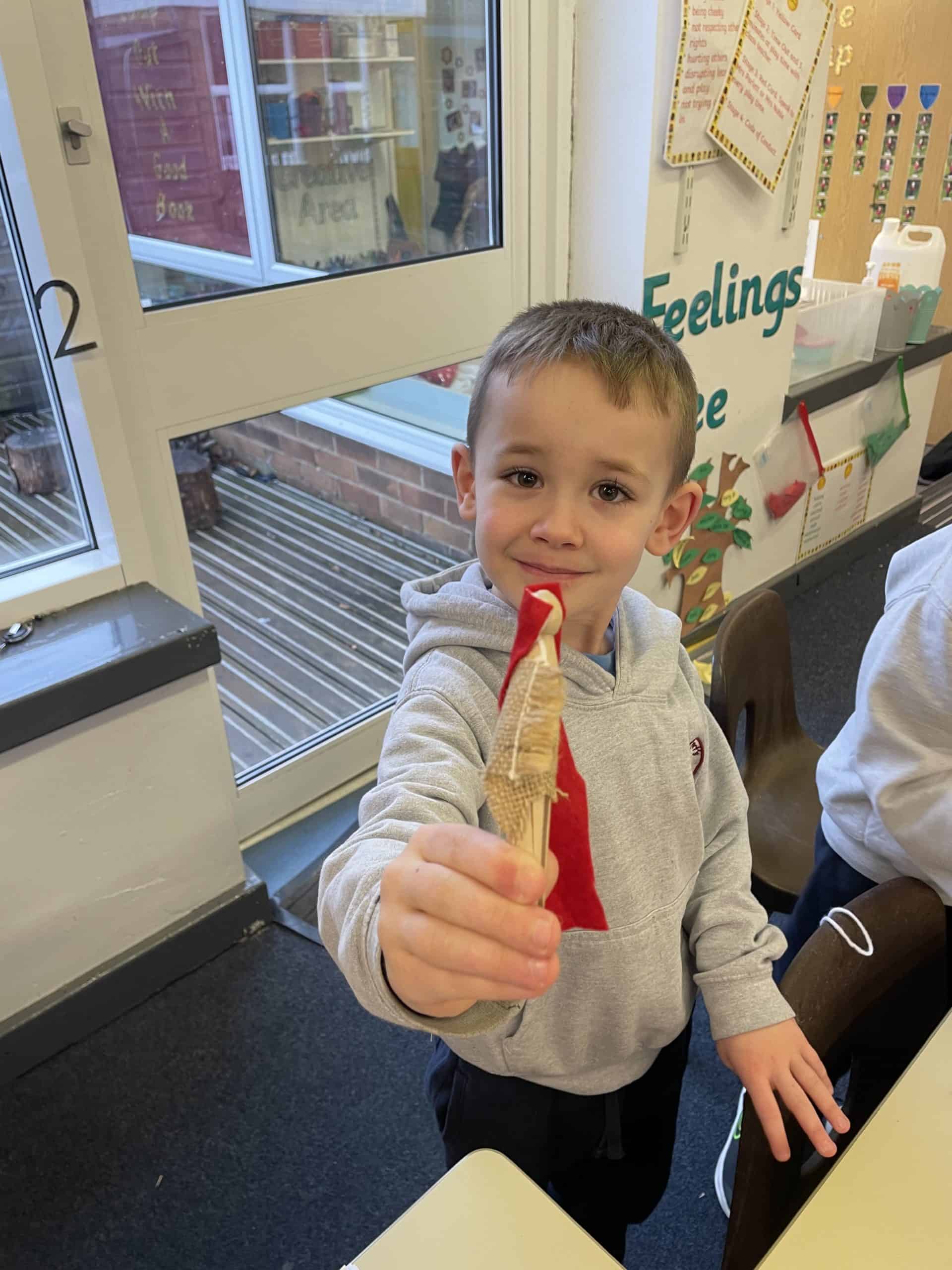 During Art, we made peg dolls to add to our forest setting. We explored fabrics such as satin, cotton, hessian and fur and then we chose the most appropriate fabric for our Little Red Riding Hood peg doll.