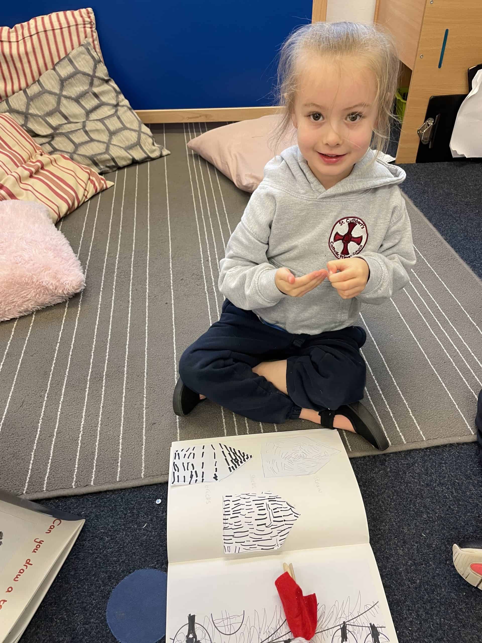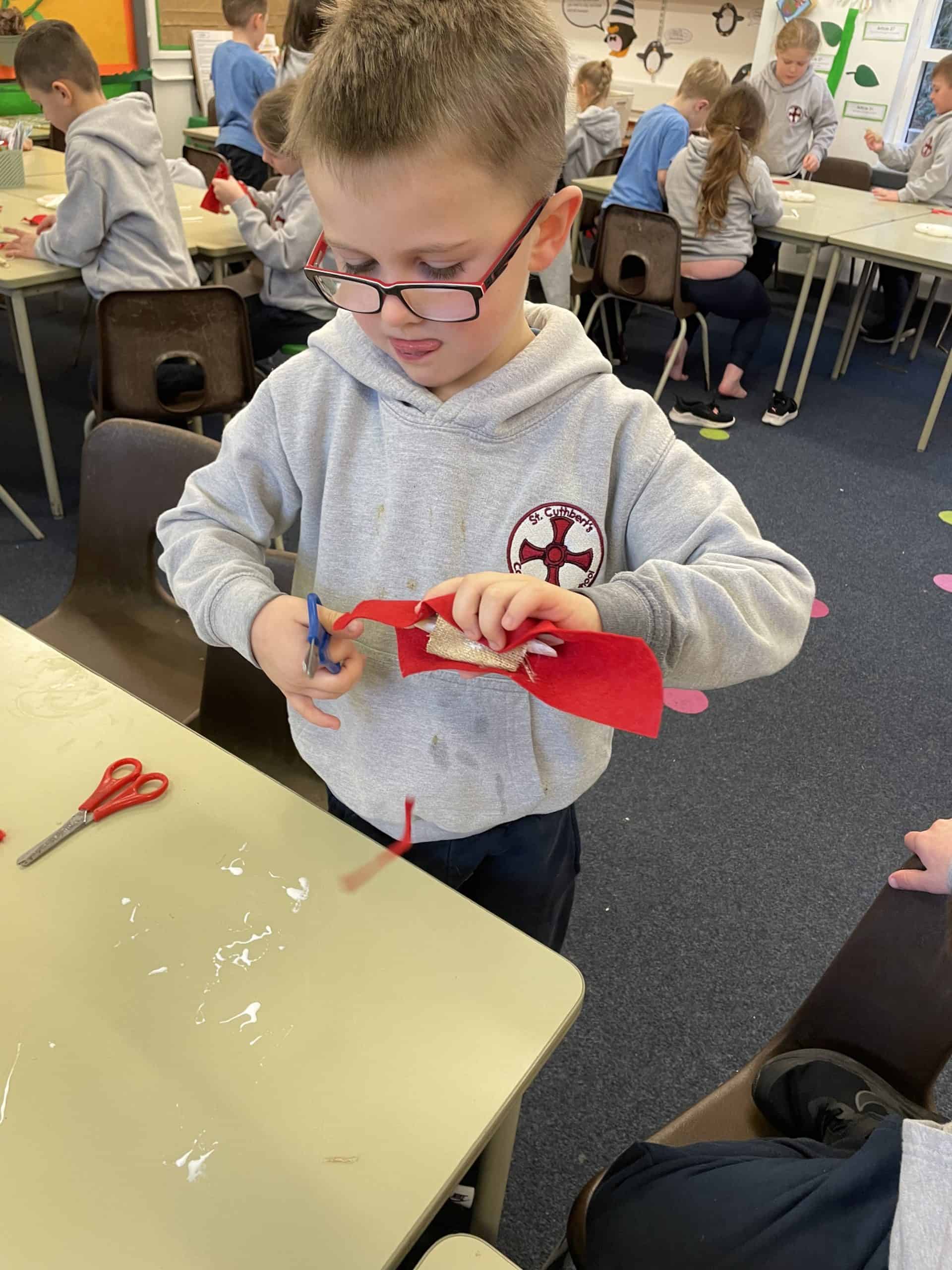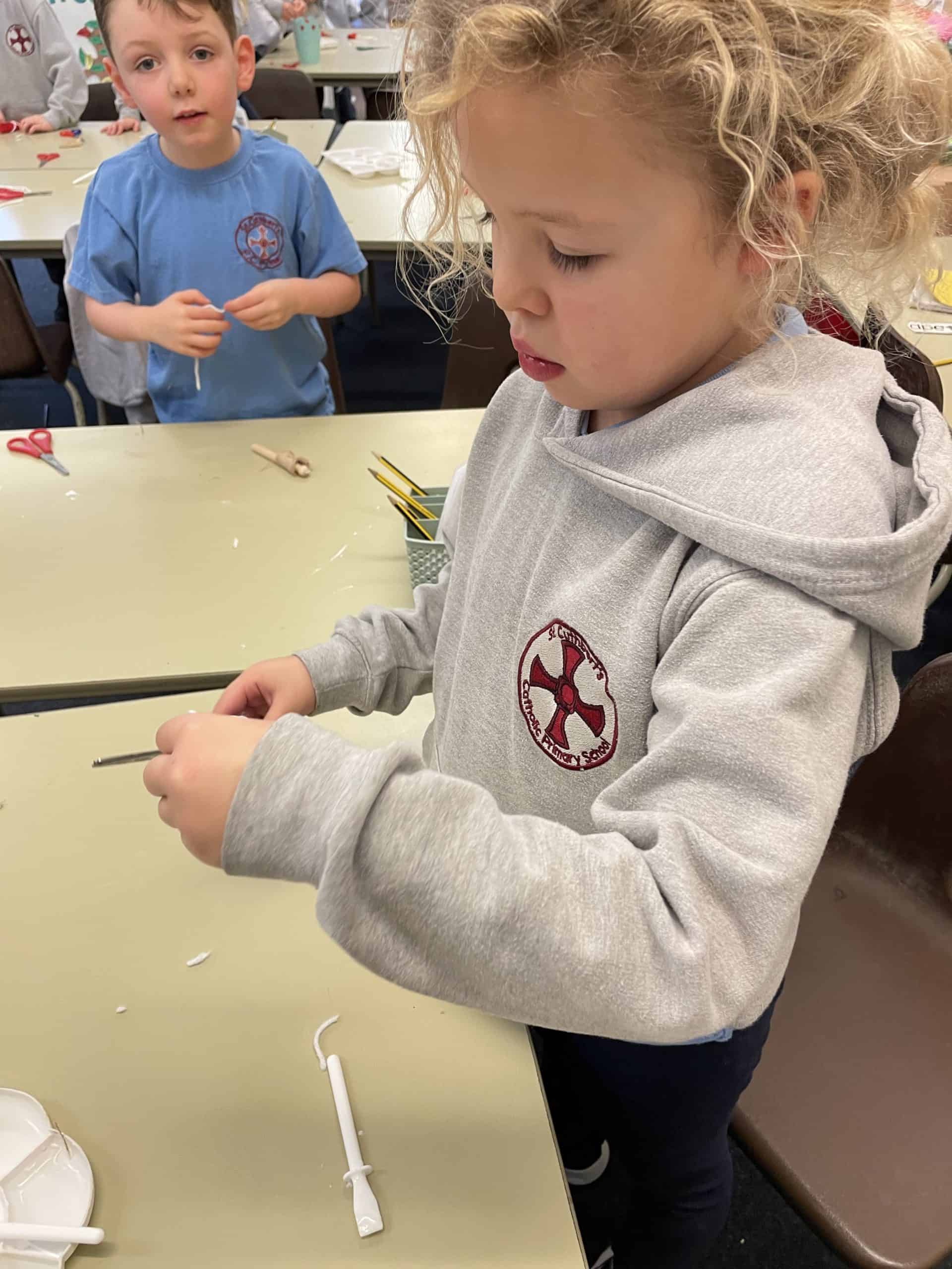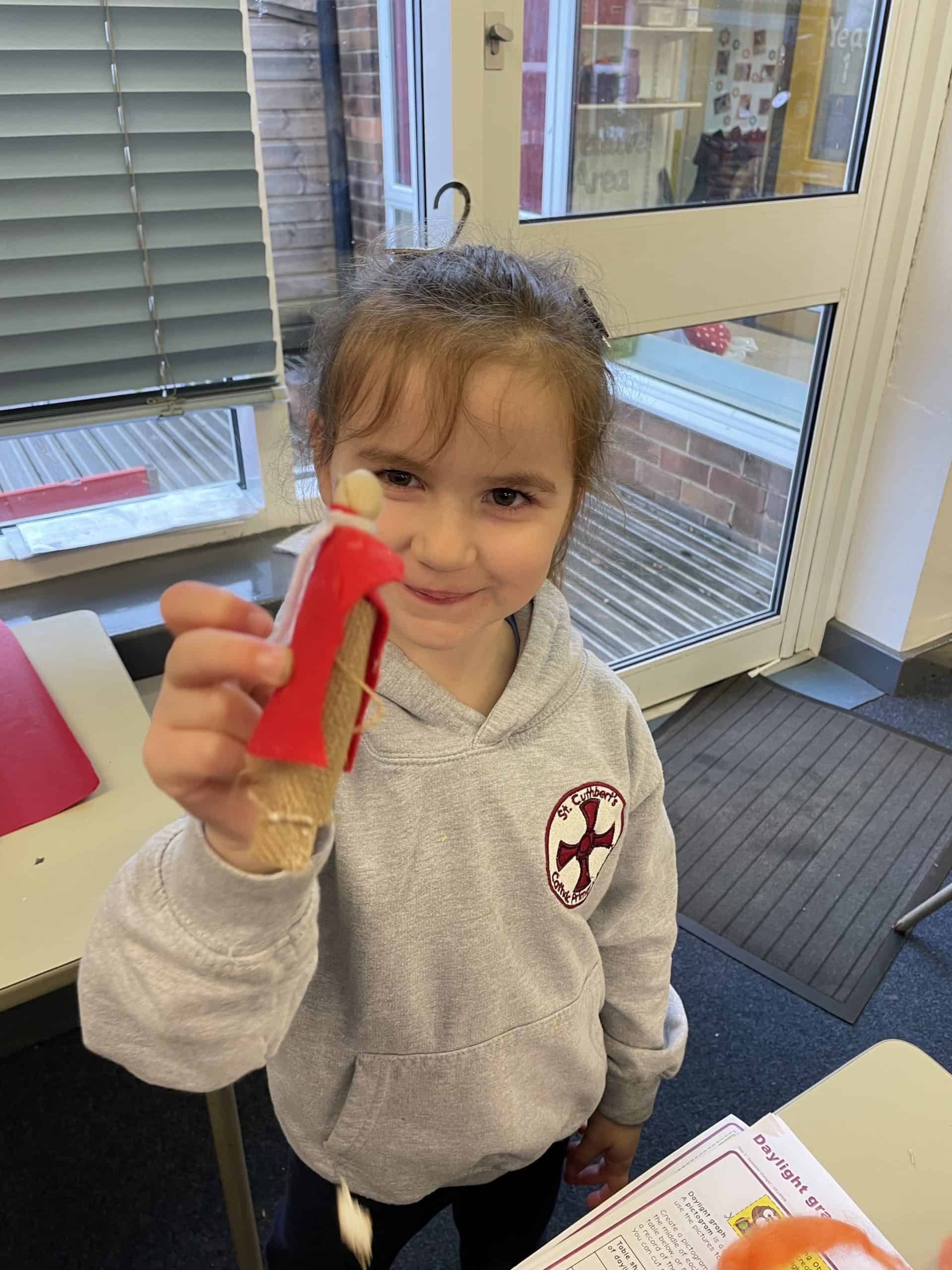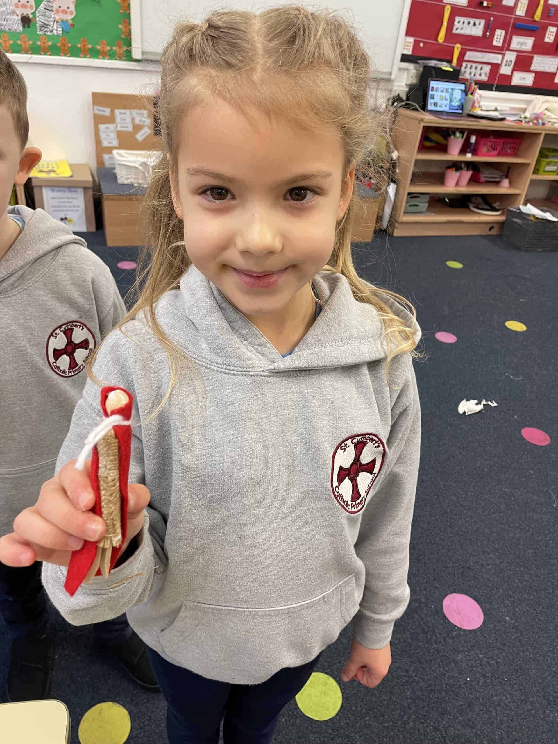 During Art, we made peg dolls to add to our forest setting. We explored fabrics such as satin, cotton, hessian and fur and then we chose the most appropriate fabric for our Little Red Riding Hood peg doll.