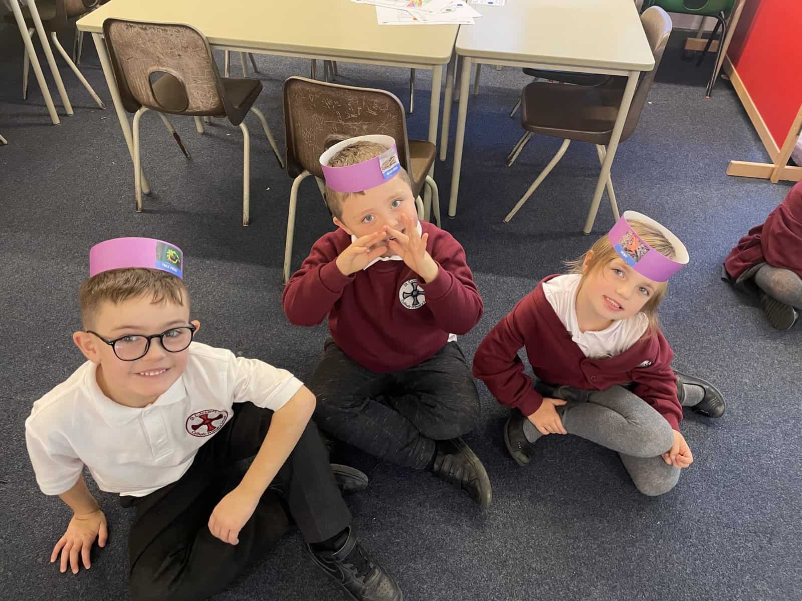 We were given an animal and a headband. We put our animal on our headband and were asked to group ourselves. Once we did this we thought about what sort of things the creatures in our group had in common and we thought about whether any other creatures could have also joined our group. We then got into 5 distinct groups: fish, amphibians, reptiles, birds and mammals and then we talked about what features the animals in our groups had.