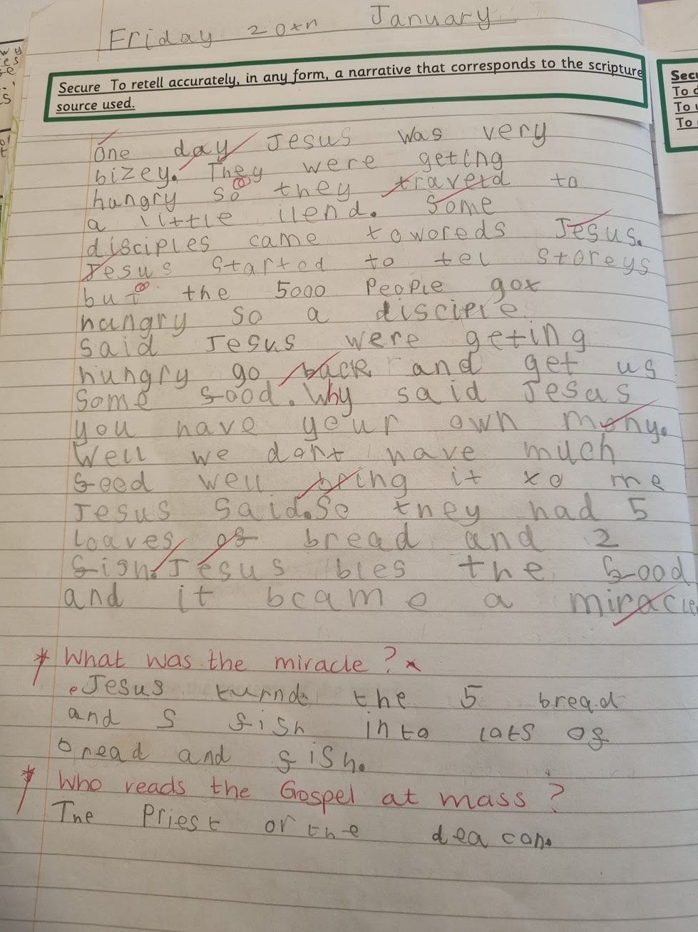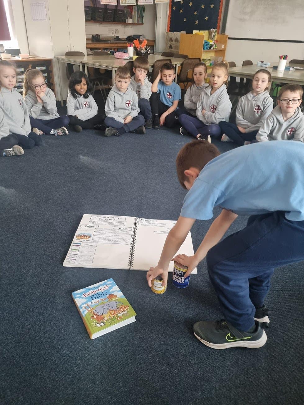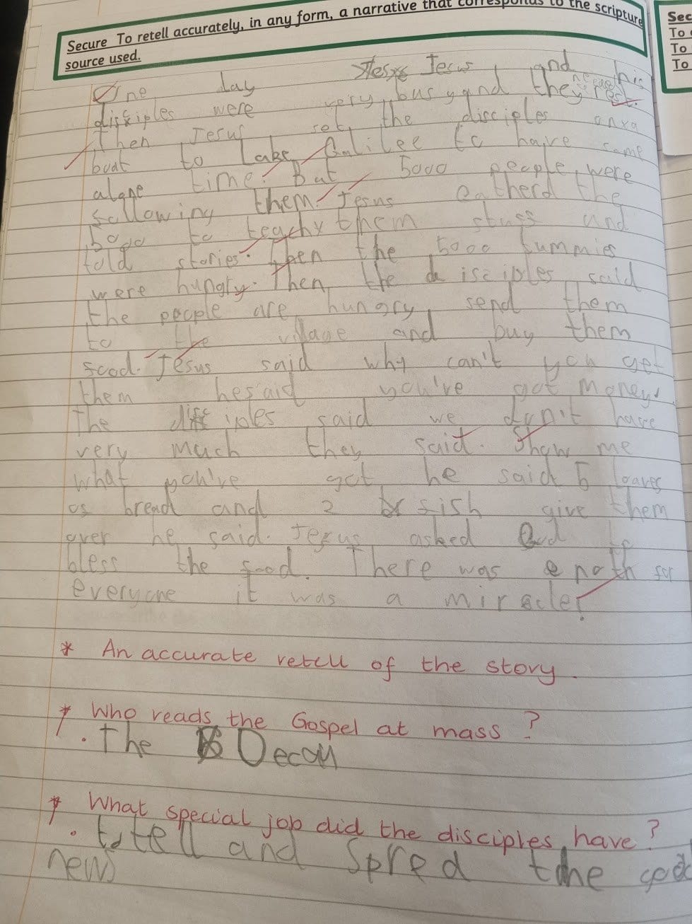 As we came to the end of our Special Books RE topic, we reflected on all we had heard and learnt, As a whole class, we planned a class liturgical prayer using the scripture from Mark’s Gospel; Jesus feeds 5000 which was one of the scriptures we had listened to and retold in our topic.