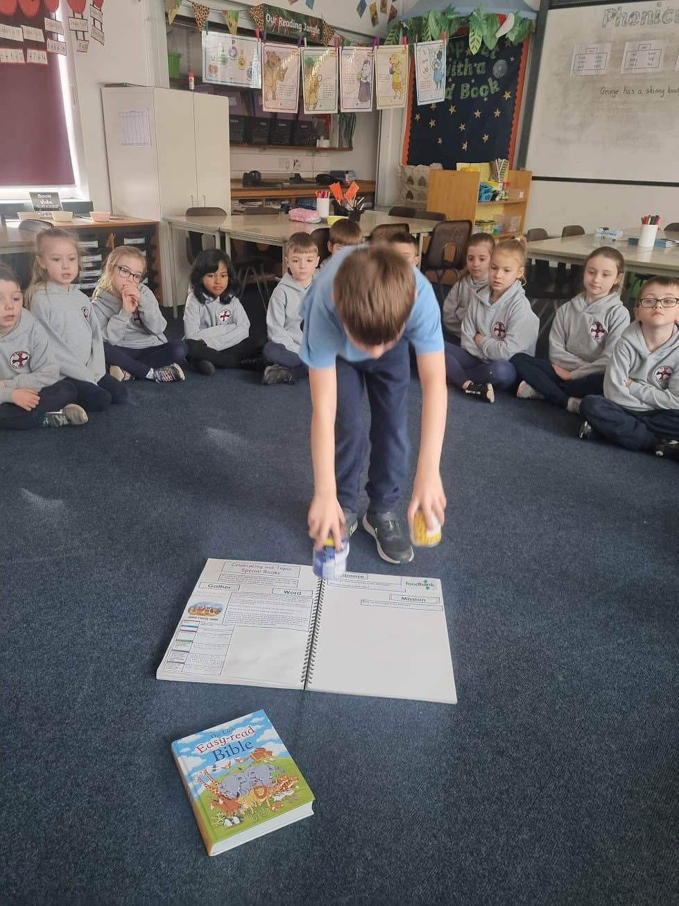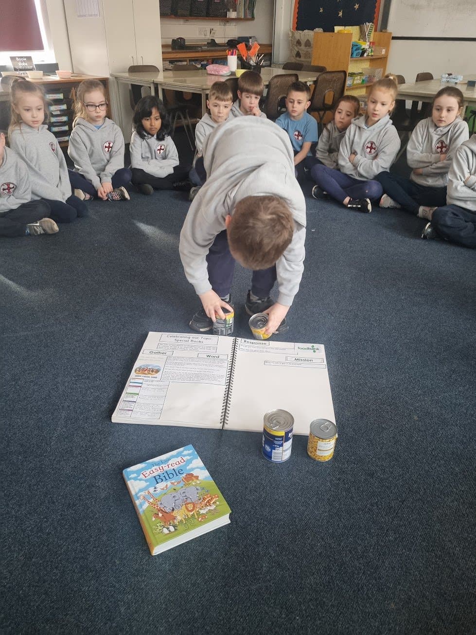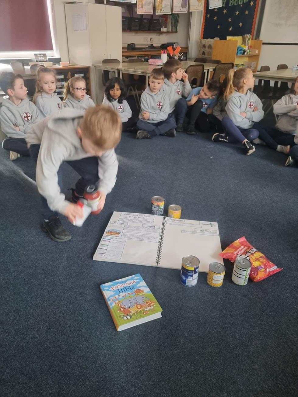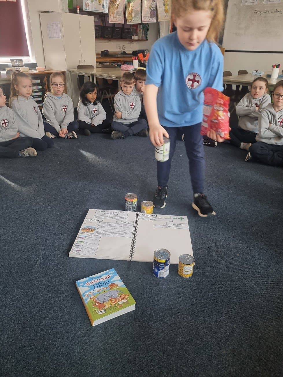 In the story, Jesus showed how he was able to feed the hungry. We discussed why we felt that Jesus had done this and what this told us about Him. We decided as our mission, we would donate some food to the local food bank so that we too could feed the hungry.