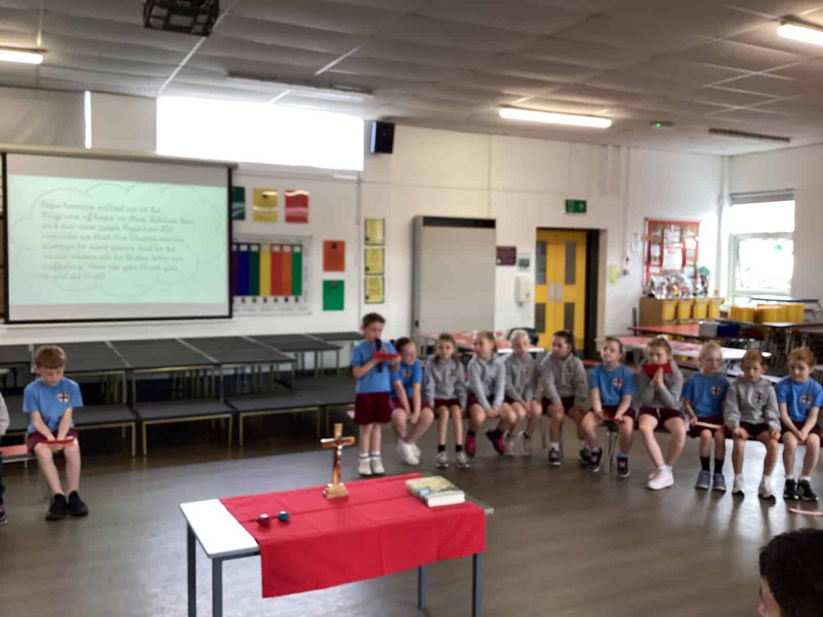 This morning, Year 2 shared a Celebration of the Word about St Peter and St Paul with their parents. They all did an amazing job and we were so impressed. Some children stood up and read the lines for children who were absent – a very brave thing to do. After that, with the help of parents, we created a stained glass window based on the ones at the Basilica of St Peter and Paul. Well done to Year 2 and a huge thank you to all of the parents who came.