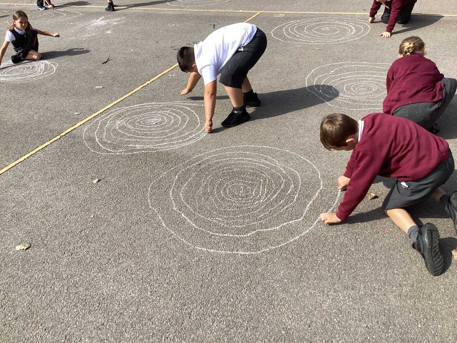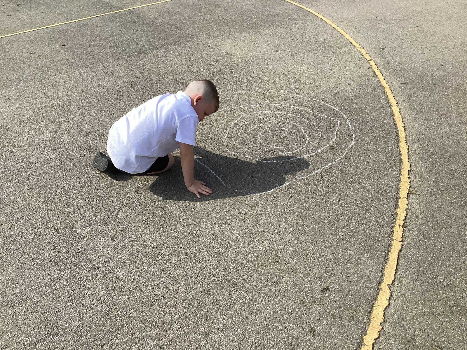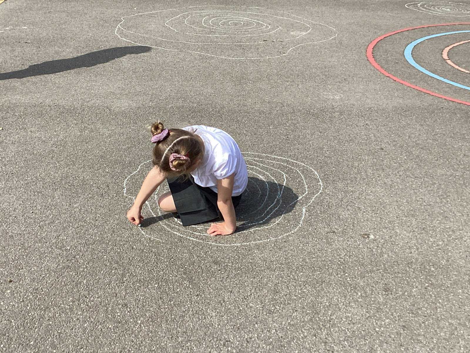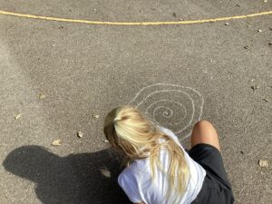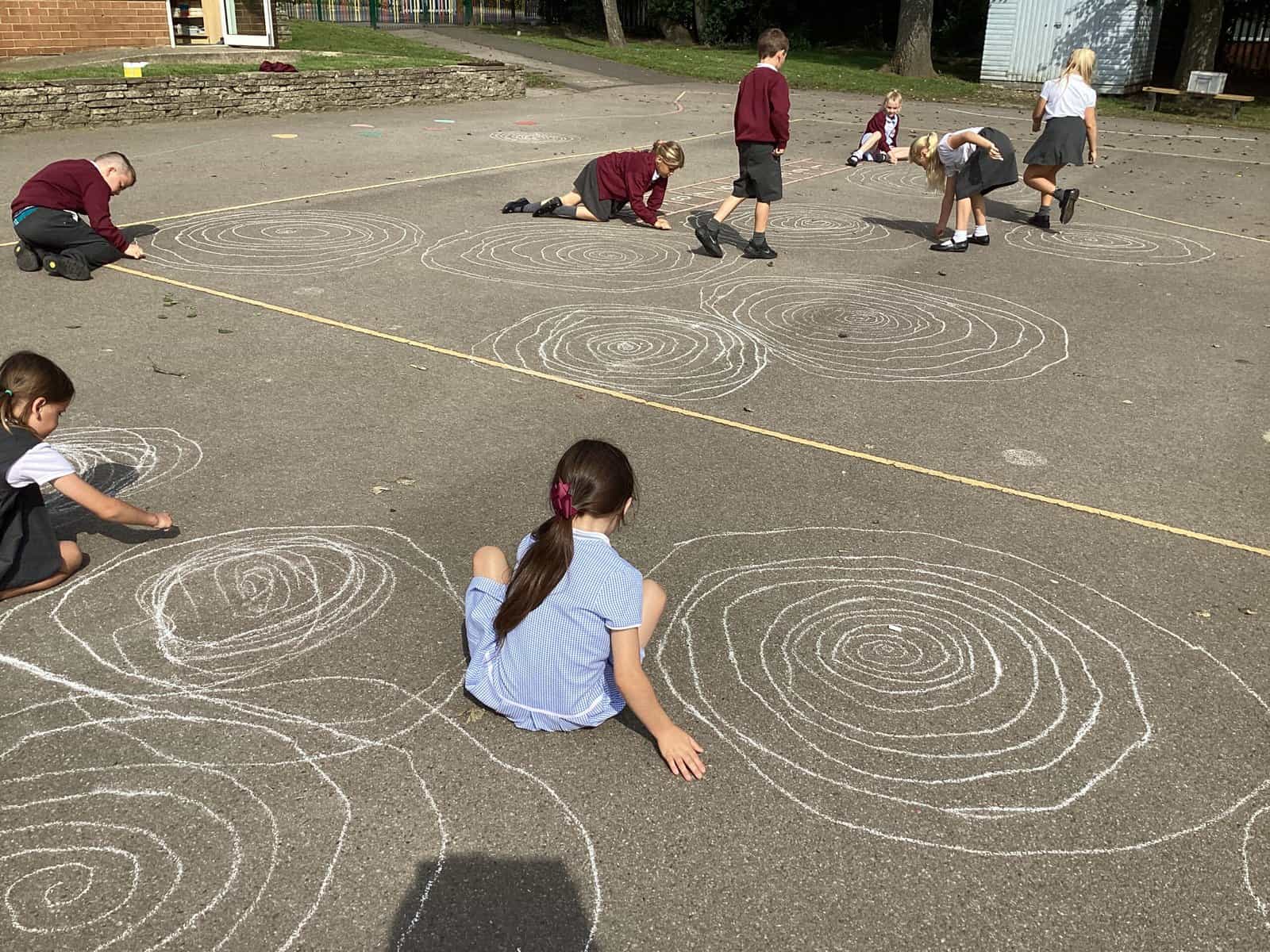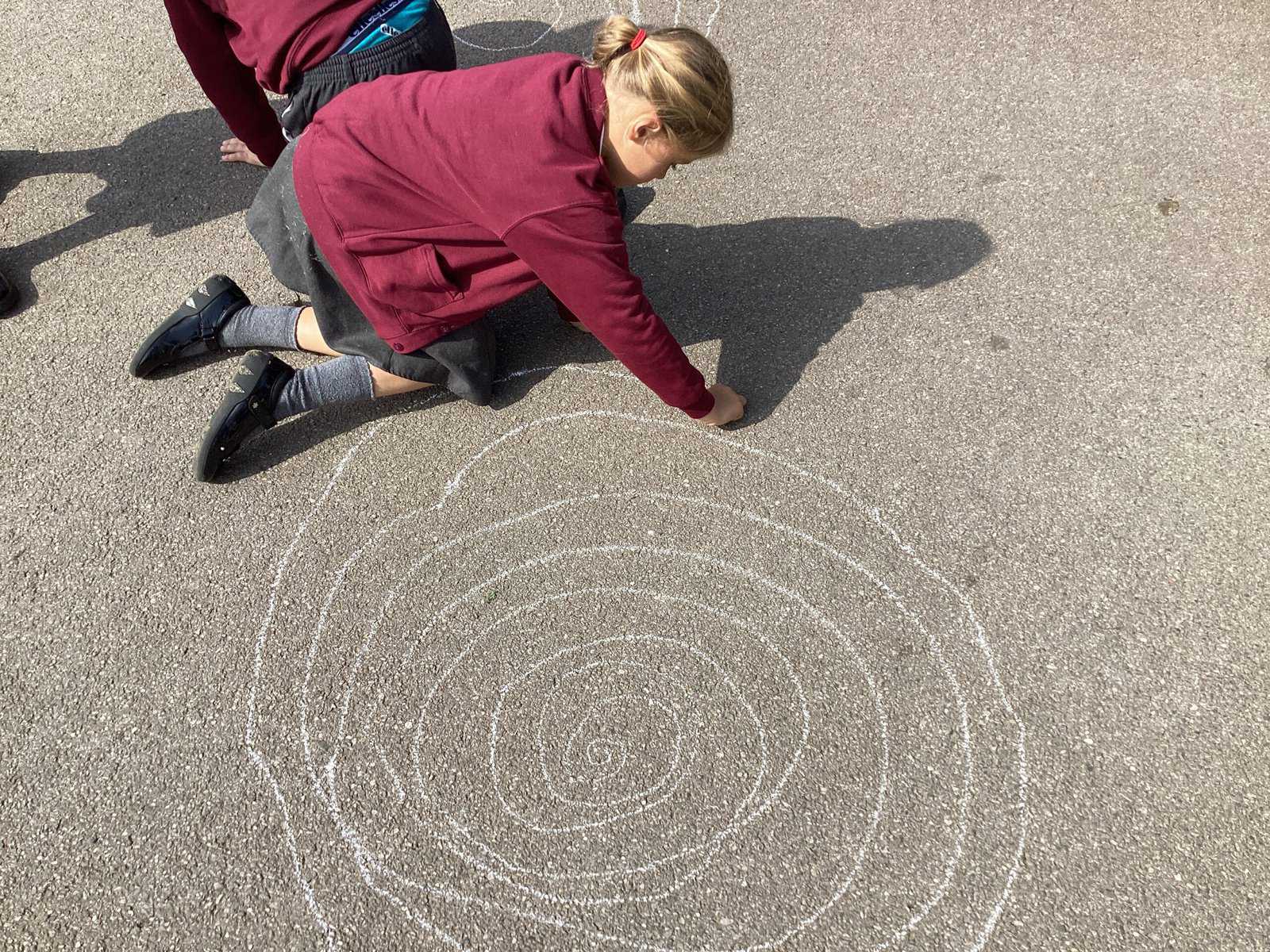 Today in Year 2 we started thinking about drawing. We practised drawing with our hands in sketchbooks, with our arms and moving our whole bodies! We looked at art by Molly Hausland who draws huge circles outdoors. We loved drawing spirals on our yard!