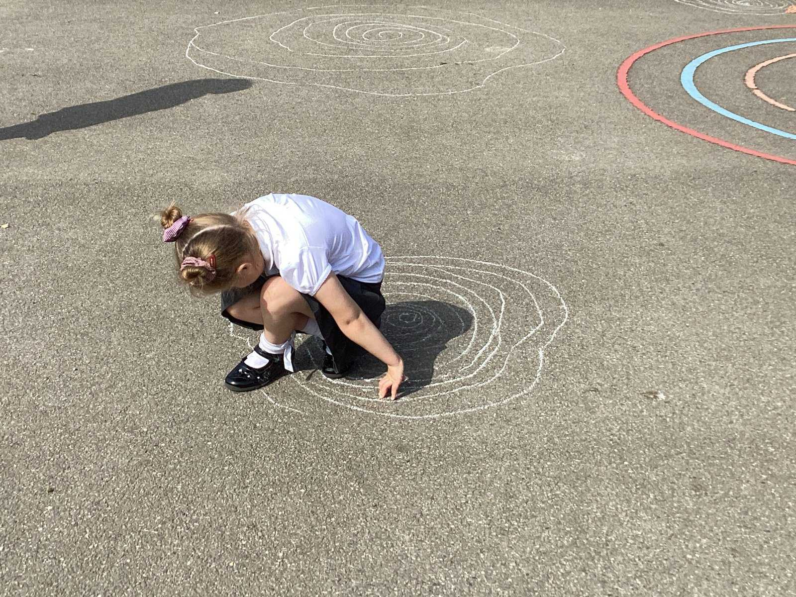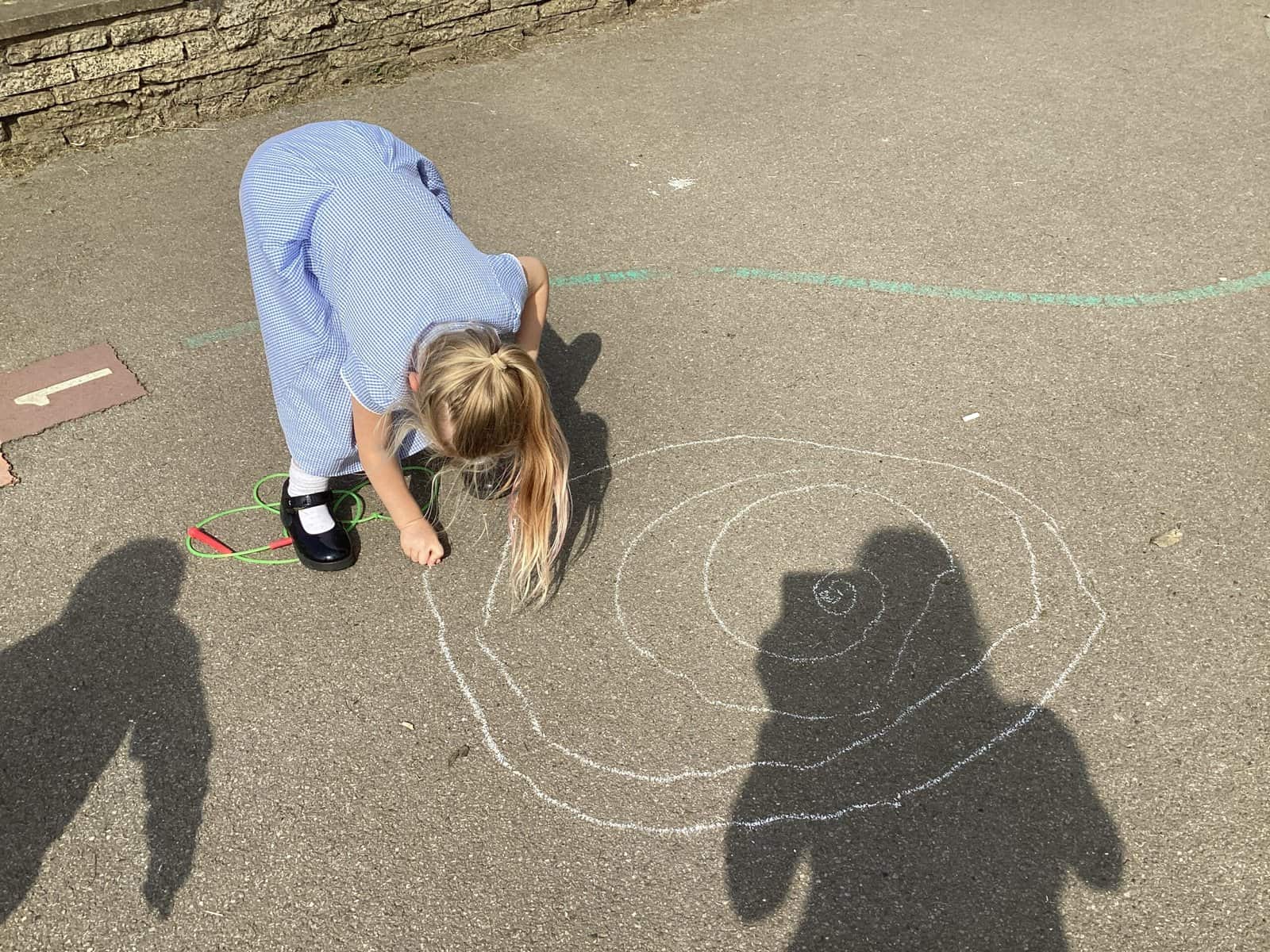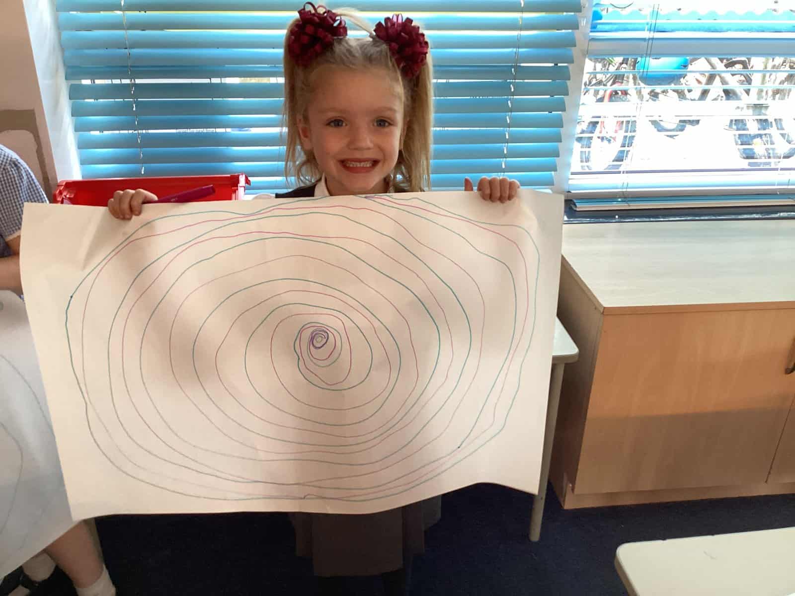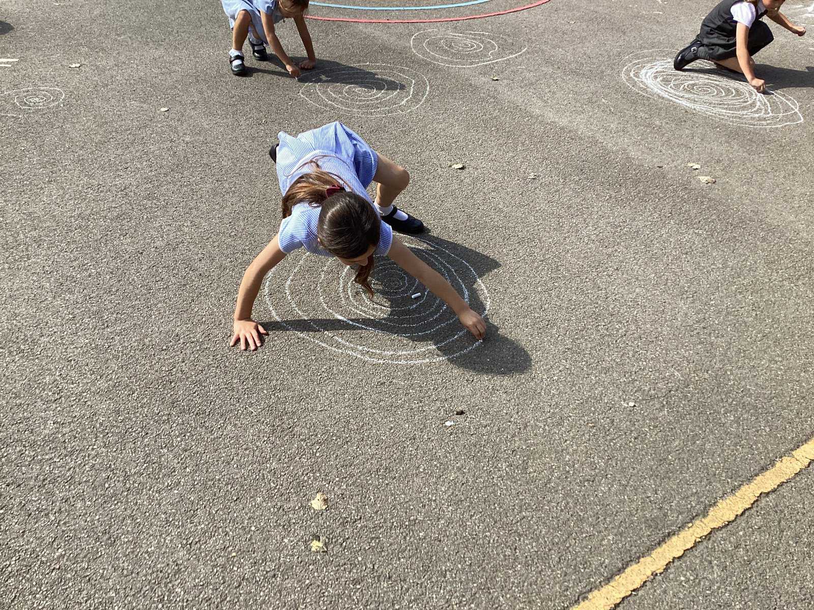Today in Year 2 we started thinking about drawing. We practised drawing with our hands in sketchbooks, with our arms and moving our whole bodies! We looked at art by Molly Hausland who draws huge circles outdoors. We loved drawing spirals on our yard!