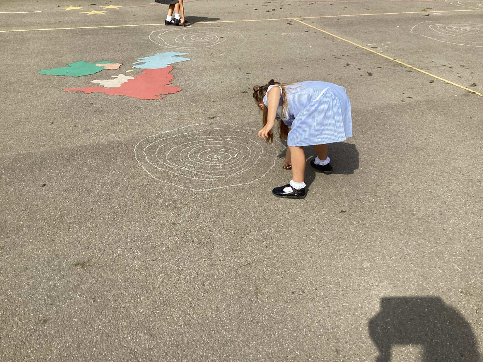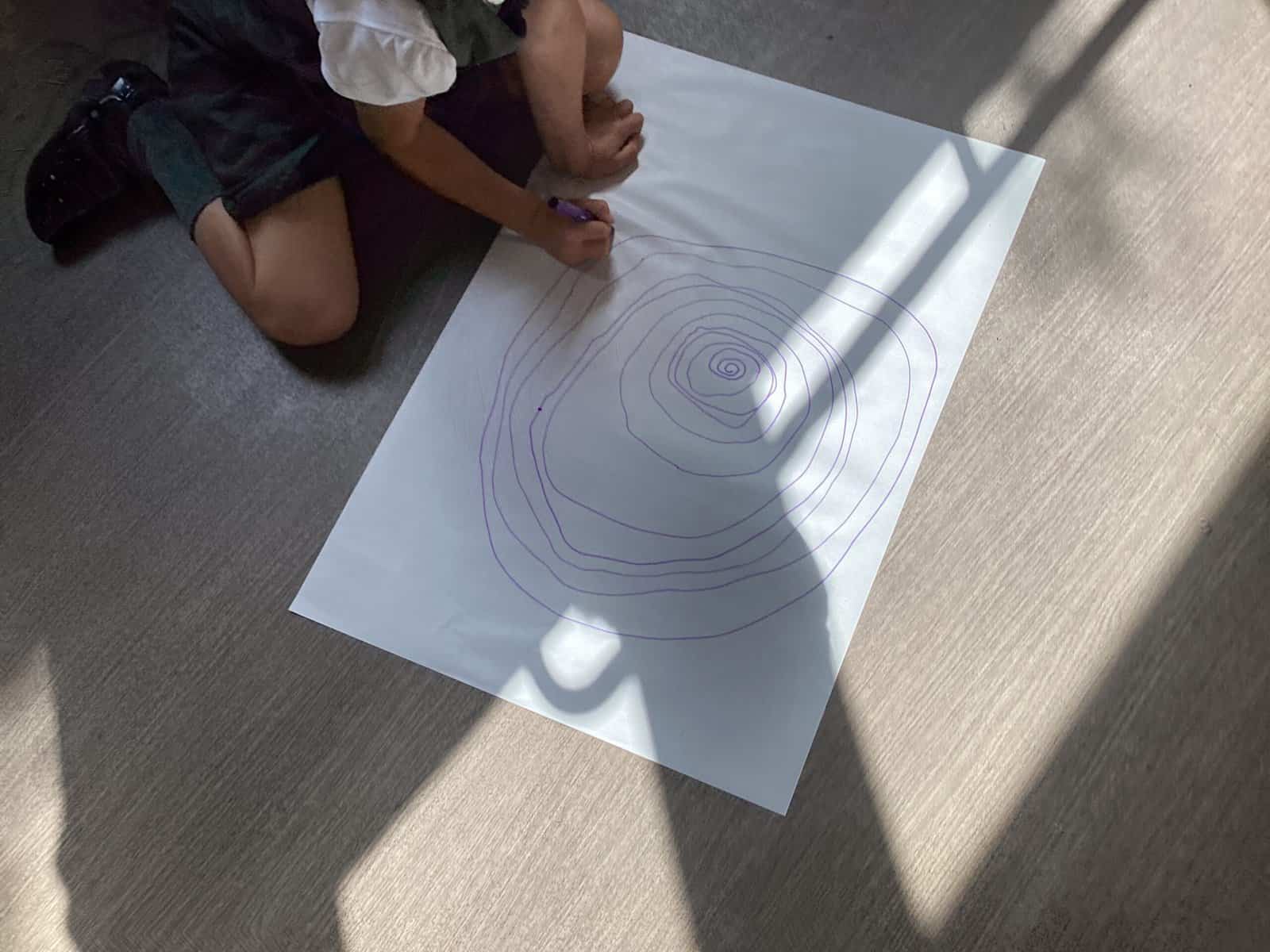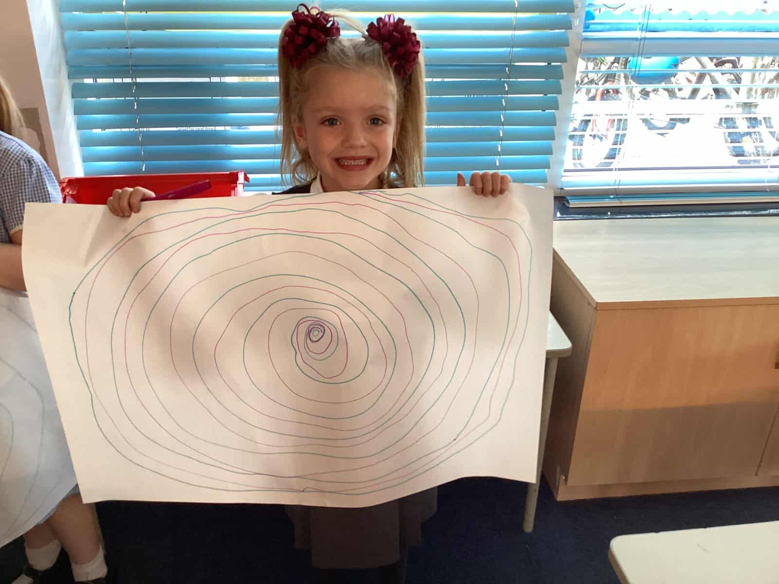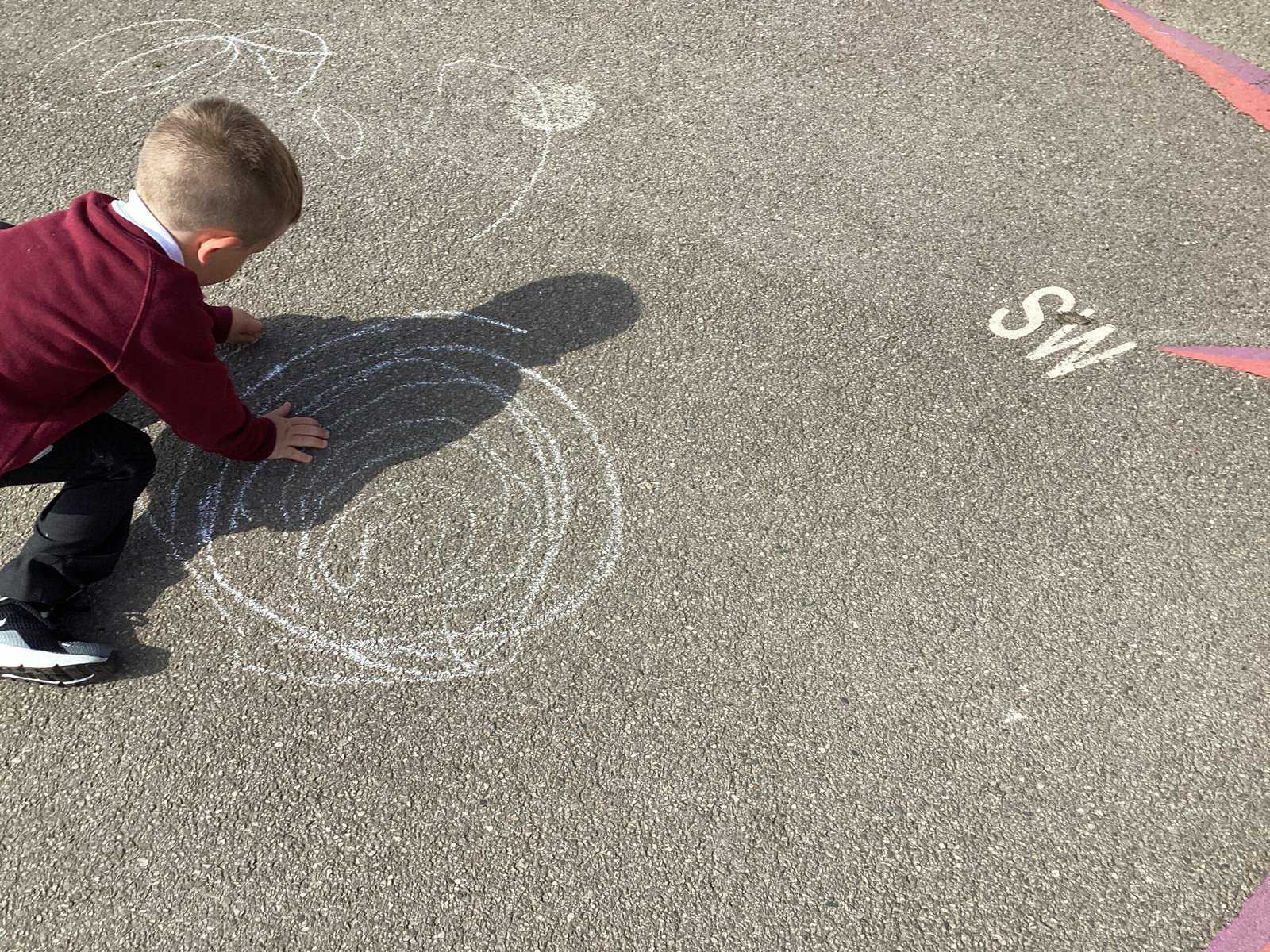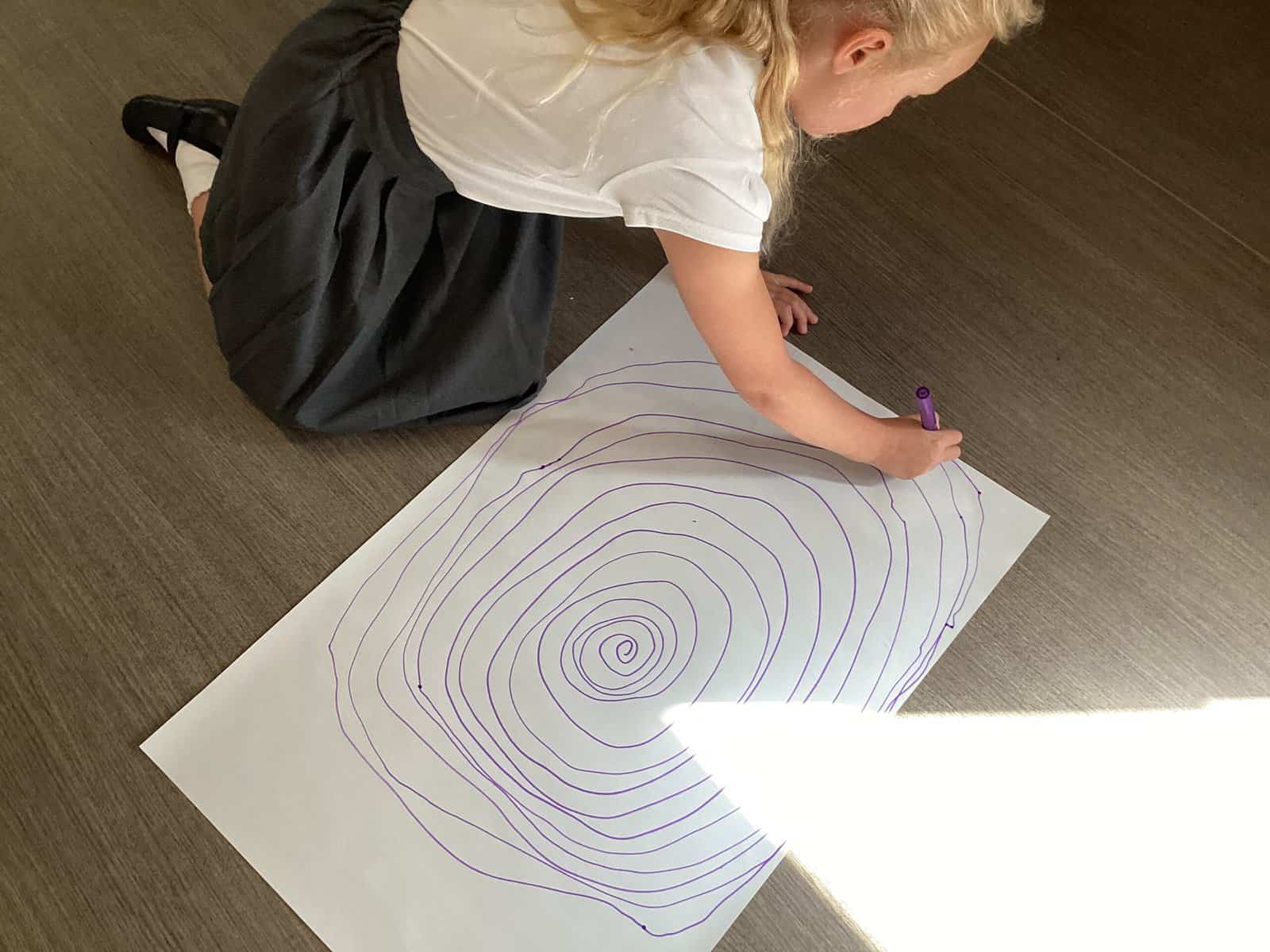 Today in Year 2 we started thinking about drawing. We practised drawing with our hands in sketchbooks, with our arms and moving our whole bodies! We looked at art by Molly Hausland who draws huge circles outdoors. We loved drawing spirals on our yard!