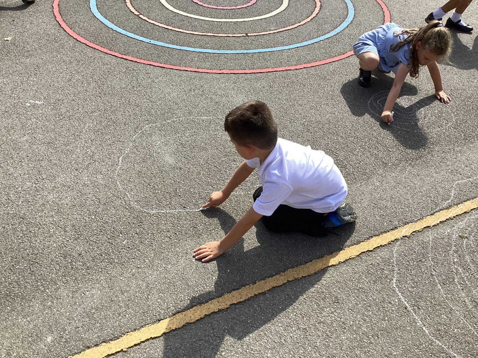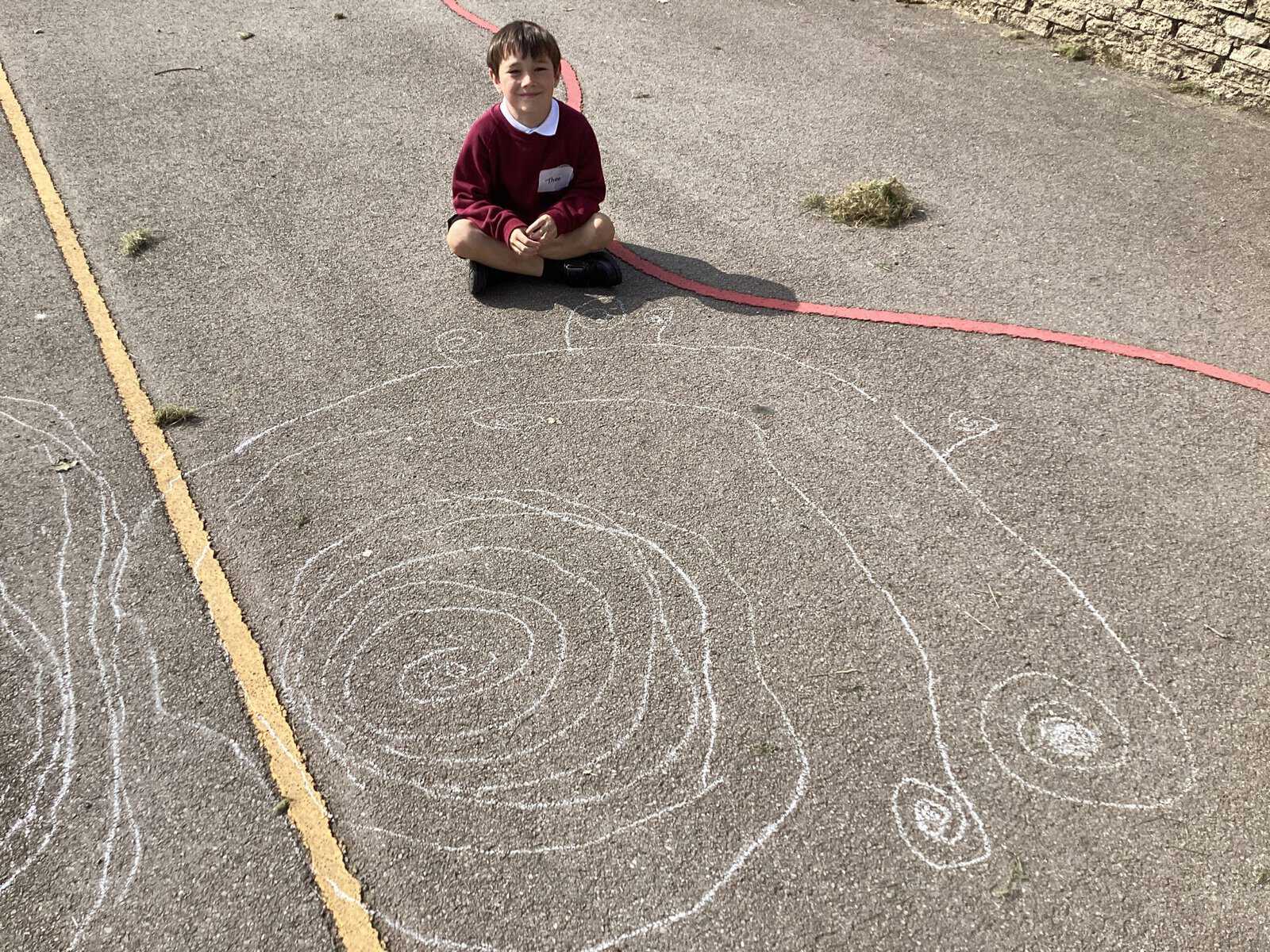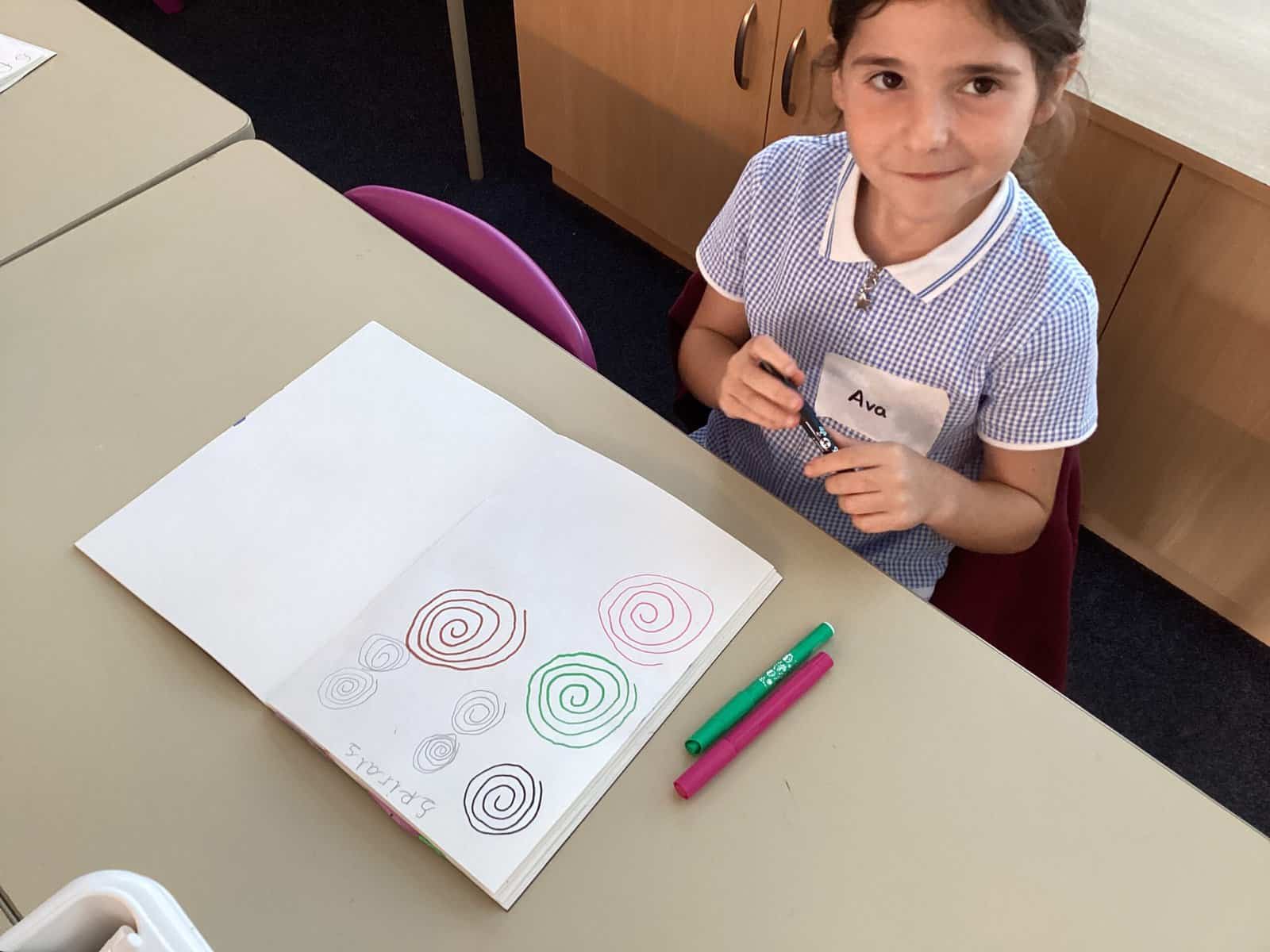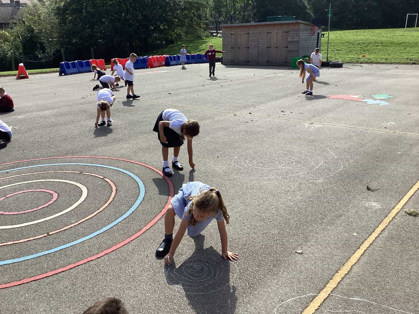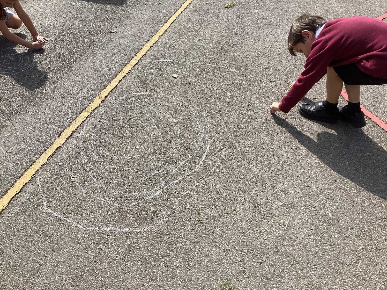 Today in Year 2 we started thinking about drawing. We practised drawing with our hands in sketchbooks, with our arms and moving our whole bodies! We looked at art by Molly Hausland who draws huge circles outdoors. We loved drawing spirals on our yard!