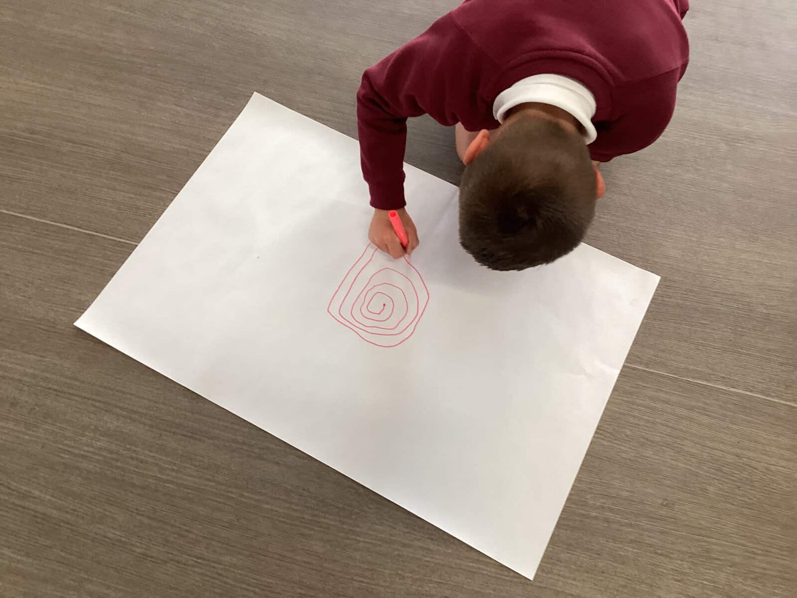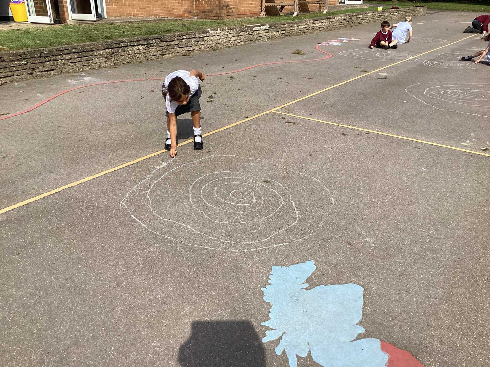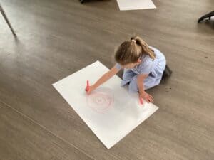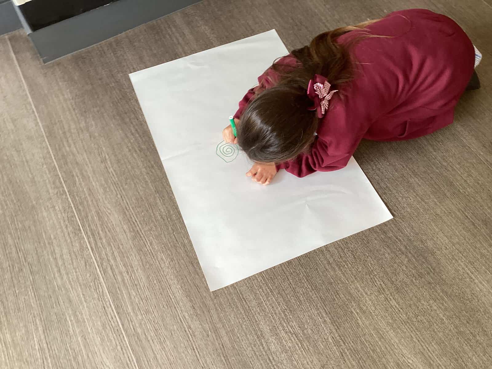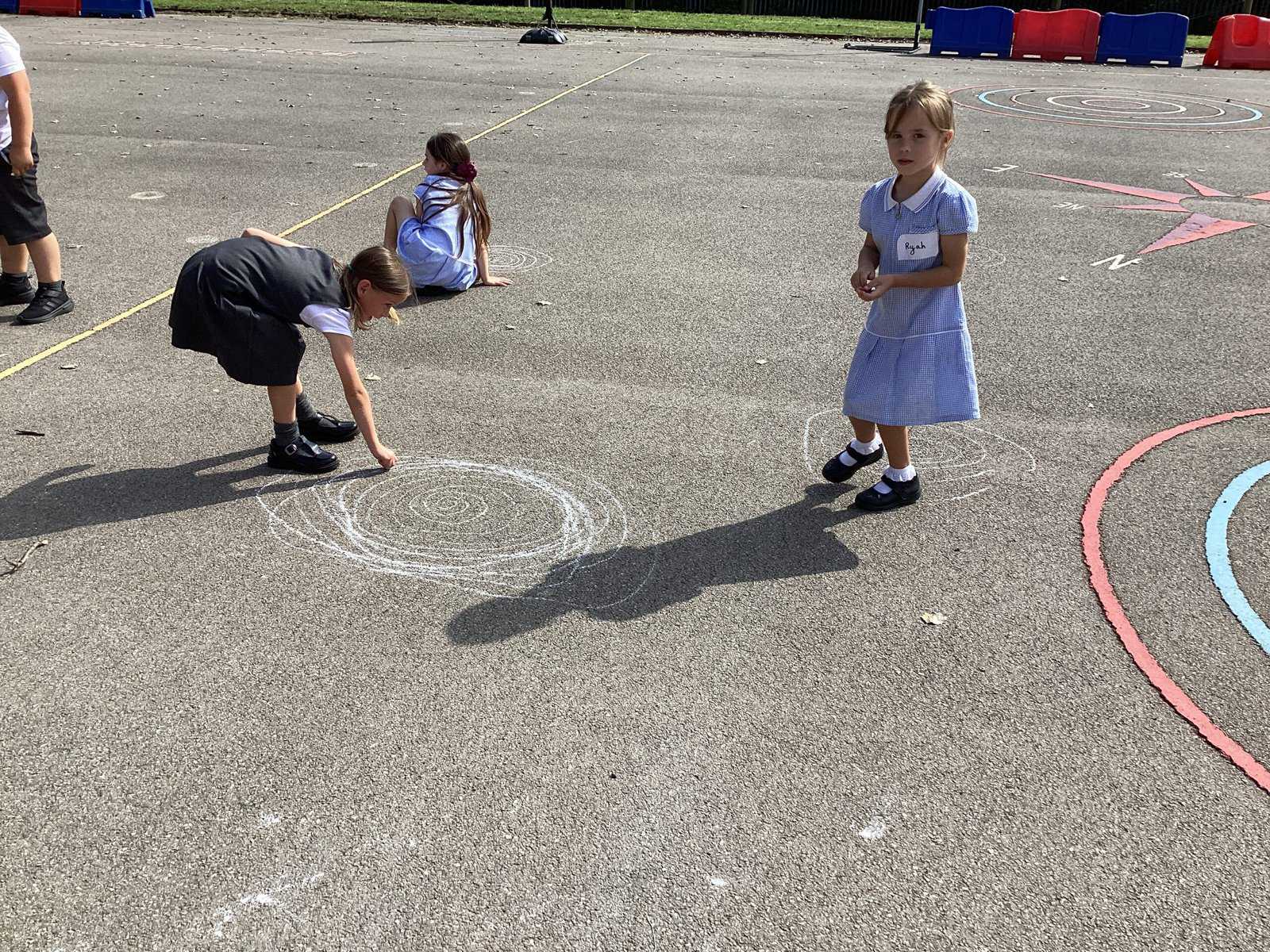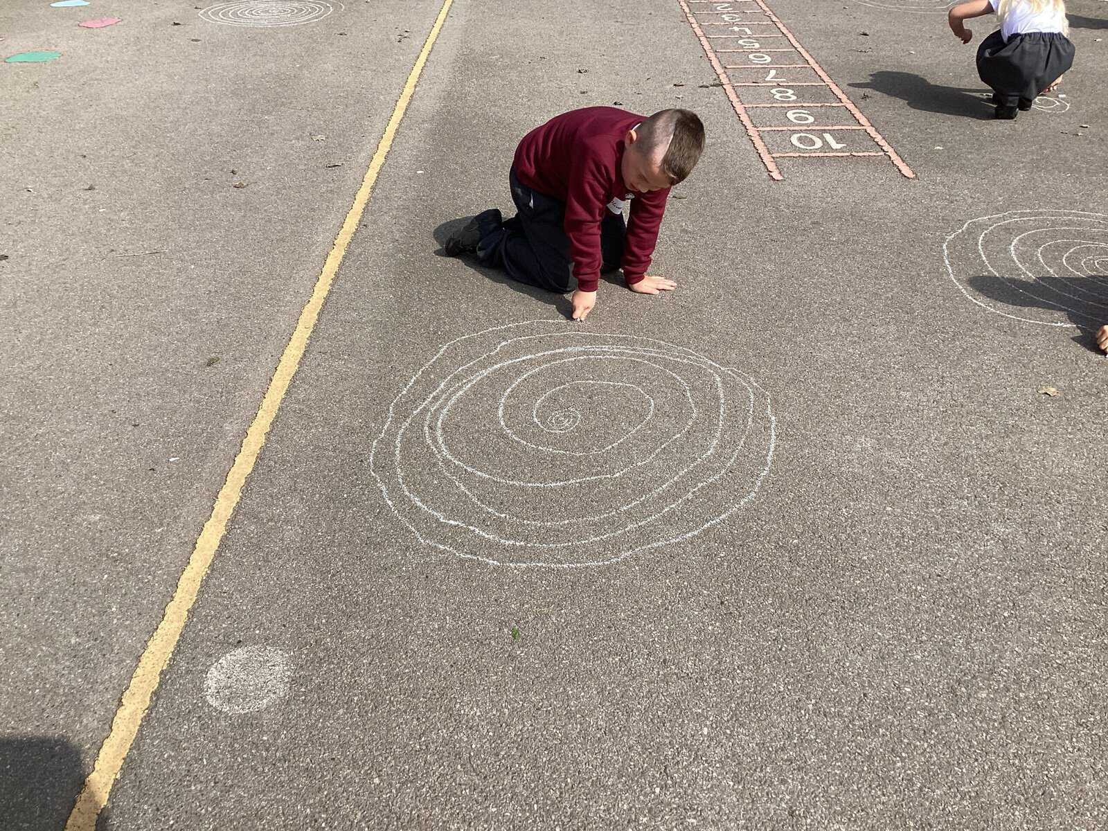 Today in Year 2 we started thinking about drawing. We practised drawing with our hands in sketchbooks, with our arms and moving our whole bodies! We looked at art by Molly Hausland who draws huge circles outdoors. We loved drawing spirals on our yard!