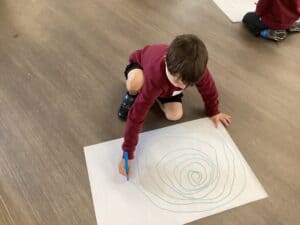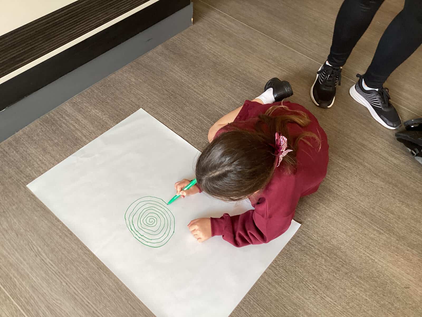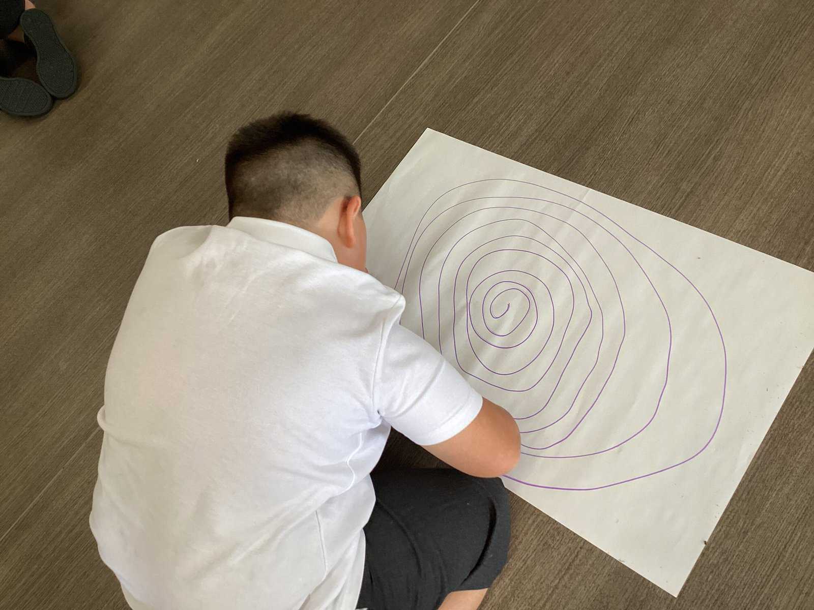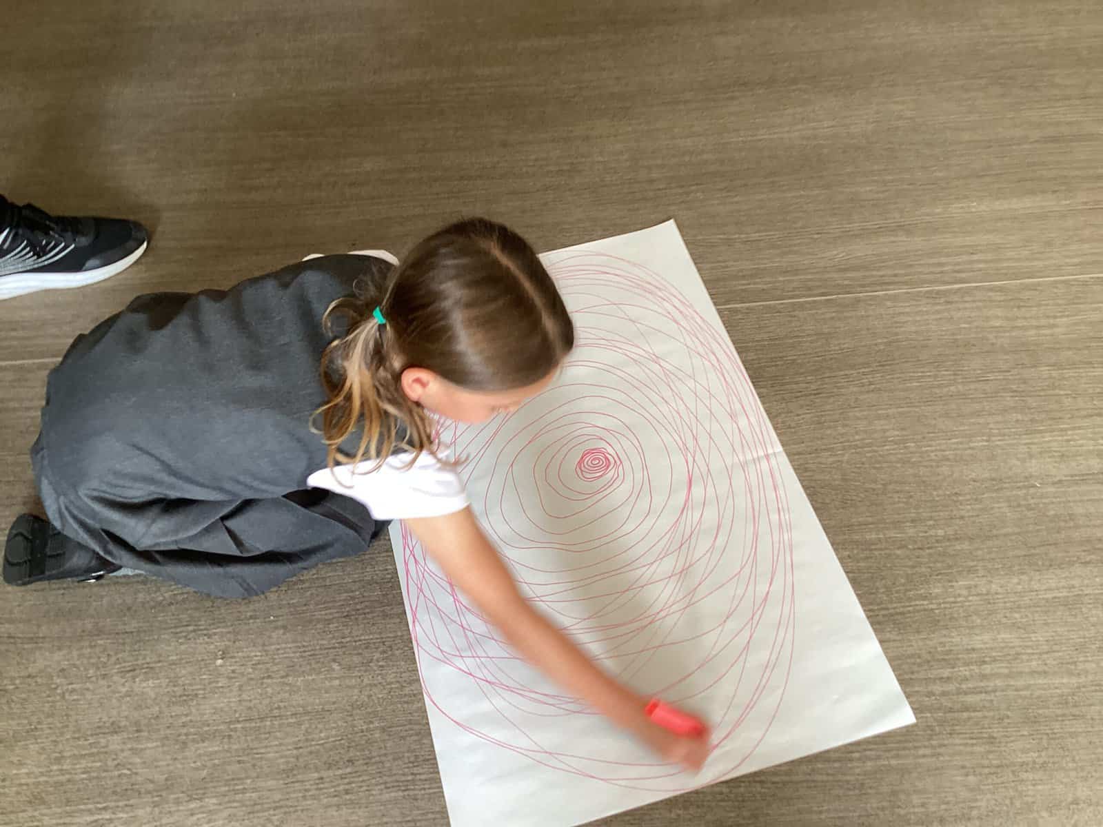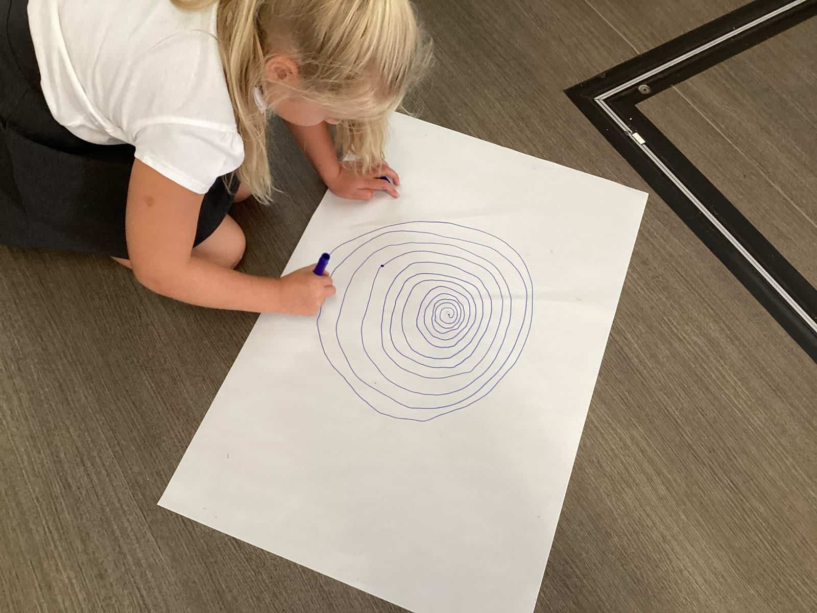 Today in Year 2 we started thinking about drawing. We practised drawing with our hands in sketchbooks, with our arms and moving our whole bodies! We looked at art by Molly Hausland who draws huge circles outdoors. We loved drawing spirals on our yard!