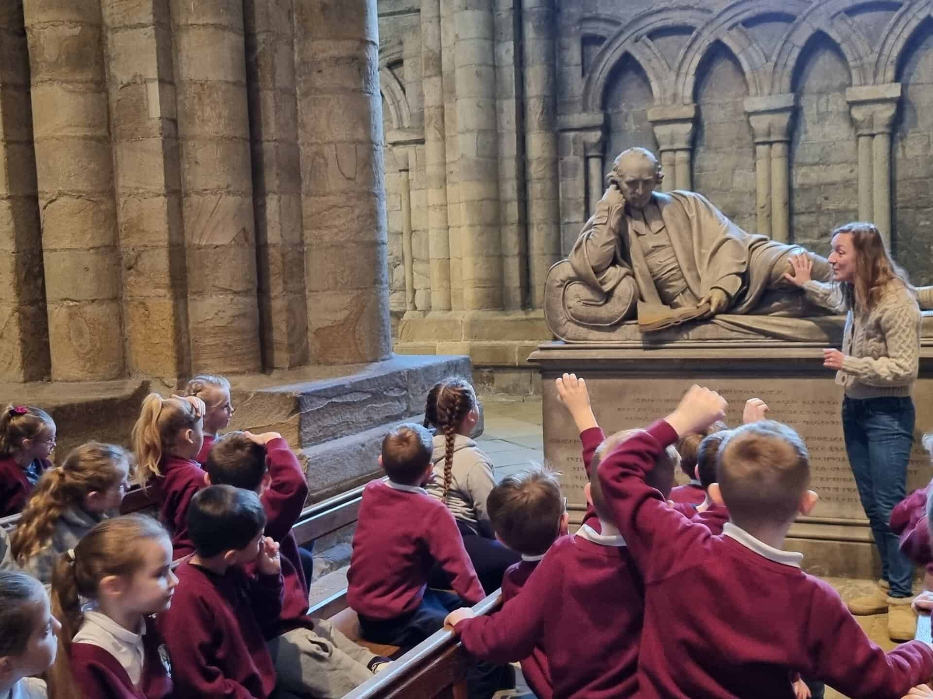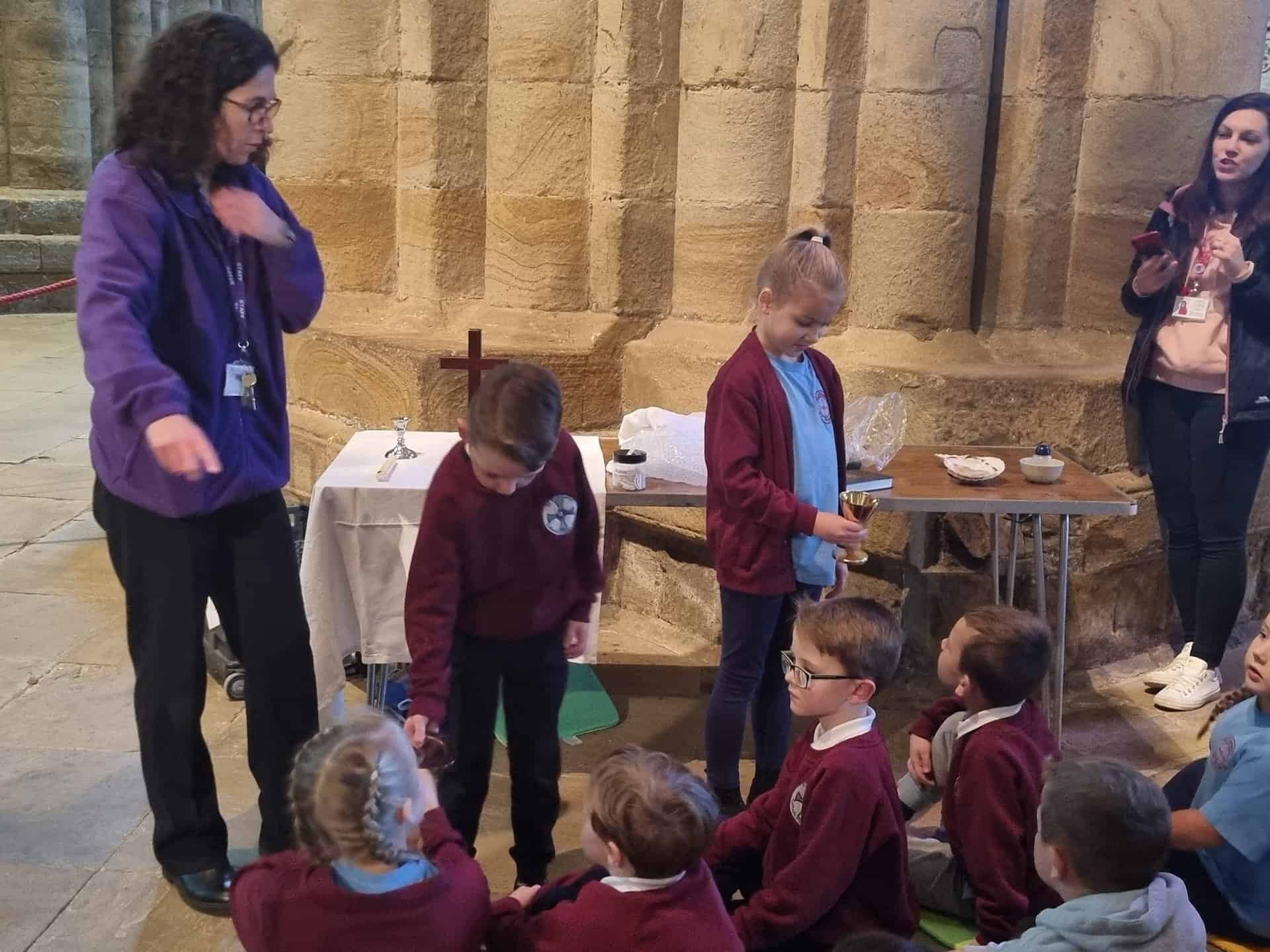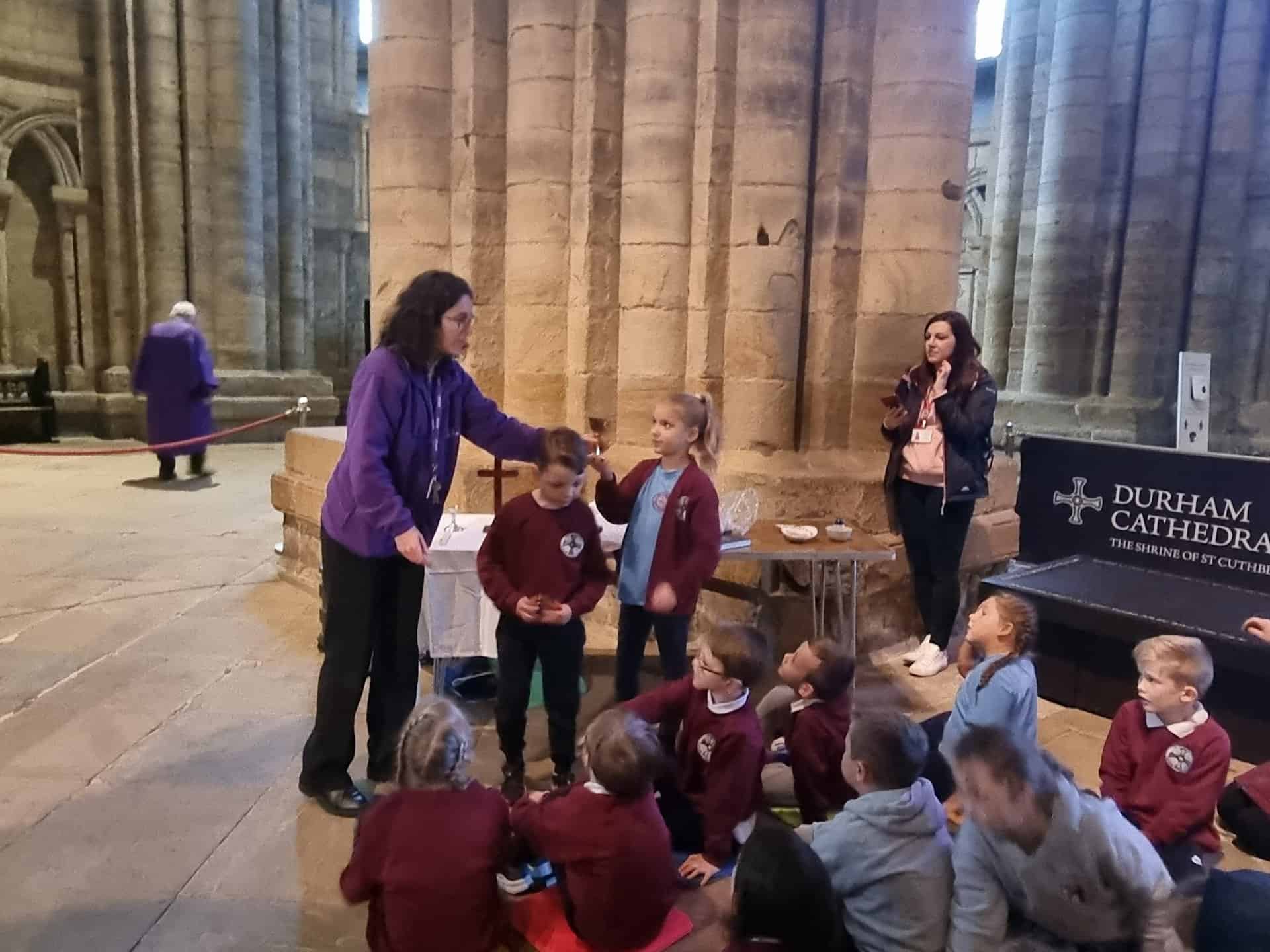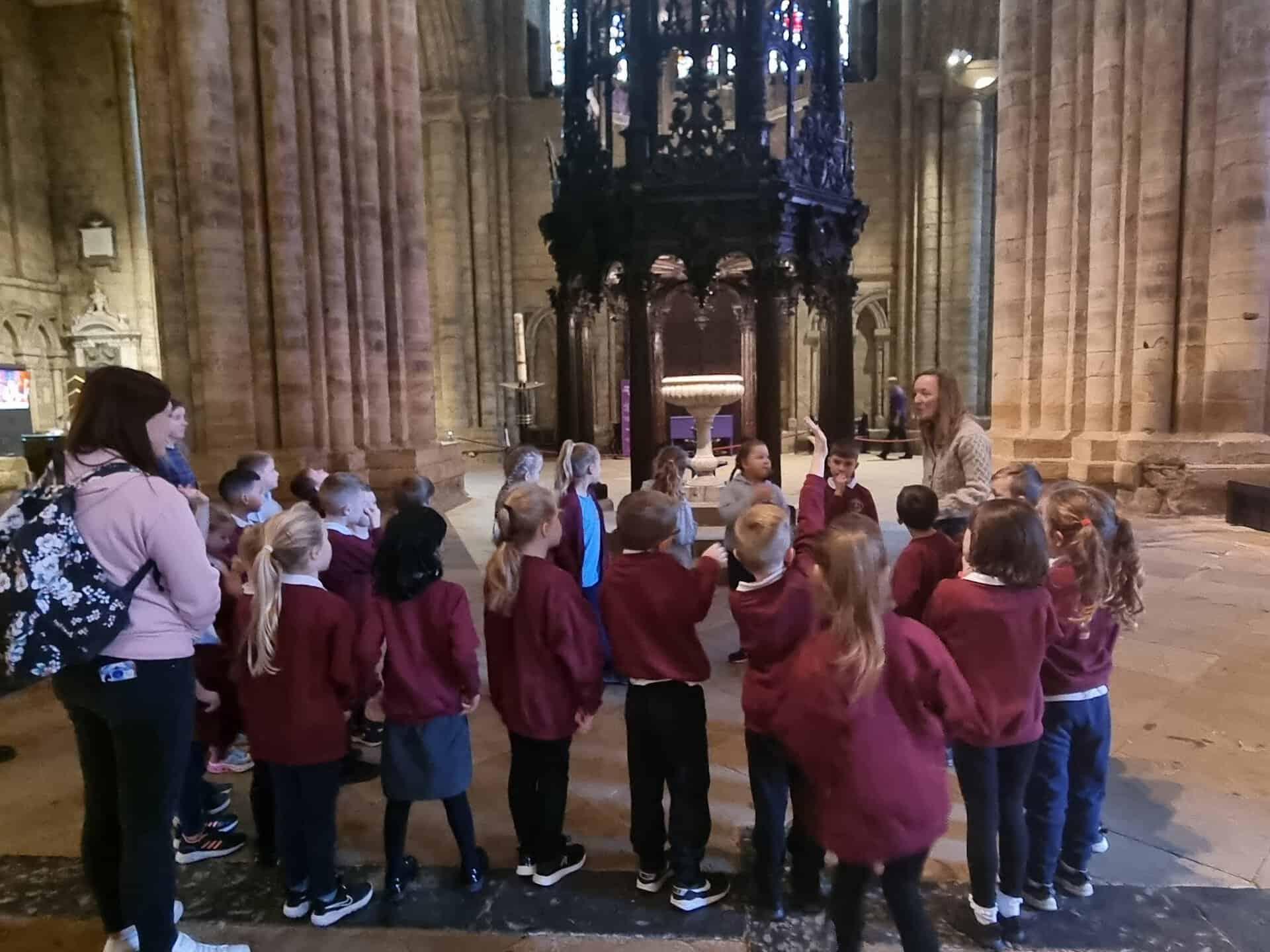 Yesterday, as part of out History topic, we visited Durham Cathedral. We learnt all about why the cathedral is a special place. We also learnt a little about the history of the cathedral. Did you know that it was once a prison? We visited the shrine of St. Cuthbert and then enjoyed the story of Cuthbert through drama. We really enjoyed dressing up!