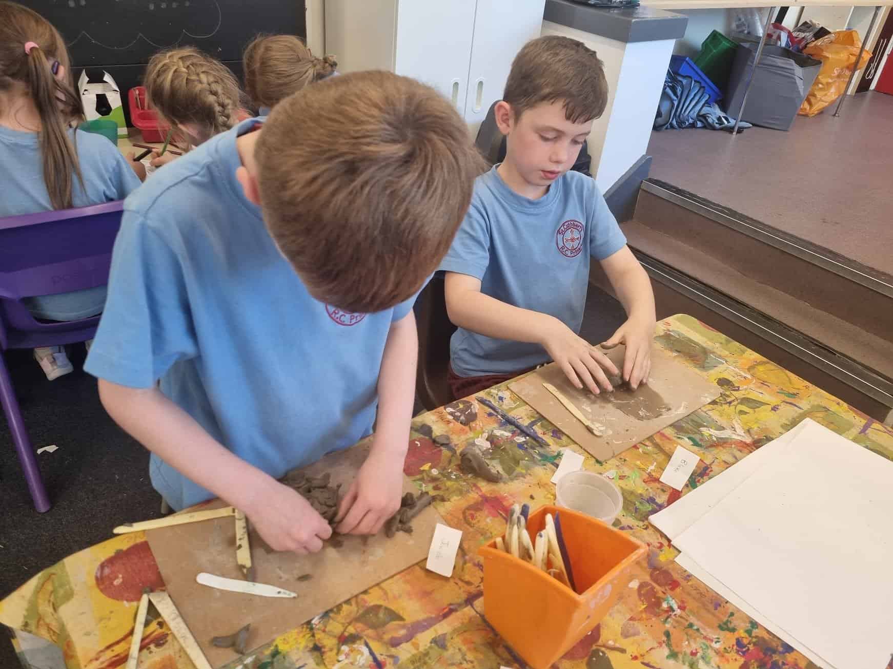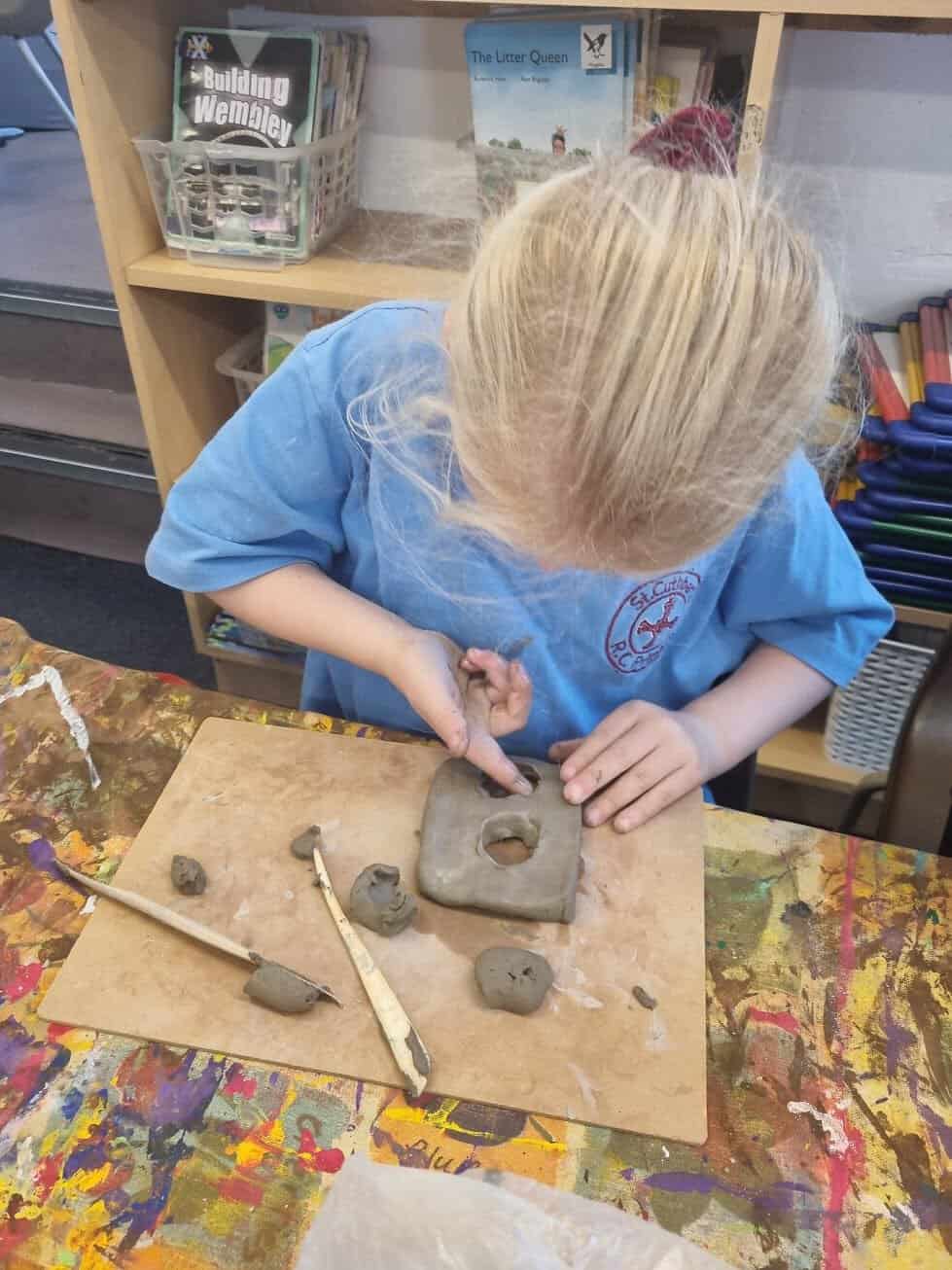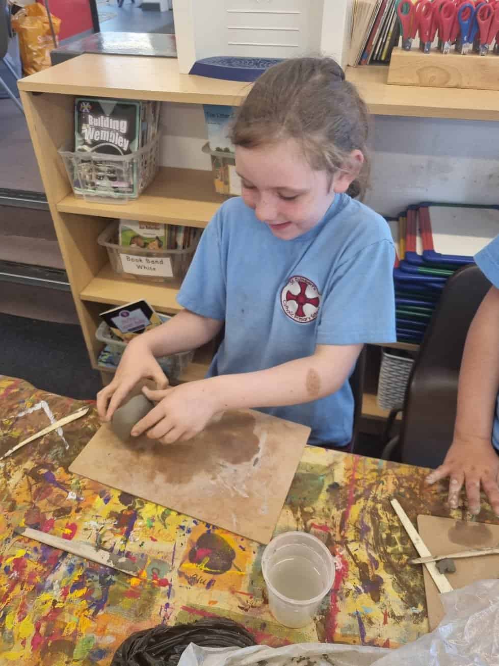 Today, we have been exploring sculptures with ‘inside’ and ‘outside’ spaces. We looked at sculptures by the sculptor Barbara Hepworth. We then used clay to sculpt our own sculptures with inside and outside spaces. We can’t wait to paint them next week!