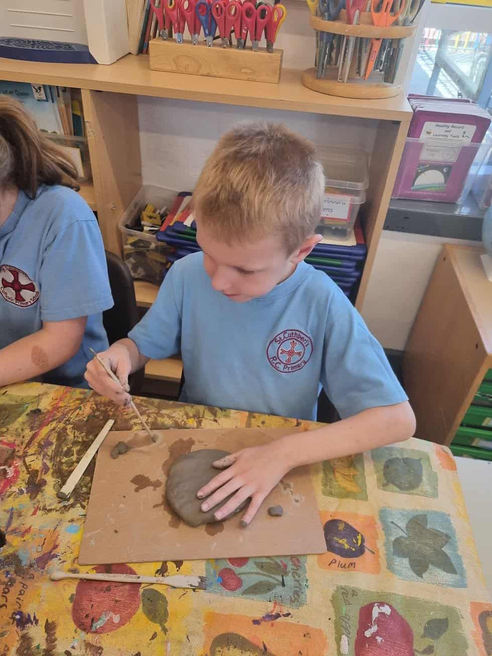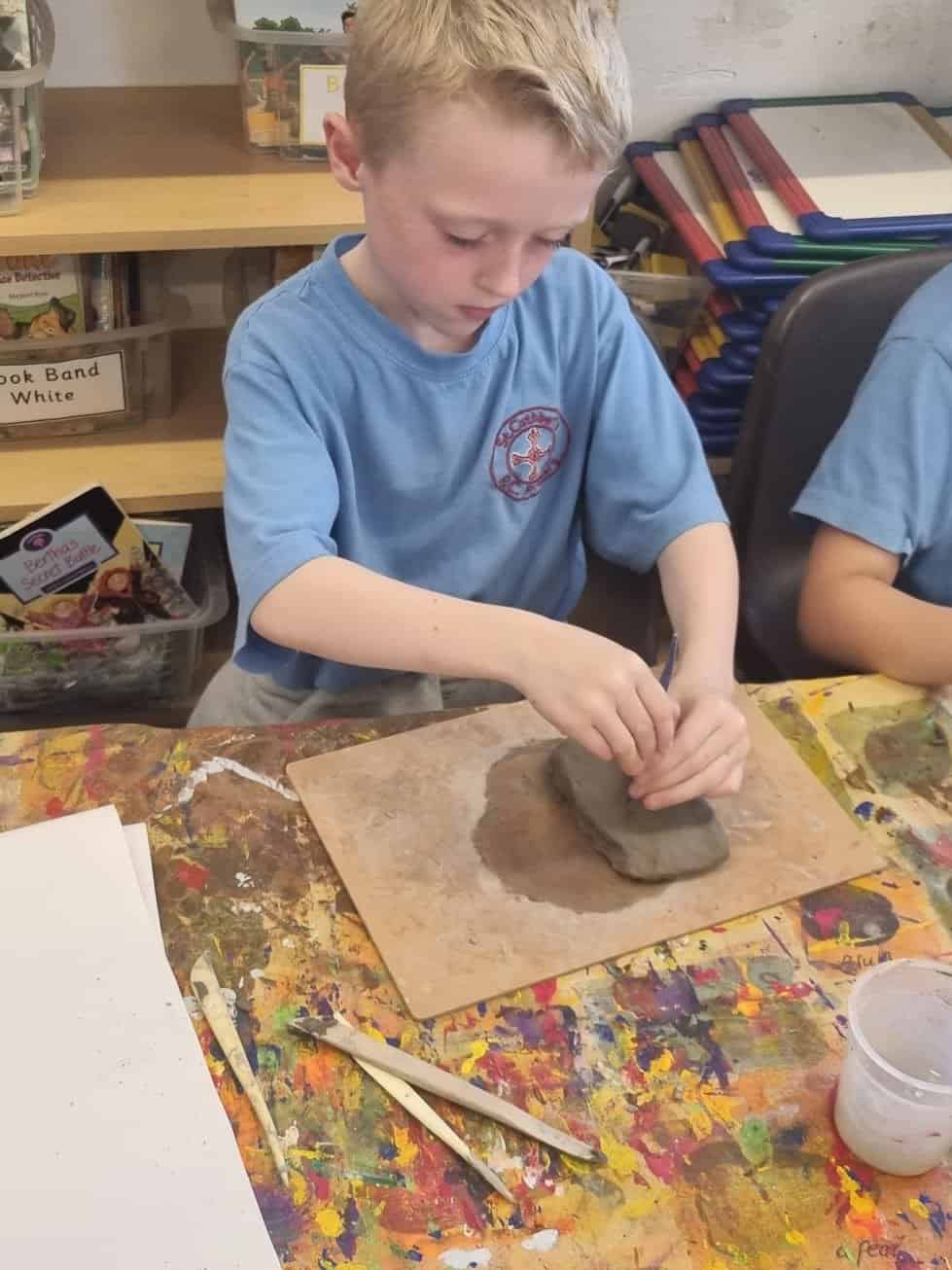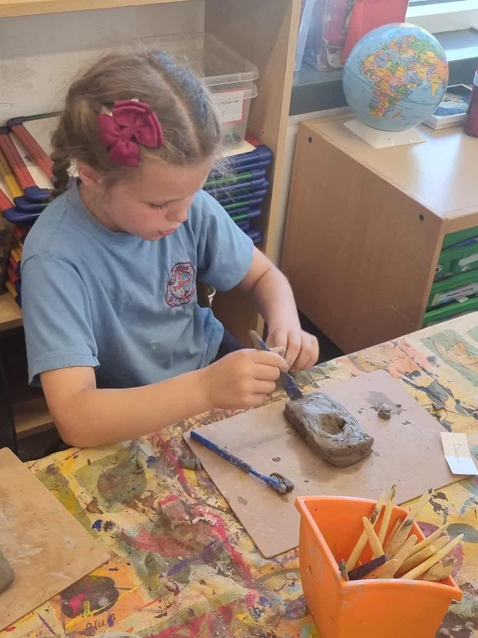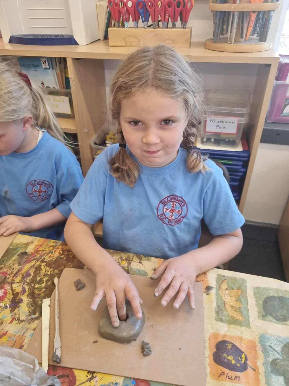 Today, we have been exploring sculptures with ‘inside’ and ‘outside’ spaces. We looked at sculptures by the sculptor Barbara Hepworth. We then used clay to sculpt our own sculptures with inside and outside spaces. We can’t wait to paint them next week!