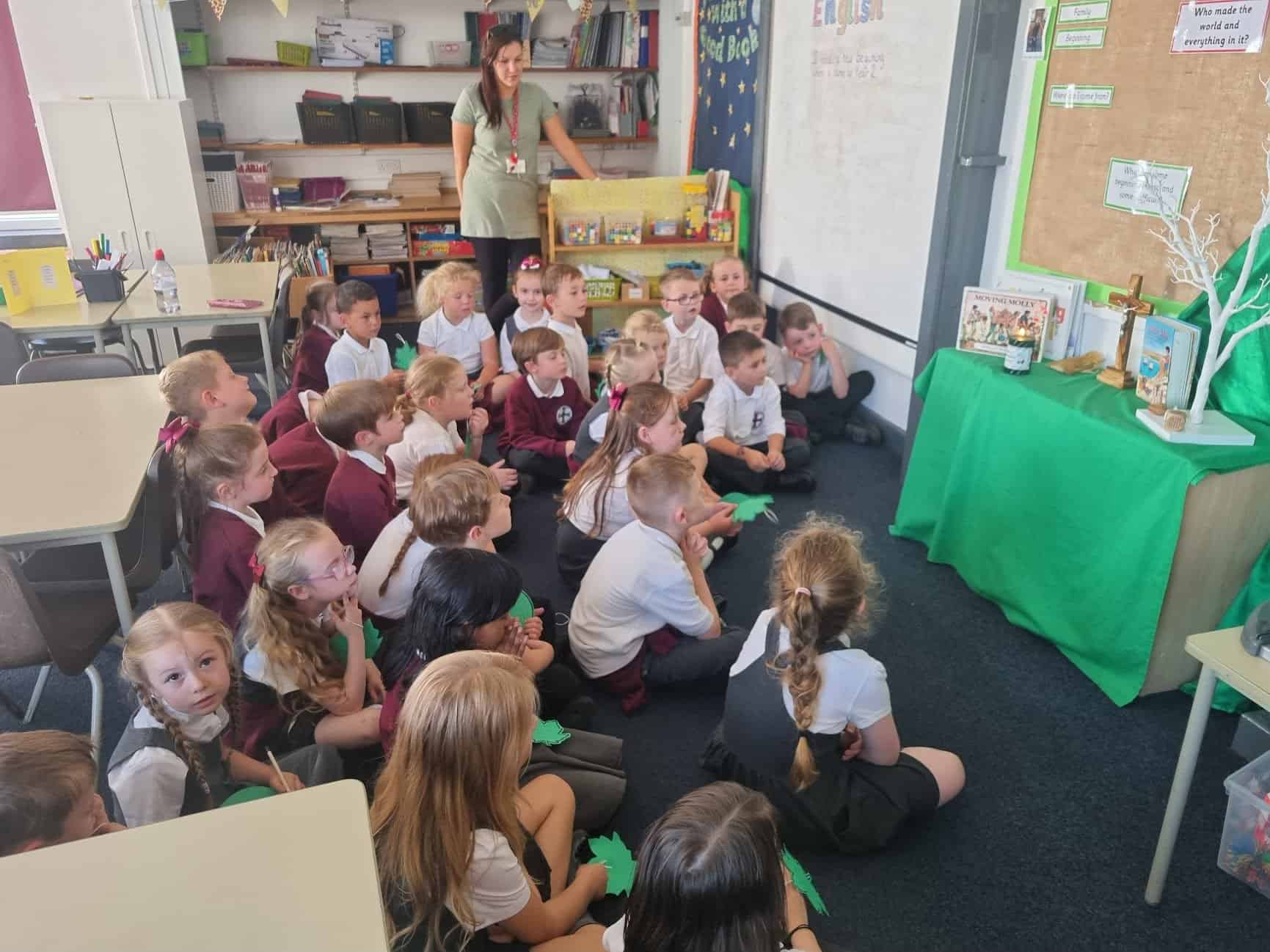 We have just began our new RE topic all about beginnings. We read Starting School by Janet and Allan Ahlberg. We then talked about the new starts that we have had in our lives so far. We discussed how people feel when they are about to begin something new and identified feelings about beginnings.