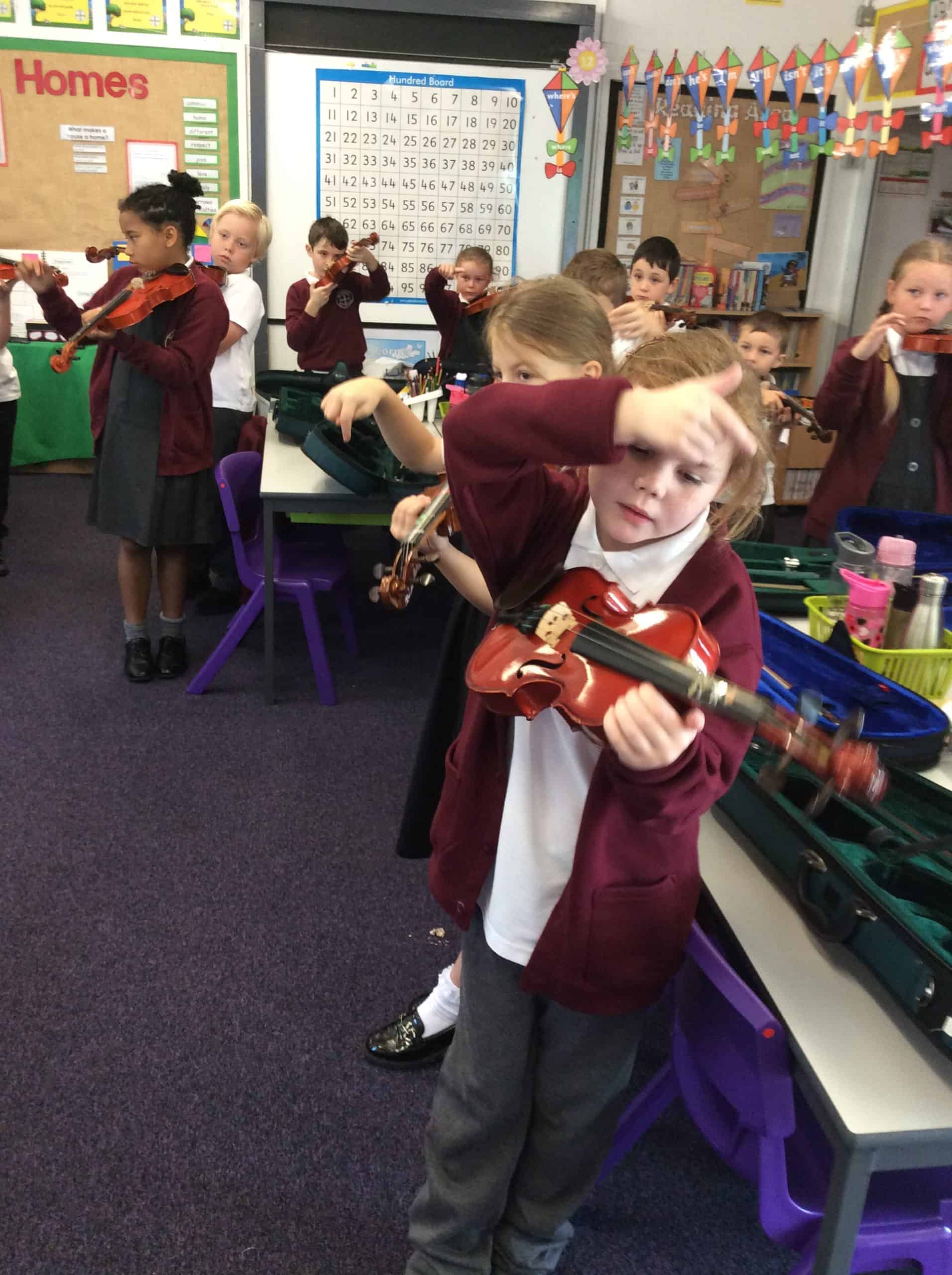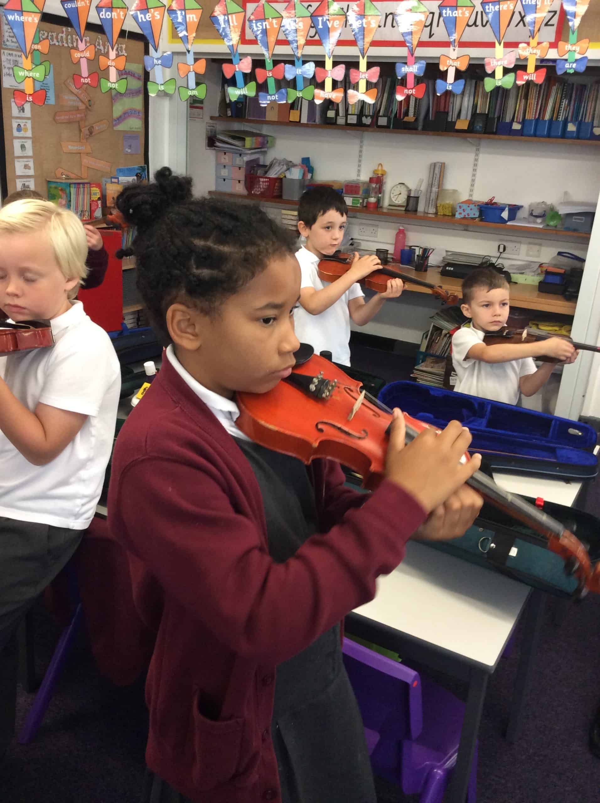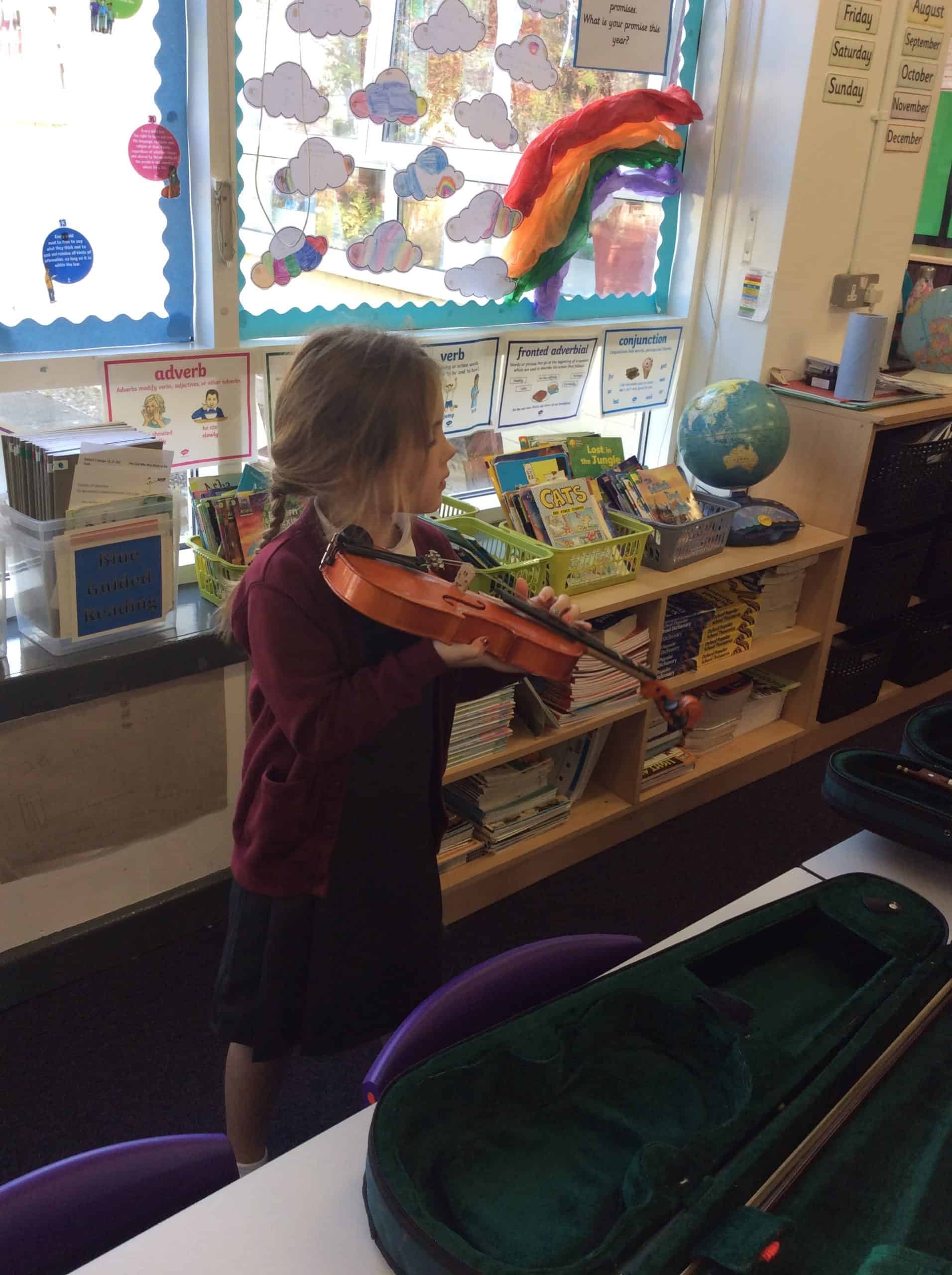 Mrs Sellers is amazing! She showed us the different parts of the violin before showing us how to hold it correctly. Once we mastered that, we got the chance to play. At the moment we are just learning to play using our fingers. We practised using the G string and counting in beats of 4. We can’t wait for next week.