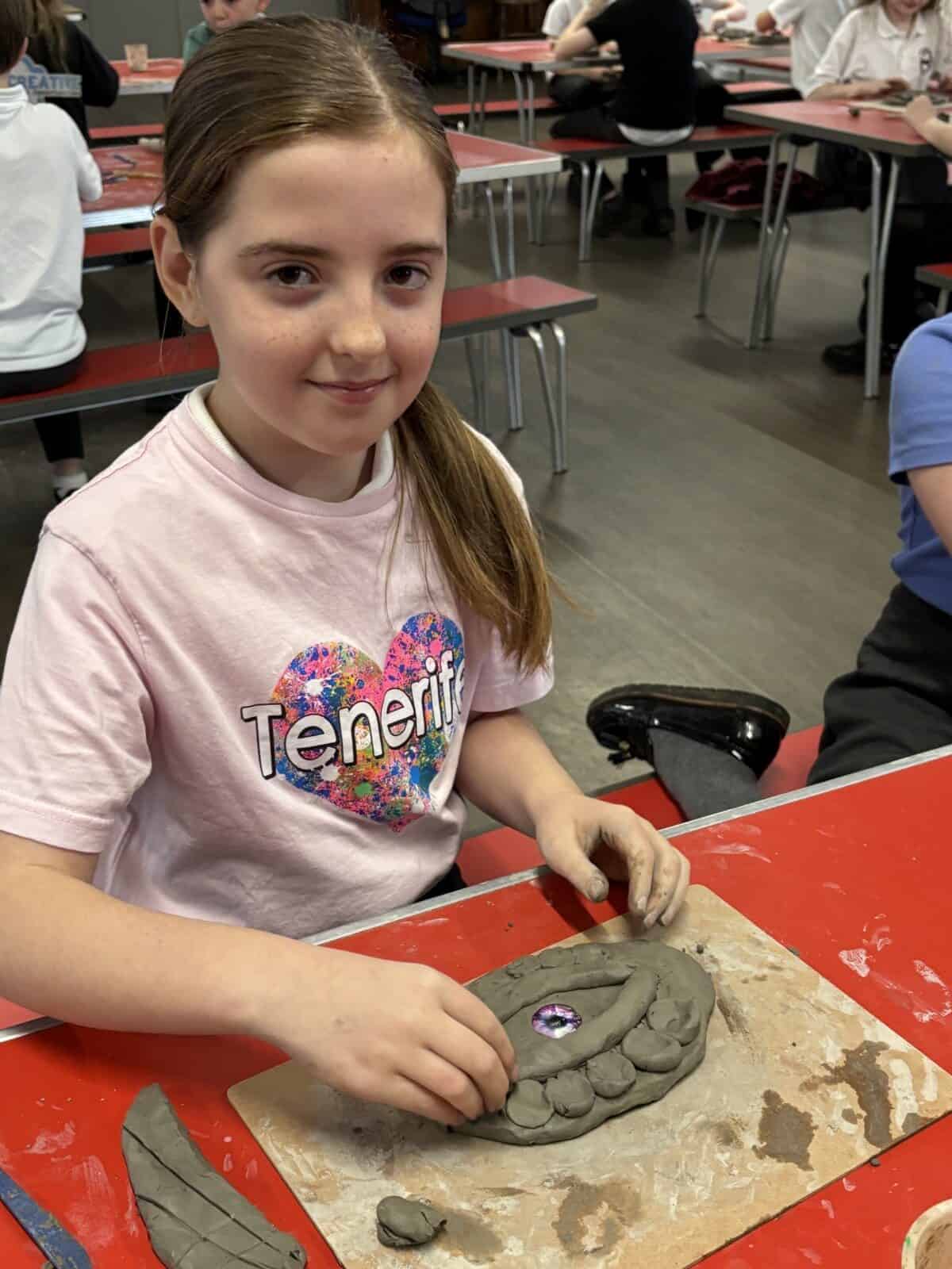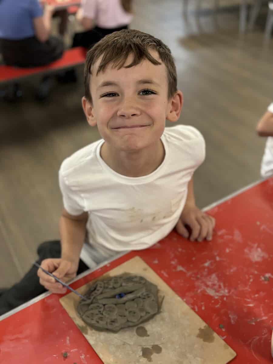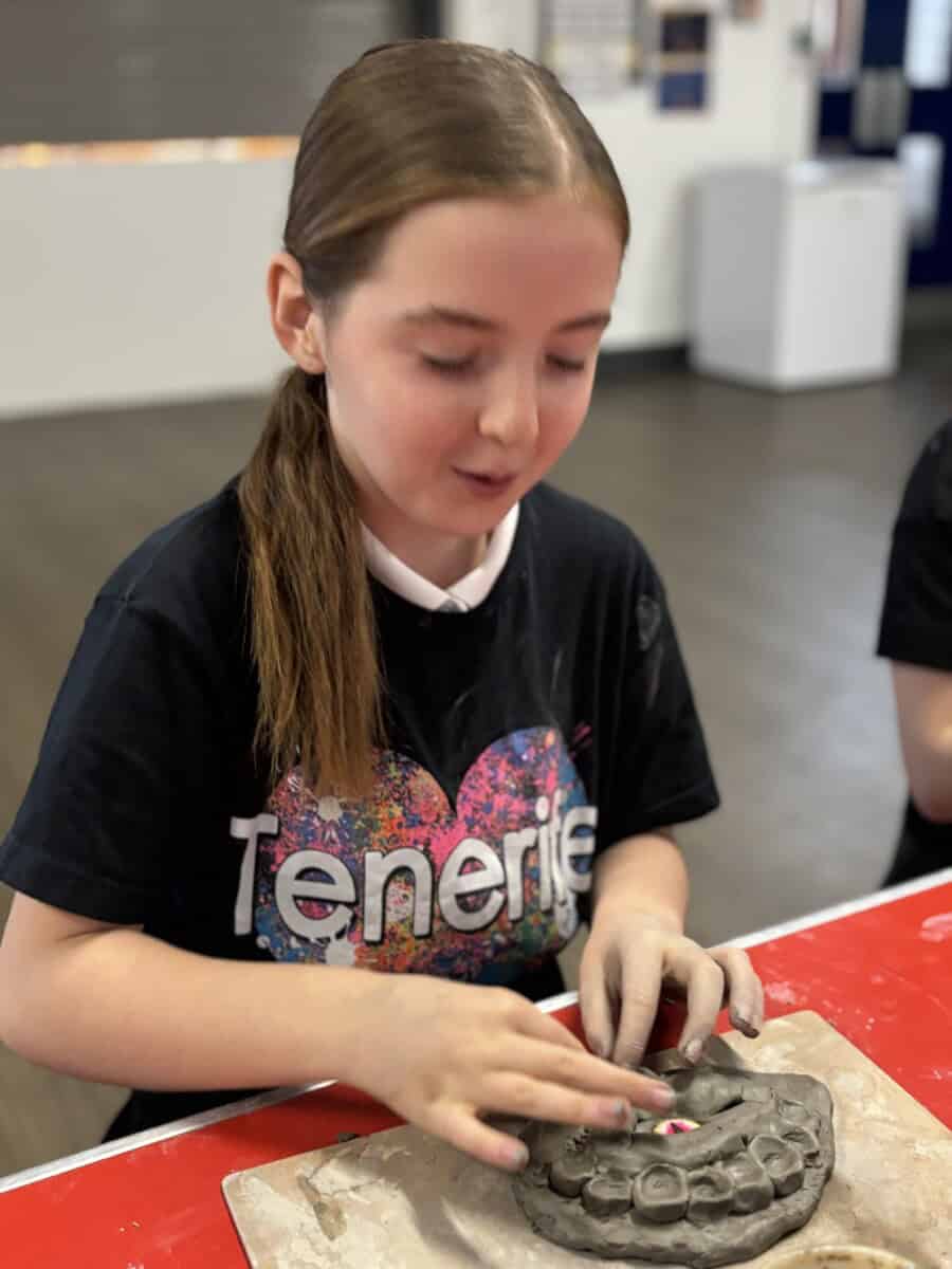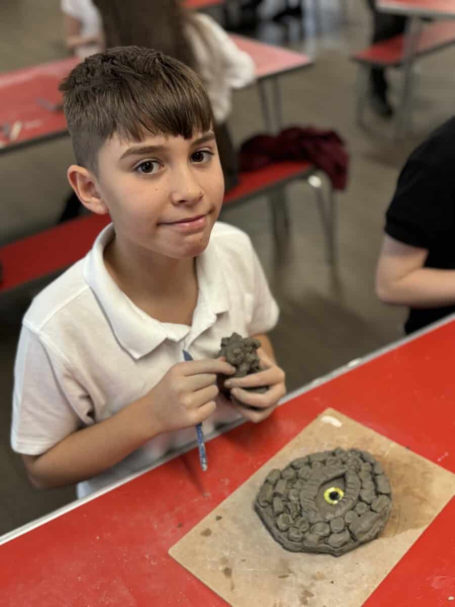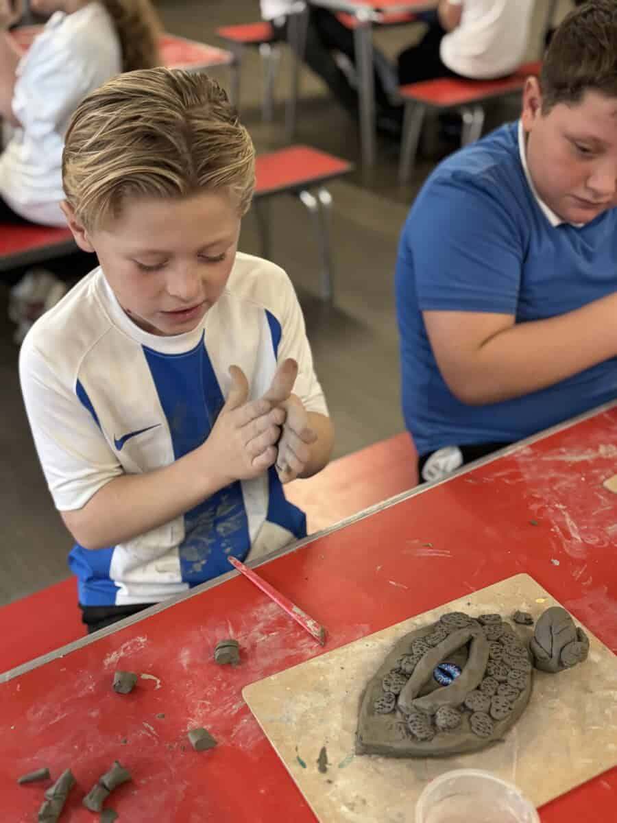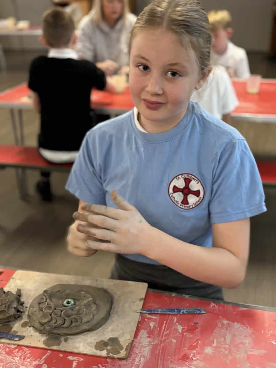 In art this term, Y5 have been looking at eyes. We completed some observational drawing of human and animal eyes and tried different media and techniques to add colour. For our final piece, we used clay to create dragon eyes. Using clay tools, we designed and made some scales and features to add to the eye shape. We got very messy and enjoyed trying new things with the clay.