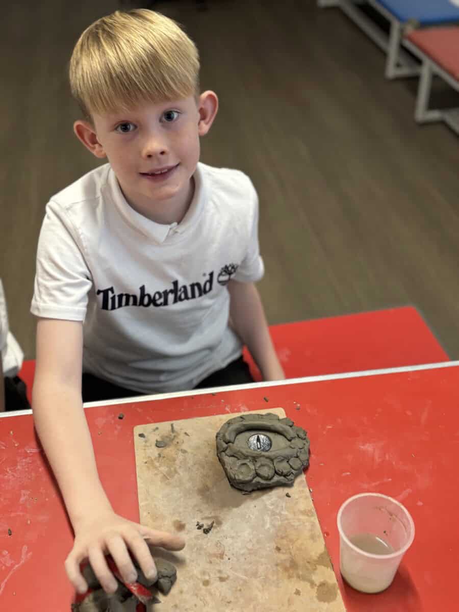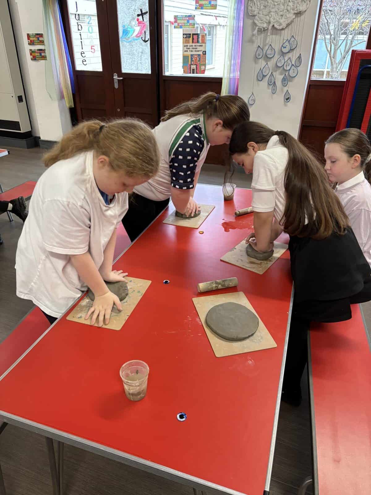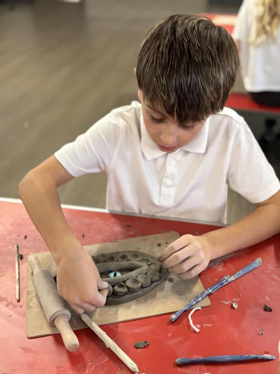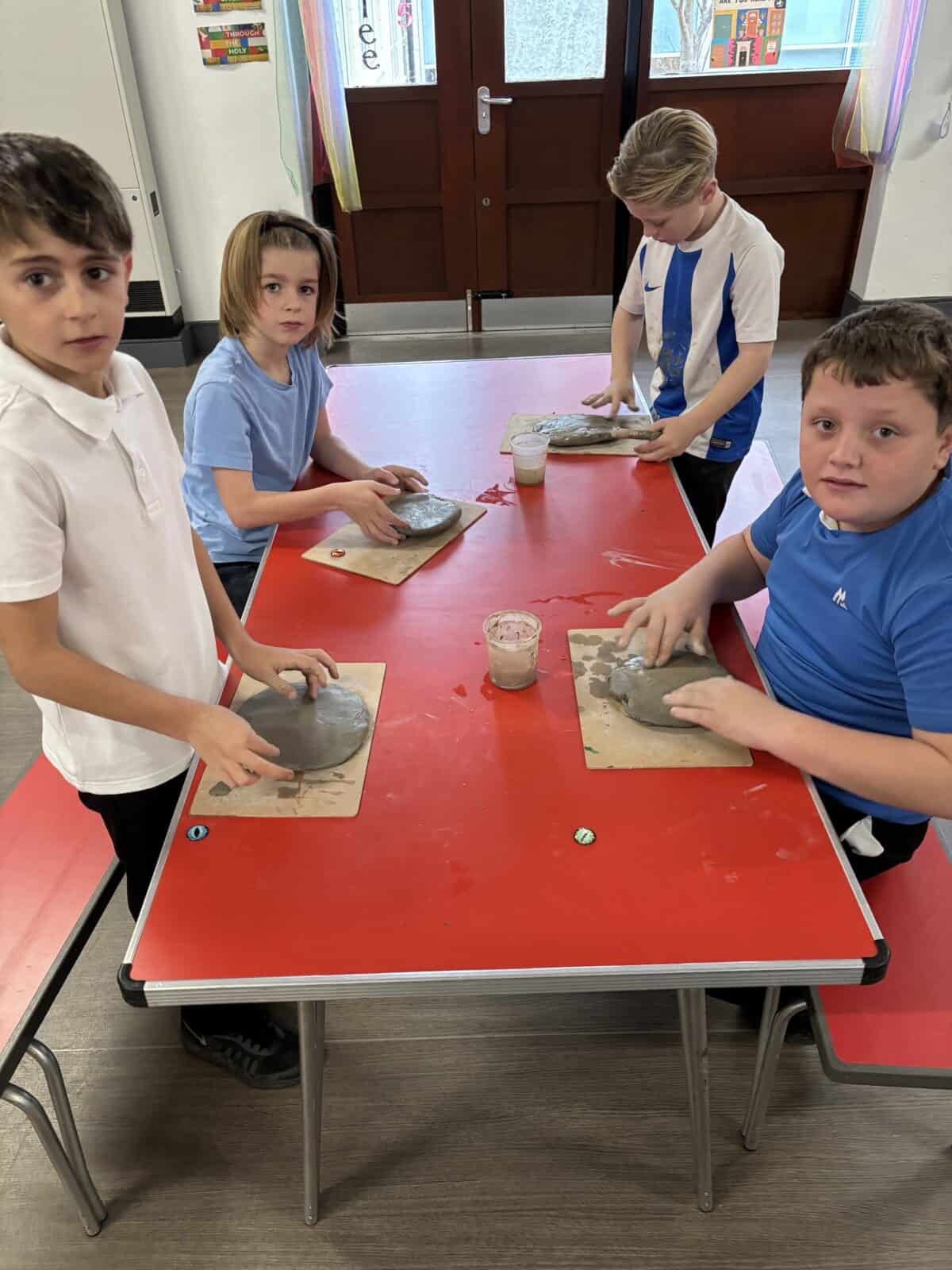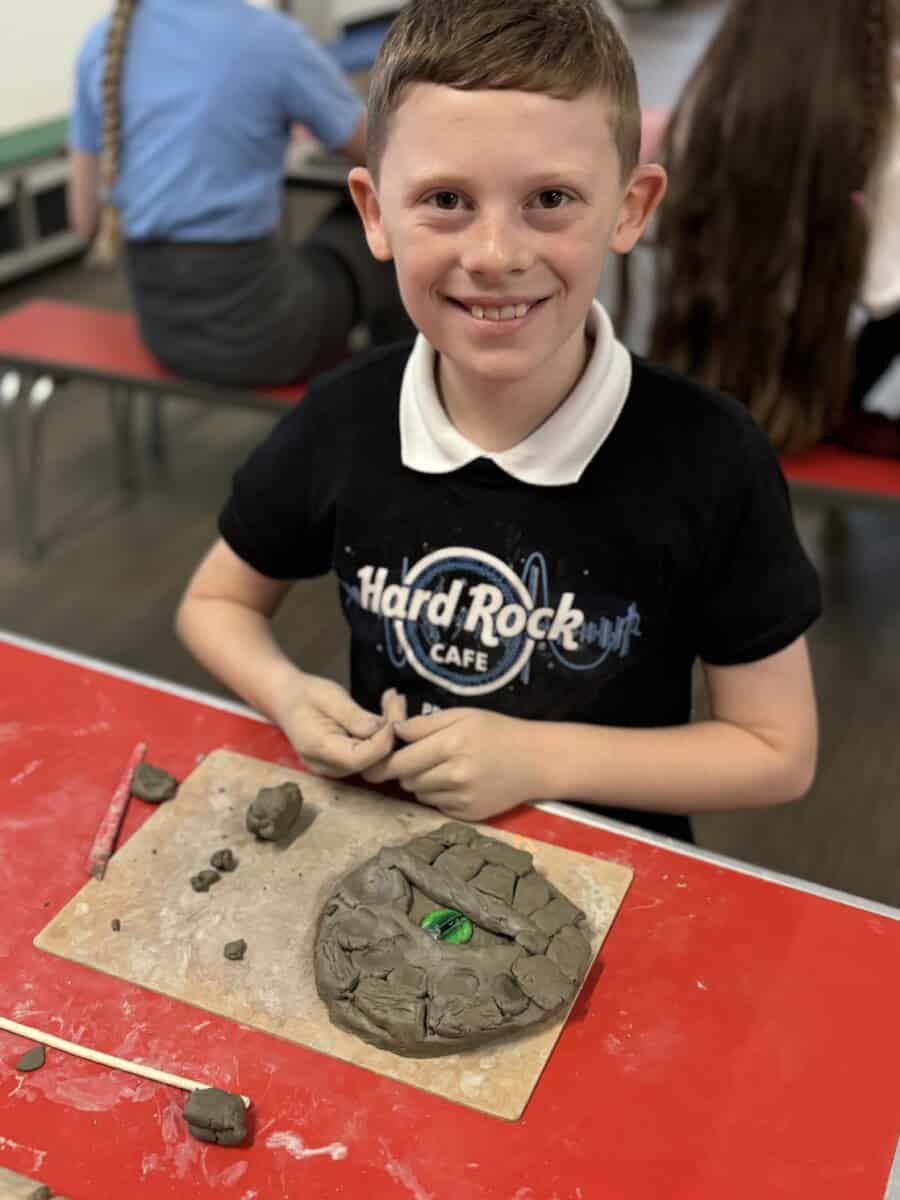 In art this term, Y5 have been looking at eyes. We completed some observational drawing of human and animal eyes and tried different media and techniques to add colour. For our final piece, we used clay to create dragon eyes. Using clay tools, we designed and made some scales and features to add to the eye shape. We got very messy and enjoyed trying new things with the clay.