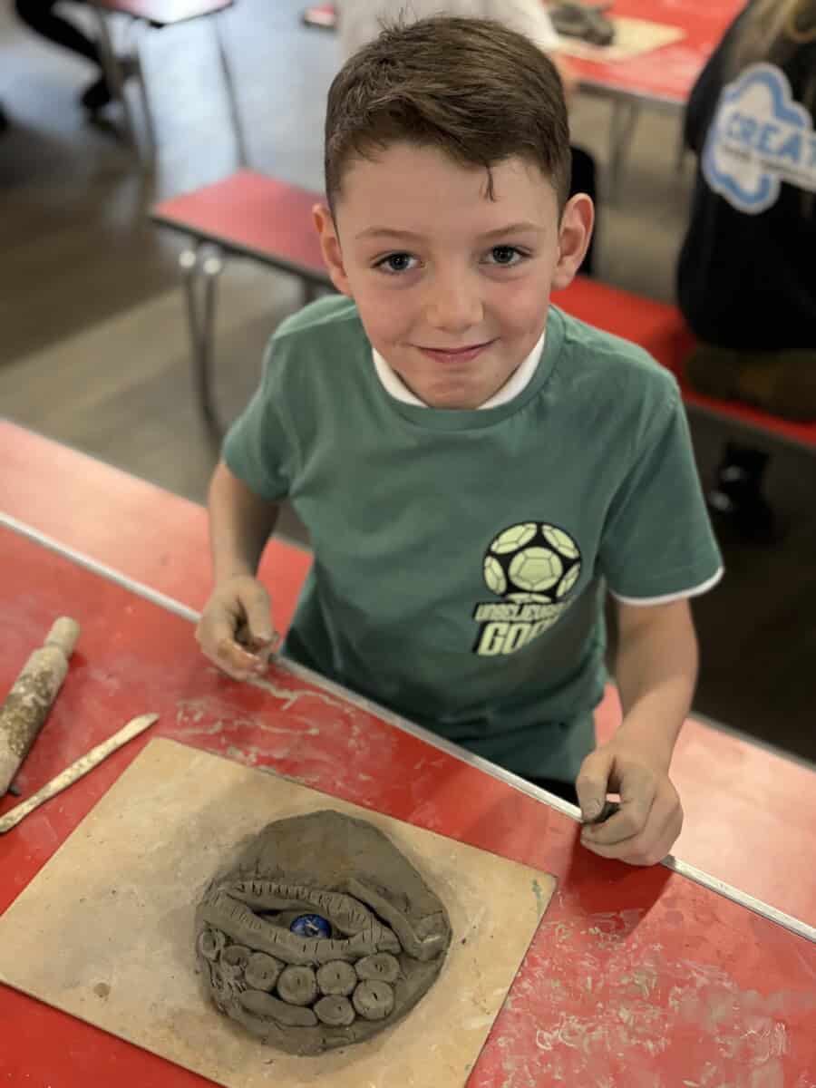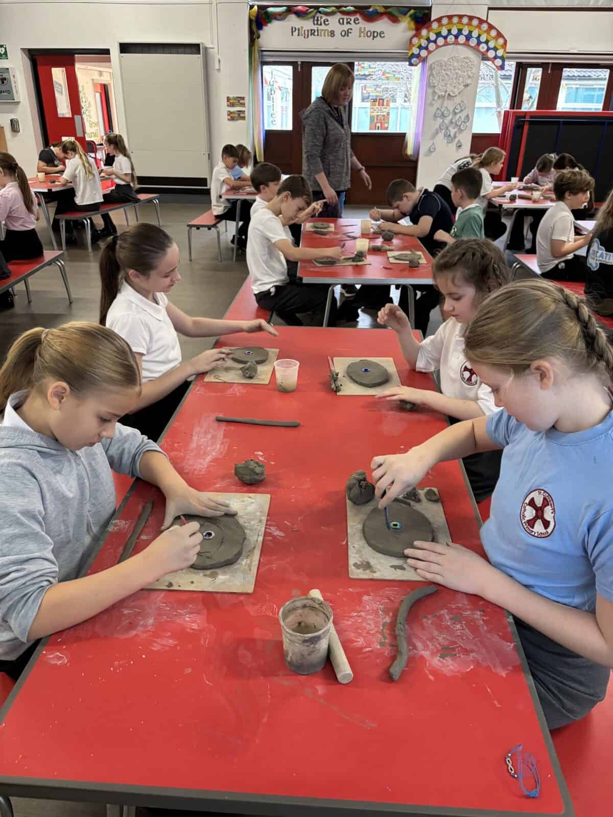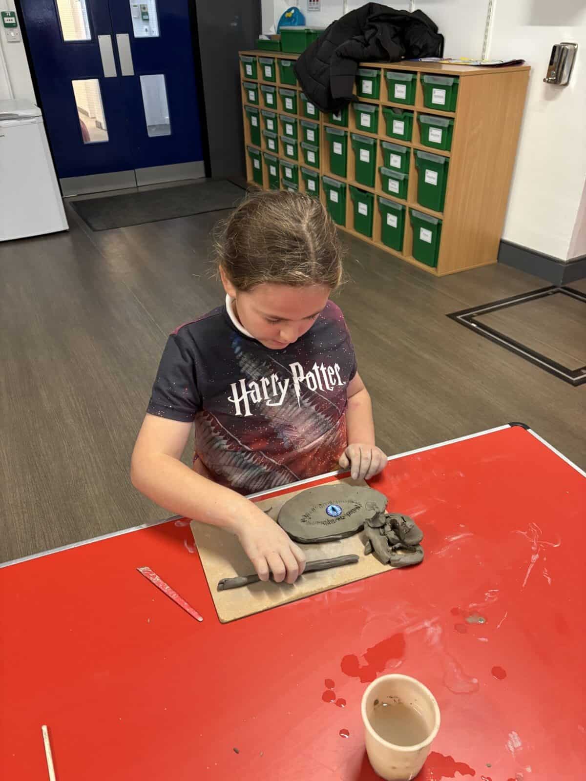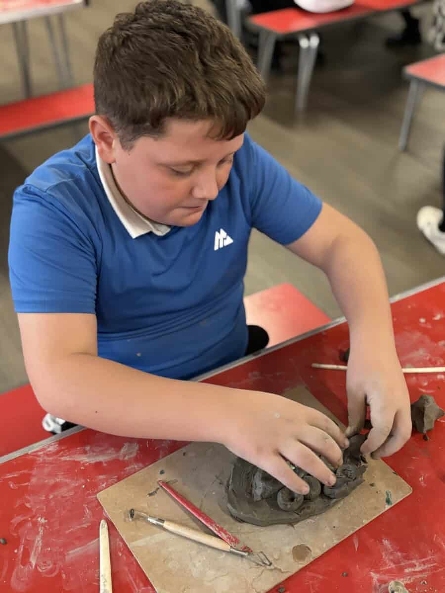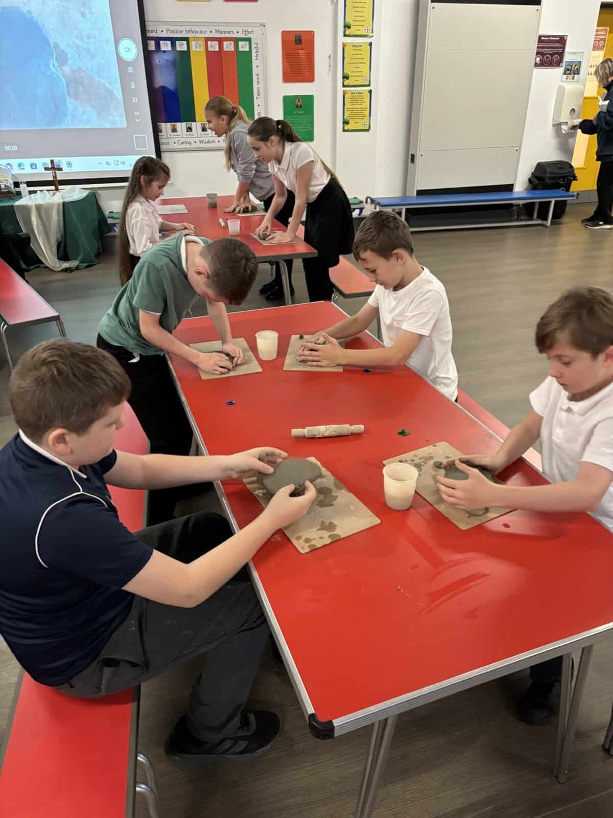 In art this term, Y5 have been looking at eyes. We completed some observational drawing of human and animal eyes and tried different media and techniques to add colour. For our final piece, we used clay to create dragon eyes. Using clay tools, we designed and made some scales and features to add to the eye shape. We got very messy and enjoyed trying new things with the clay.