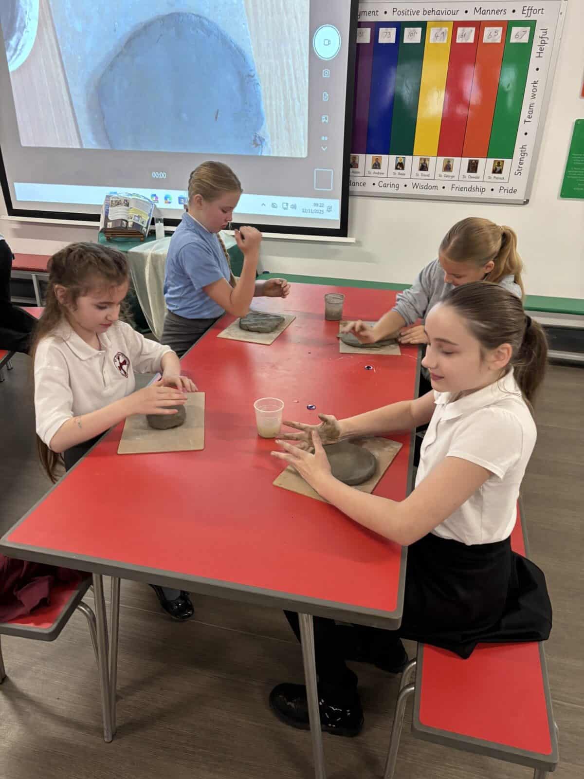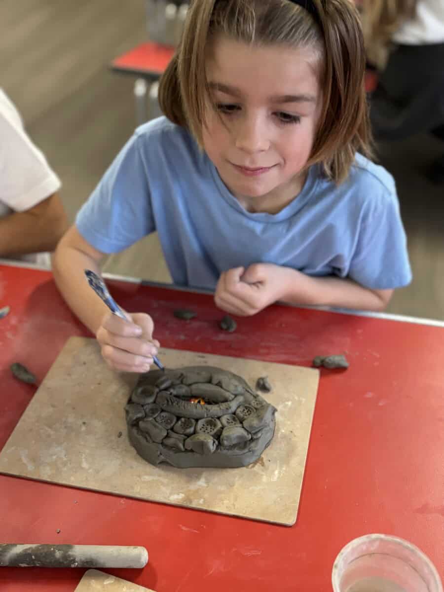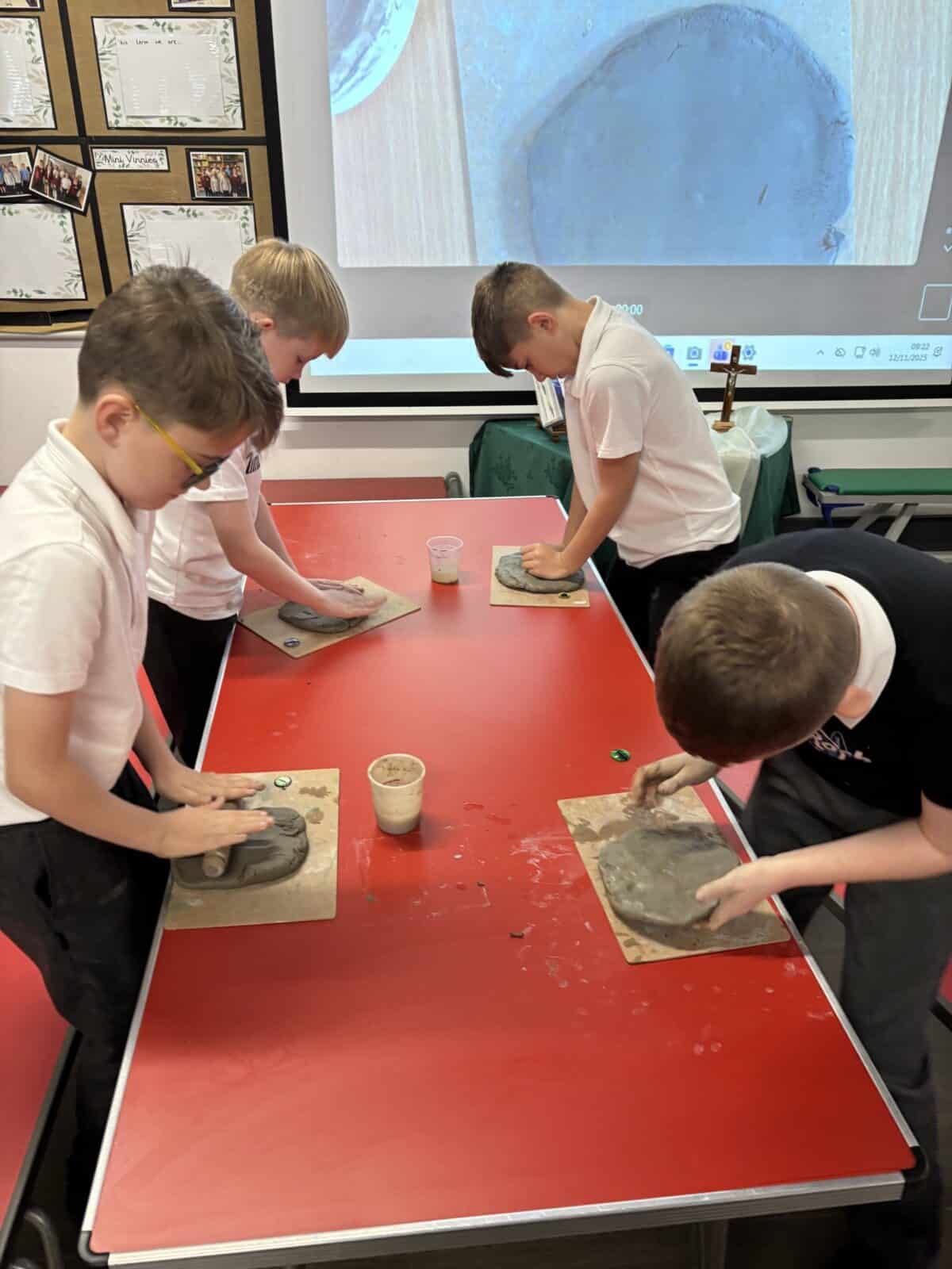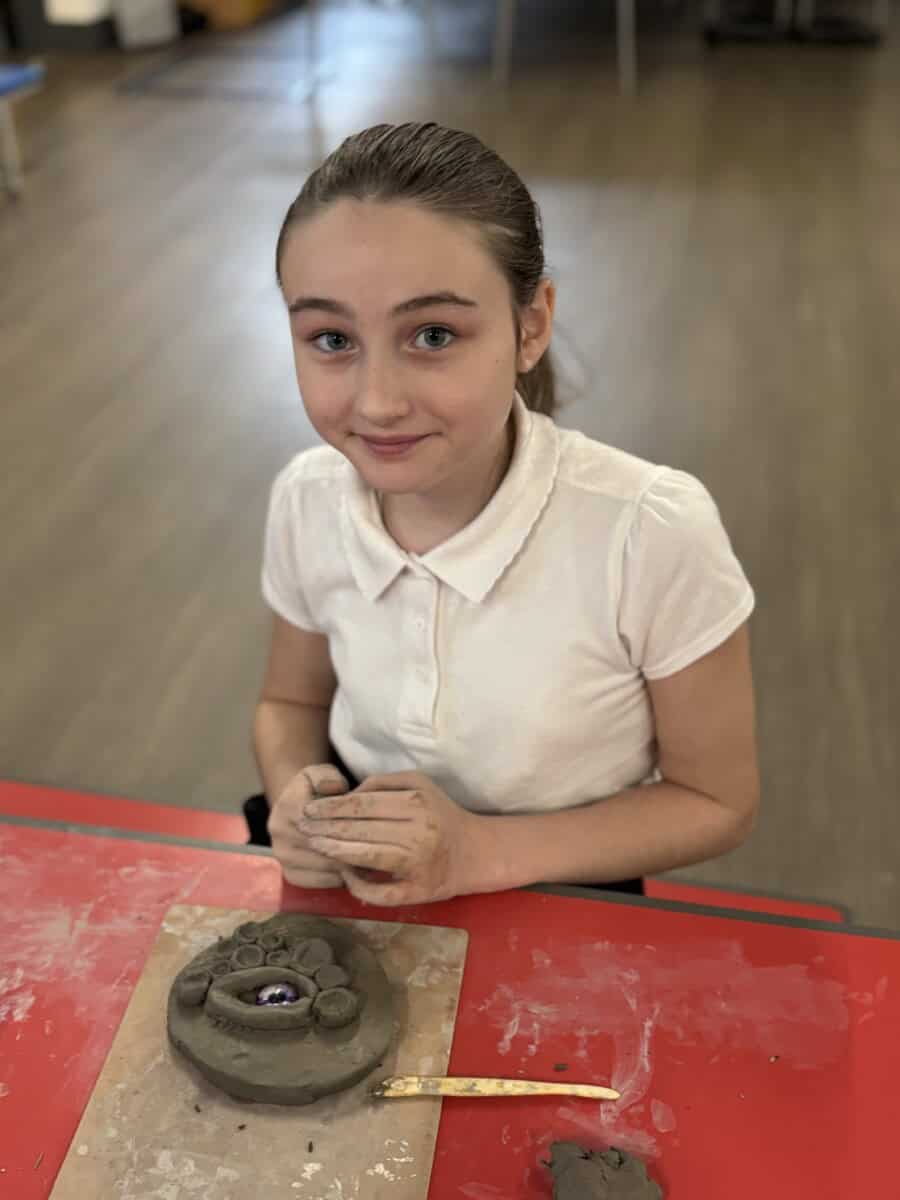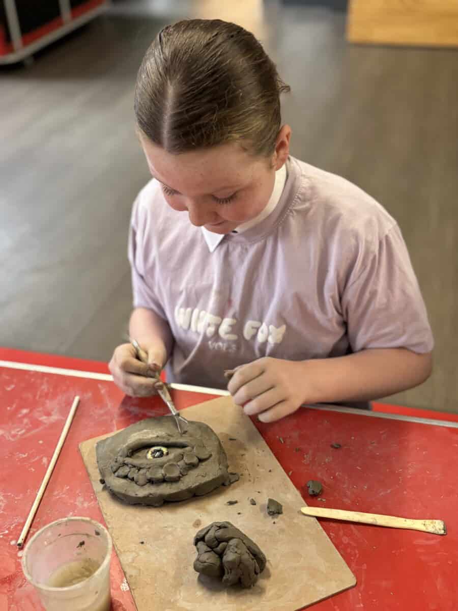 In art this term, Y5 have been looking at eyes. We completed some observational drawing of human and animal eyes and tried different media and techniques to add colour. For our final piece, we used clay to create dragon eyes. Using clay tools, we designed and made some scales and features to add to the eye shape. We got very messy and enjoyed trying new things with the clay.