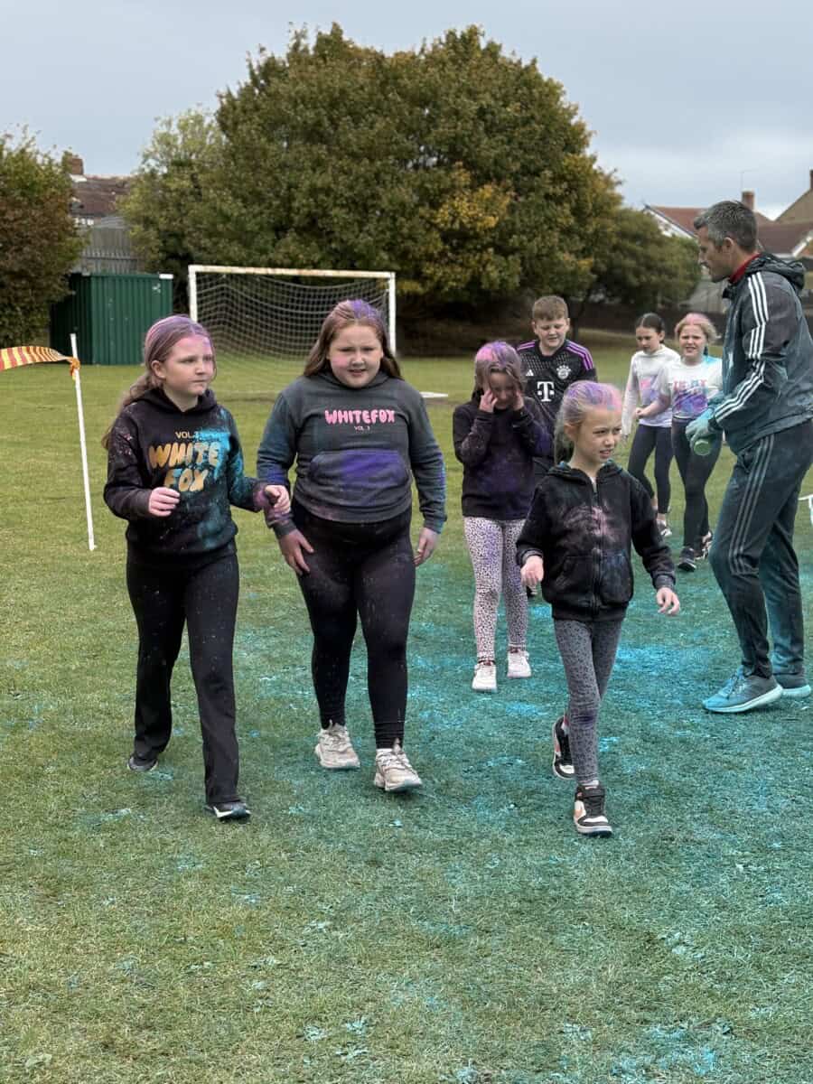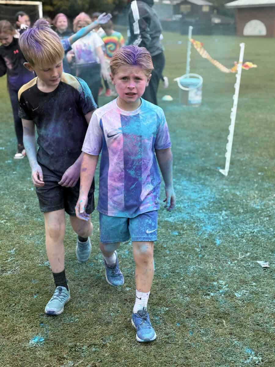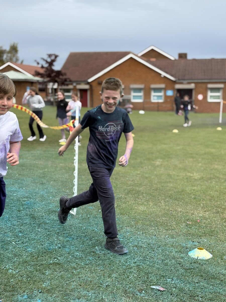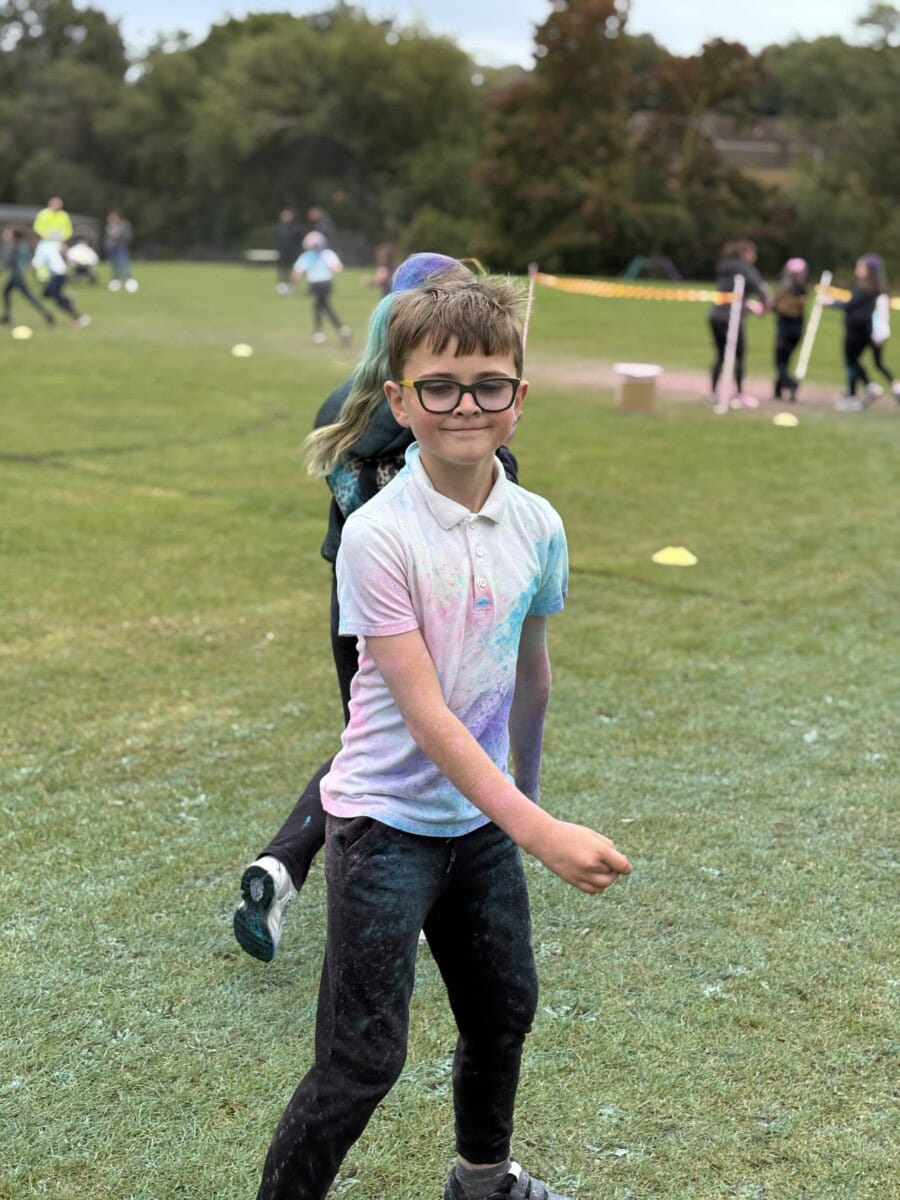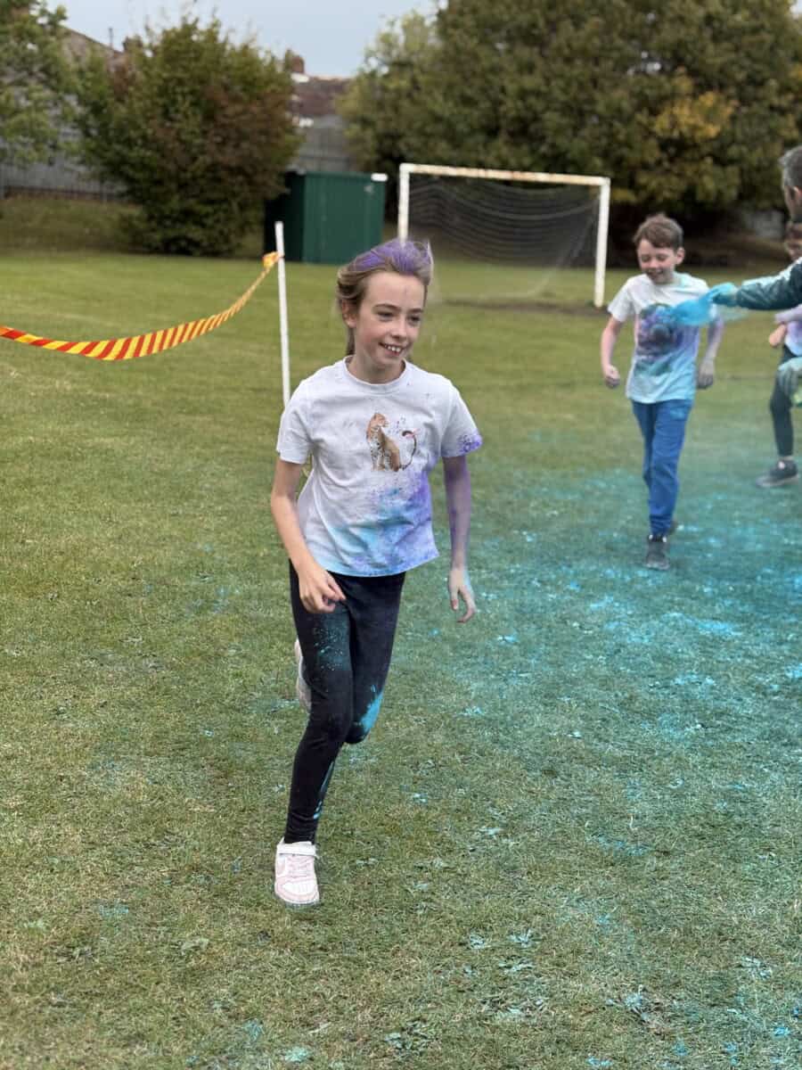 Year 5 Colour Run We have had a bit of a drizzly and very colourful afternoon with the Sports Partnership doing our sponsored colour run this afternoon.