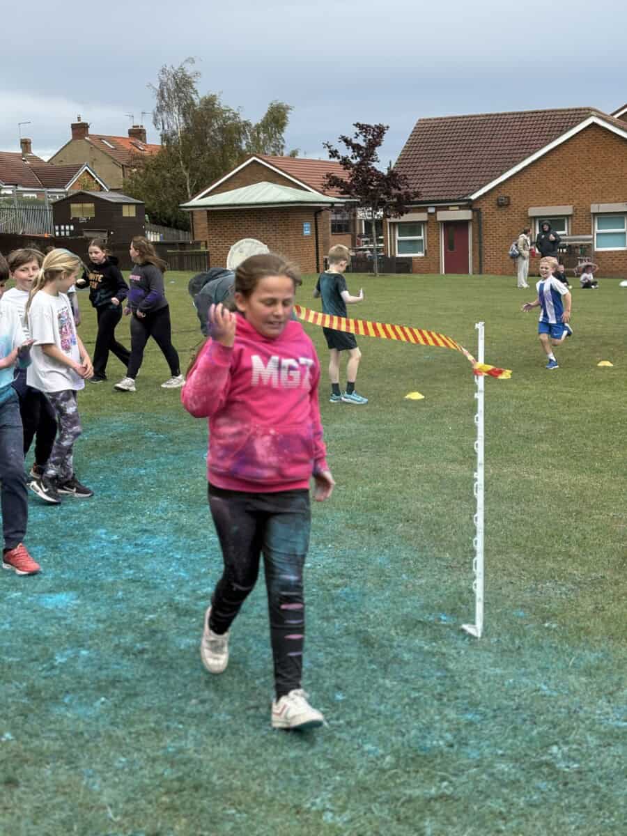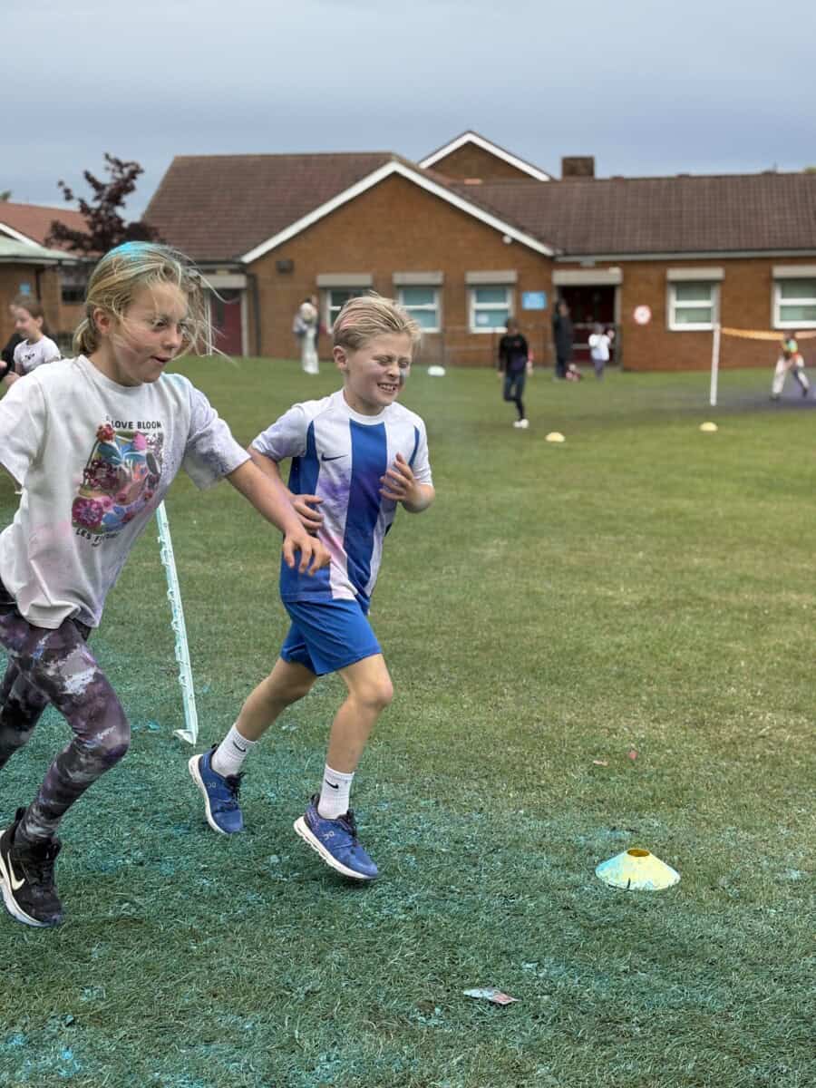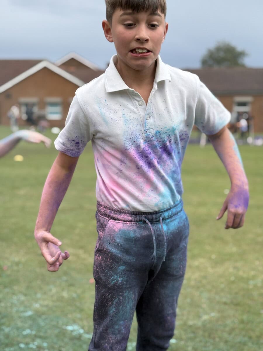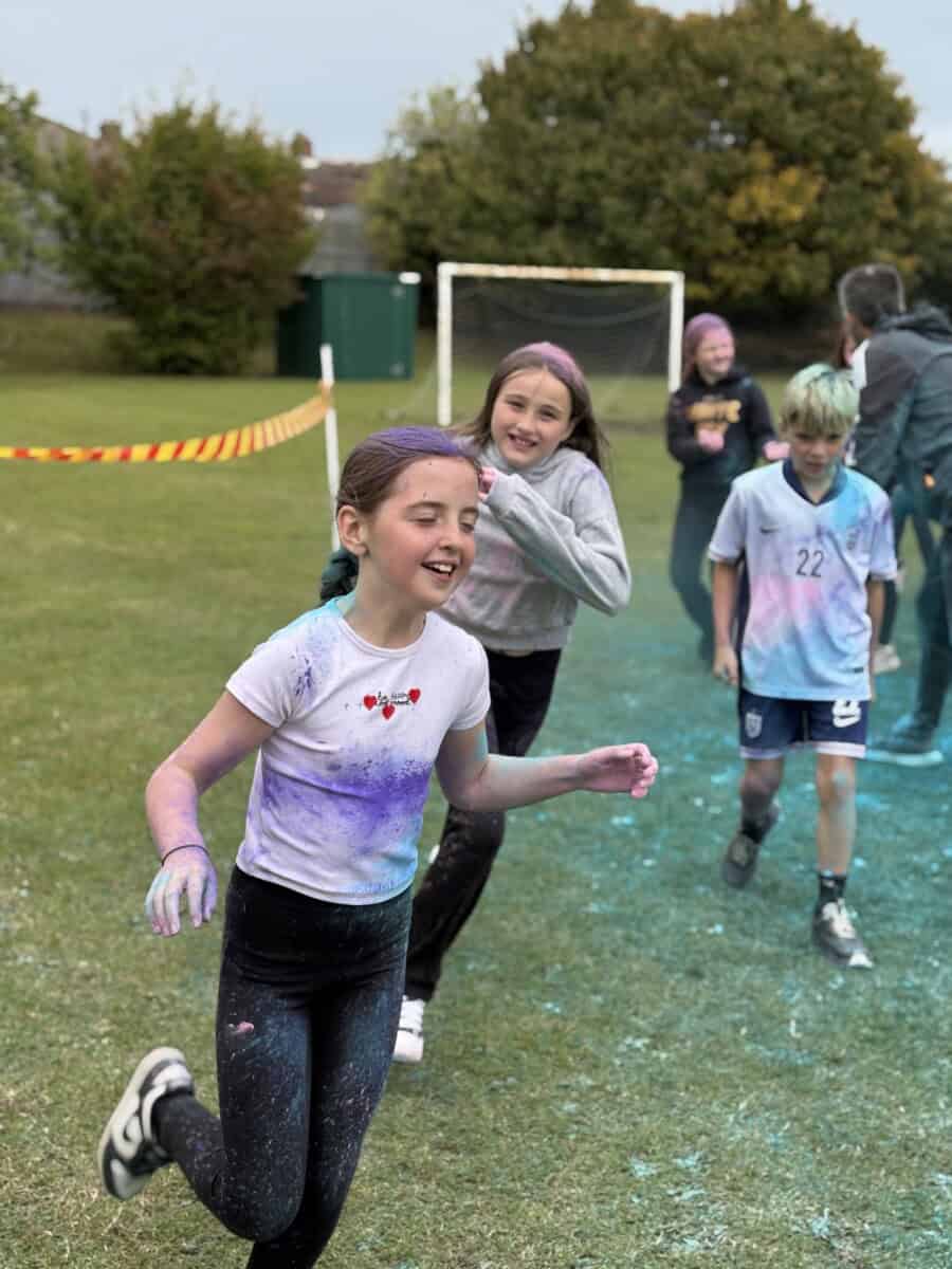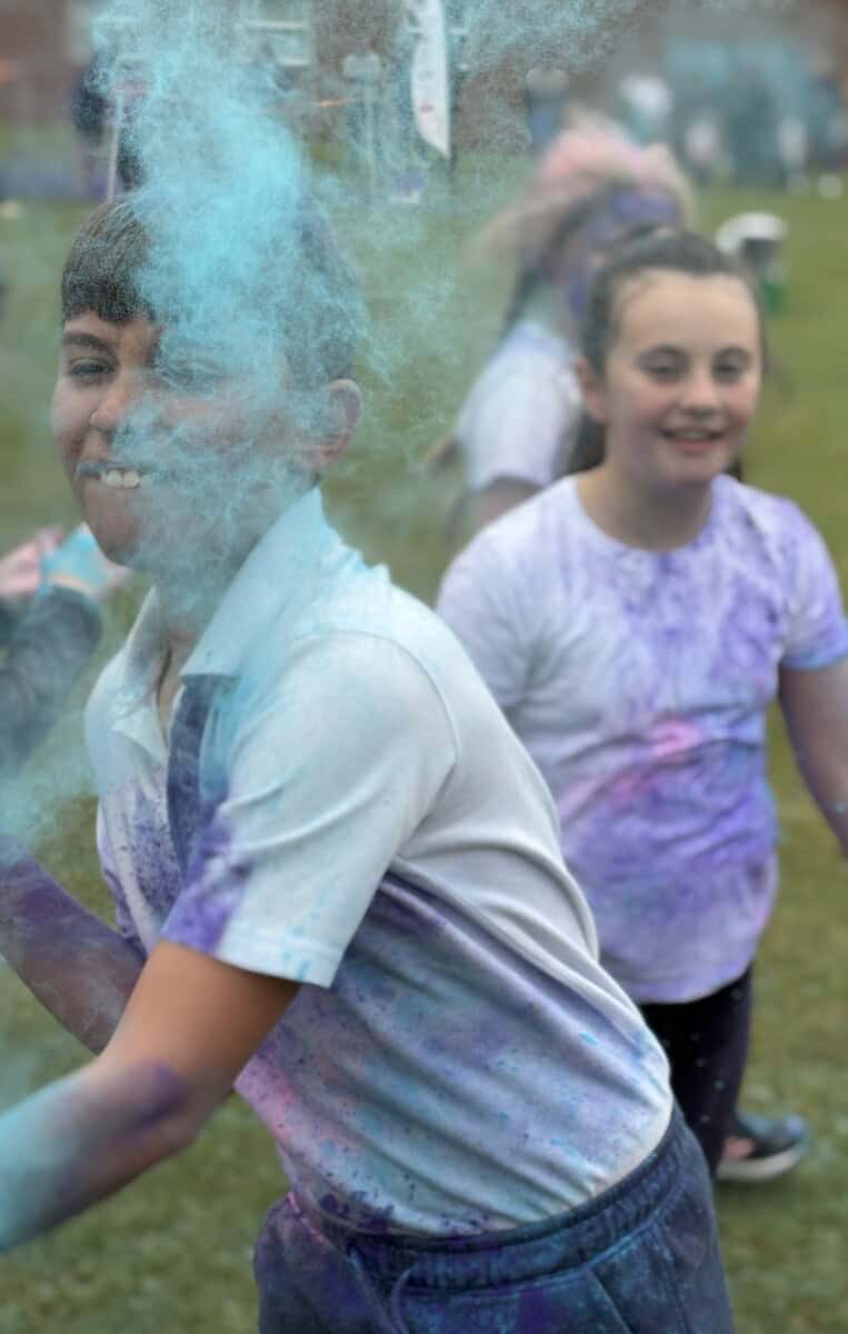 Year 5 Colour Run We have had a bit of a drizzly and very colourful afternoon with the Sports Partnership doing our sponsored colour run this afternoon.